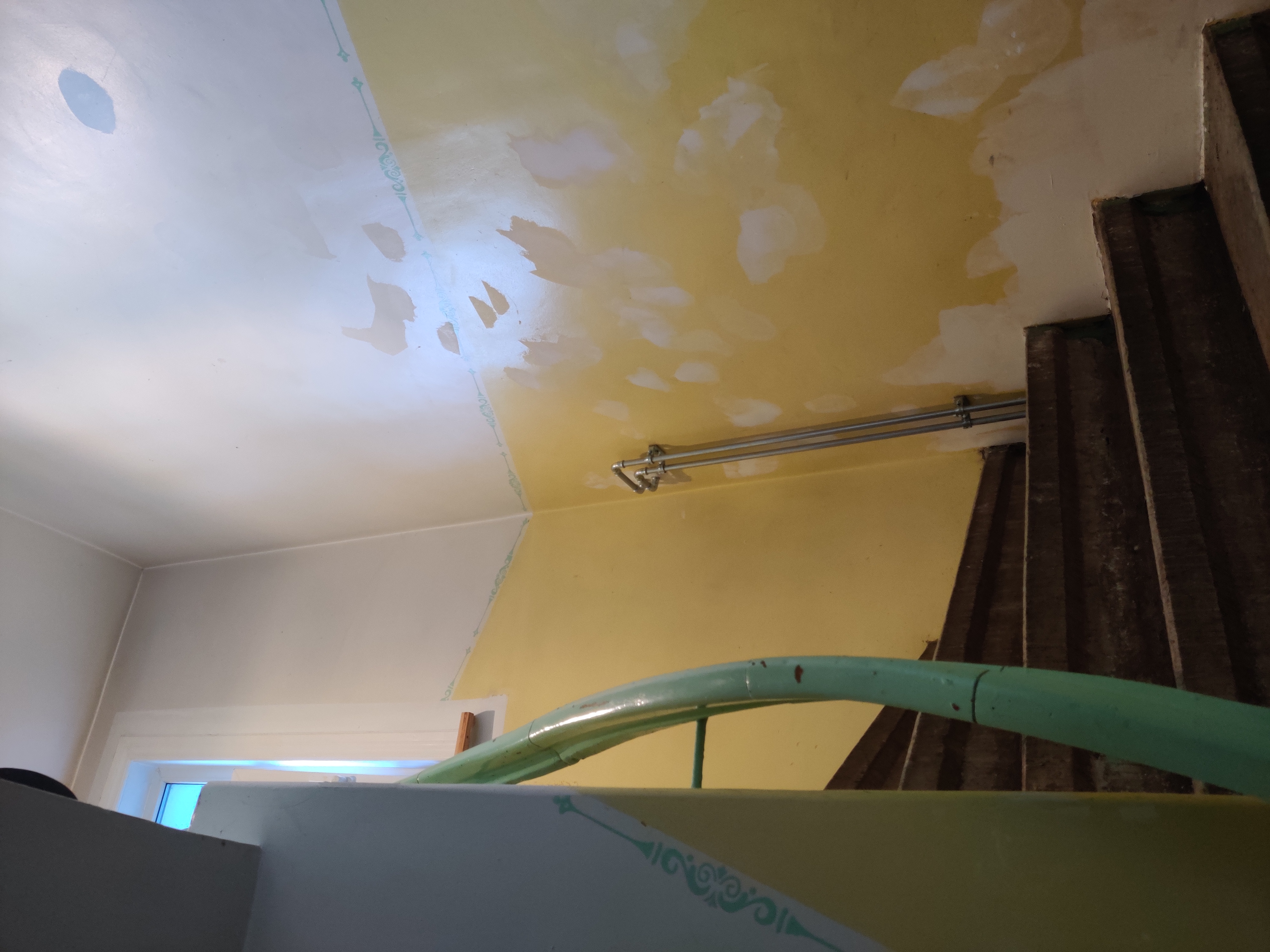 Ei ole vaja üle pahteldada kõiki pindu, vaid augud ja suuremad konarused likvideerida ning lihvida siledaks. Fotod peaks olukorrast hea aimduse andma. Aluspind ei ole vanale hoonele omaselt 100% ideaalne, seega peegelsiledat tulemust ei eelda, ent kvaliteetset teostust küll.