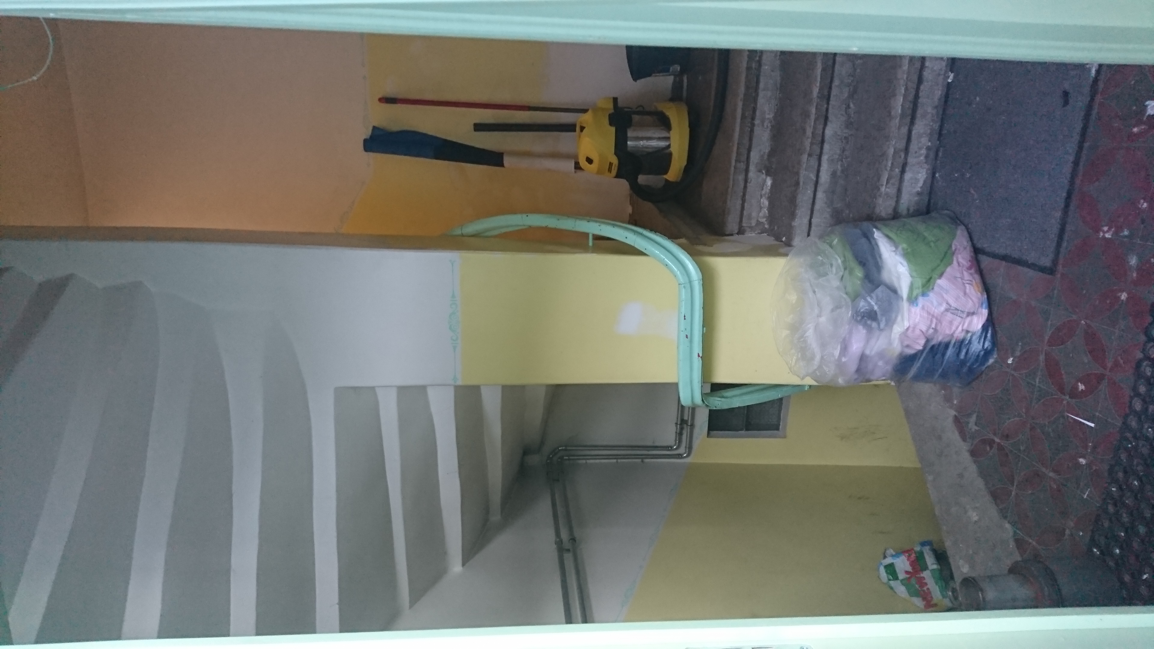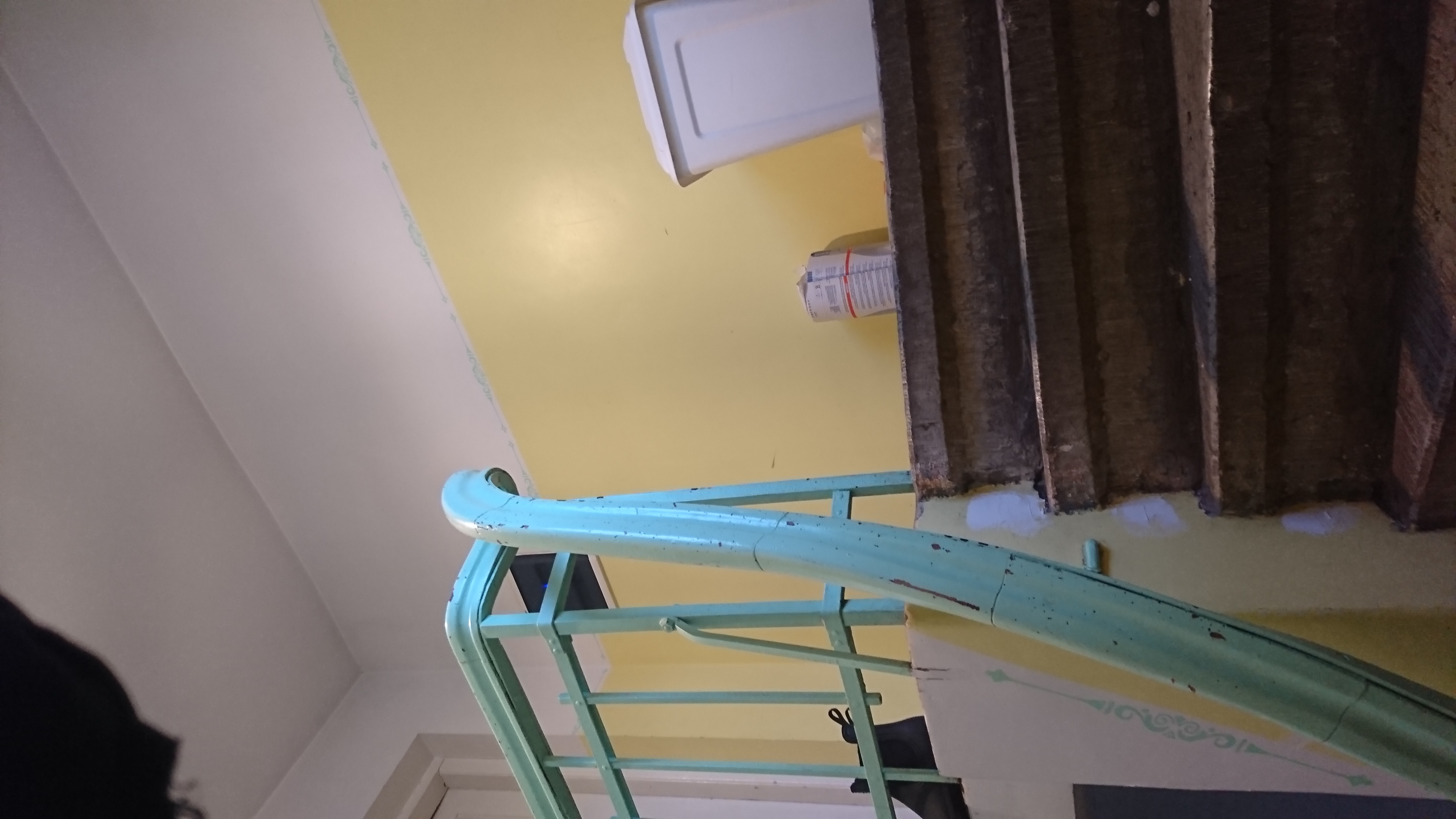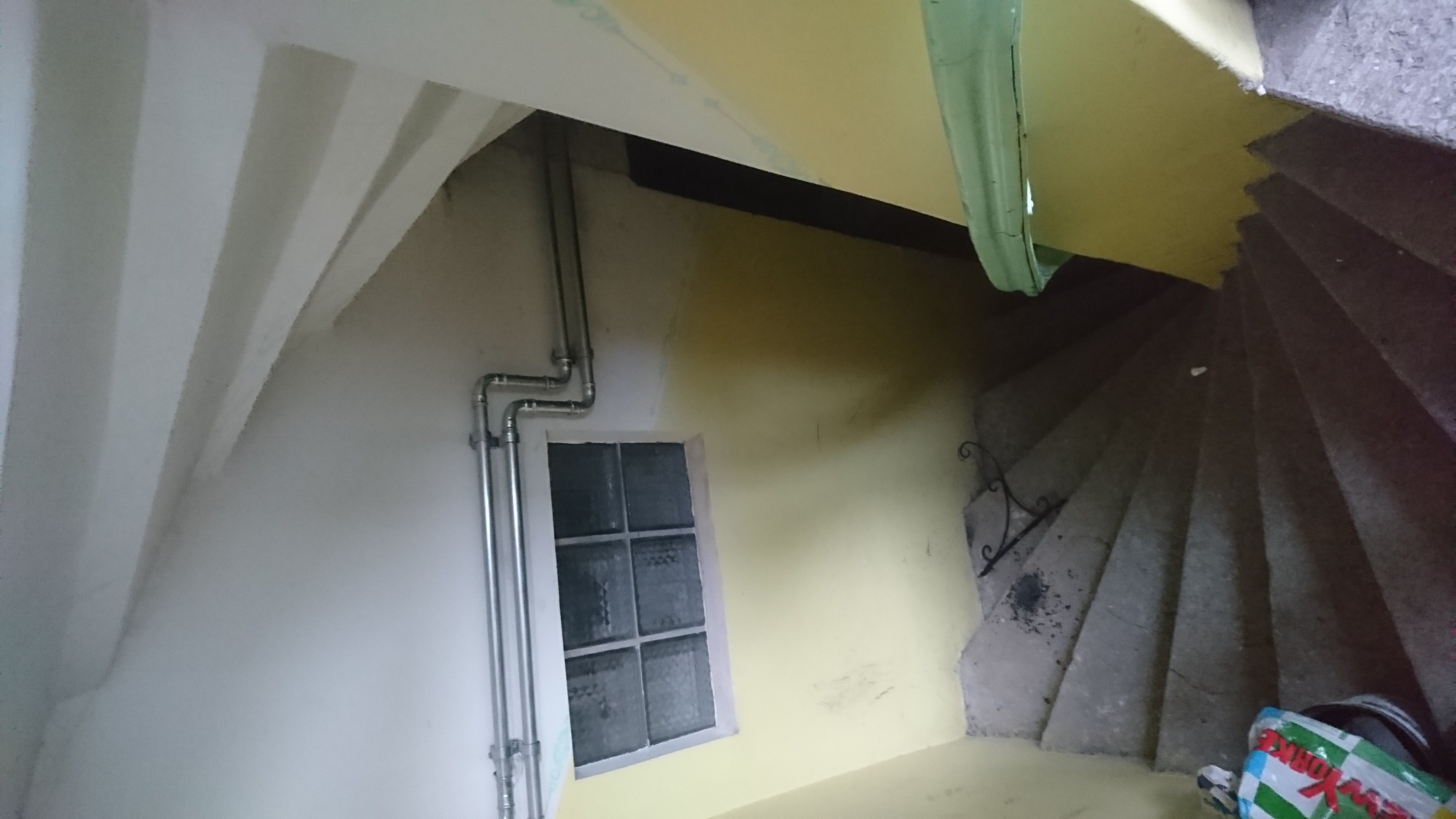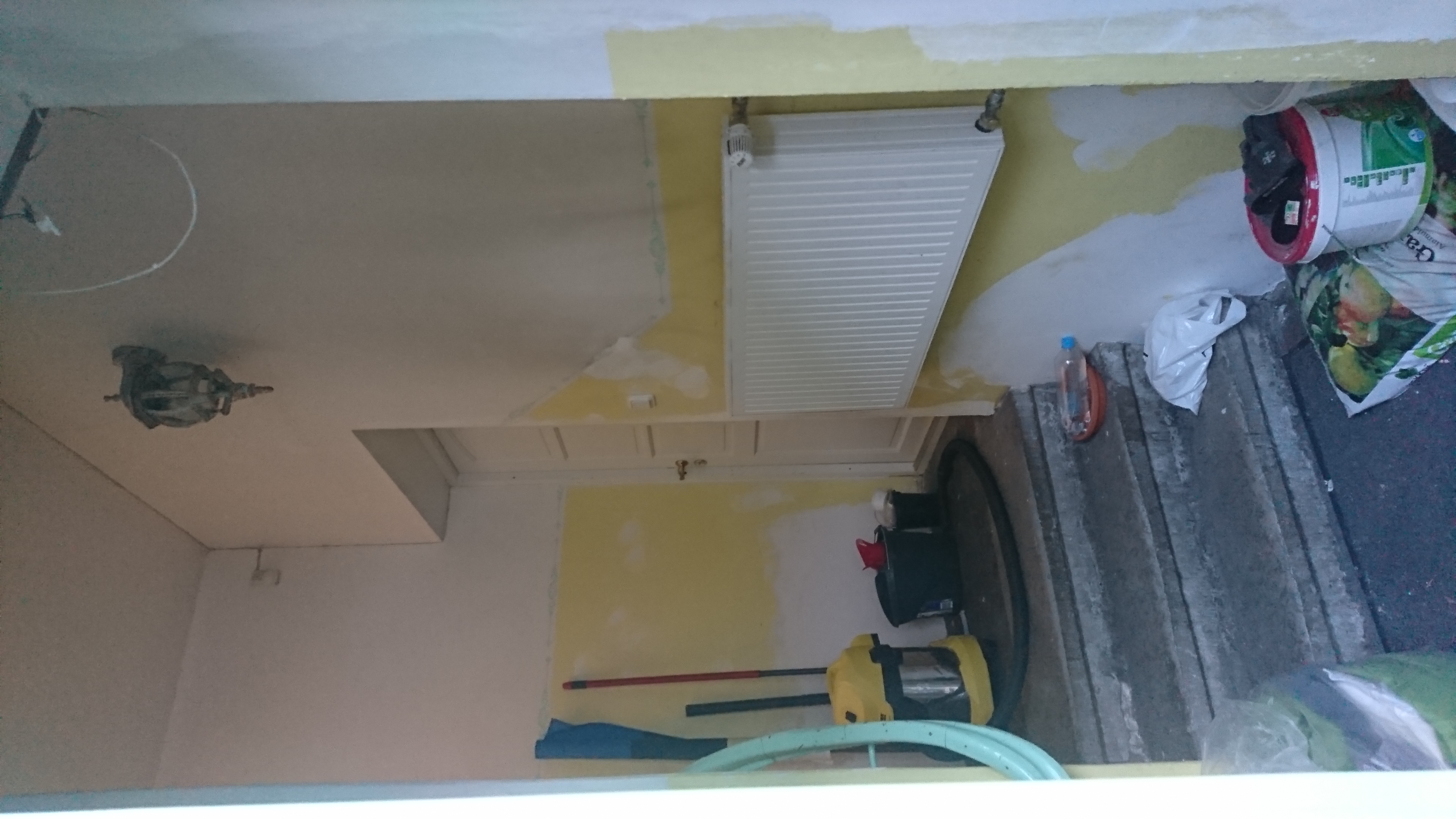 Trepikojas on vaja lõpetada pahteldustööd ning värvida seinad, trepi alune ning lagi. Põhi valge, fotodel oleva kollase asemel tuleks helehall ning ca 150-200mm jalgade kõrguselt tumehall triip. Sama tumehall ca 50mm laiuses ka trepi peal maas. Trepp on paekivist ning peab peale töid jääma vähemalt samasse seisu nagu momendil. Täpsed toonid valib siis kui läheb tööks.