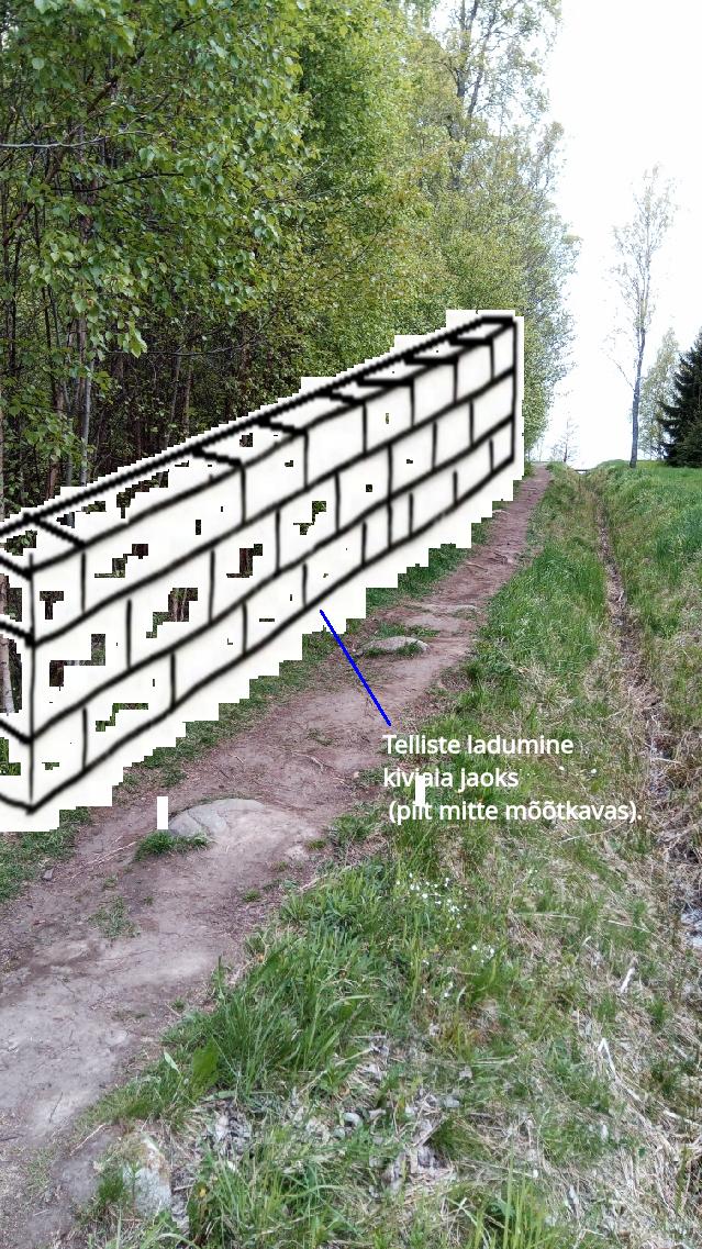 Lammutatud tellised (kui need pole liiga purustatud) tuleb aseta ümbes 80 pikkuse kiviaia jaoks (üks rida korraga, nii palju kui telliseid on; kiviaia tellised tuleb lihtsalt kuhjata ja mitte mördiga kinnitada). Kiviaia koht asub otse hoone kõrval. Vaata pilt.