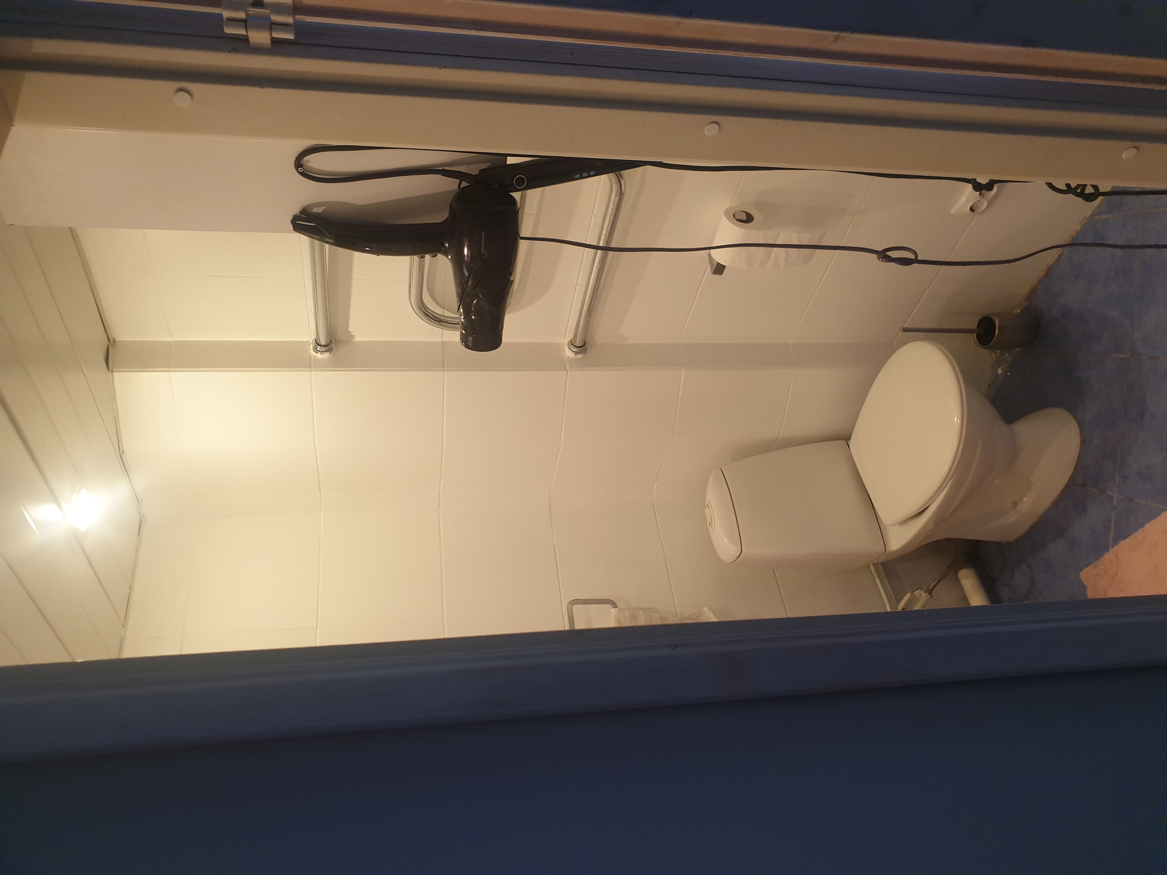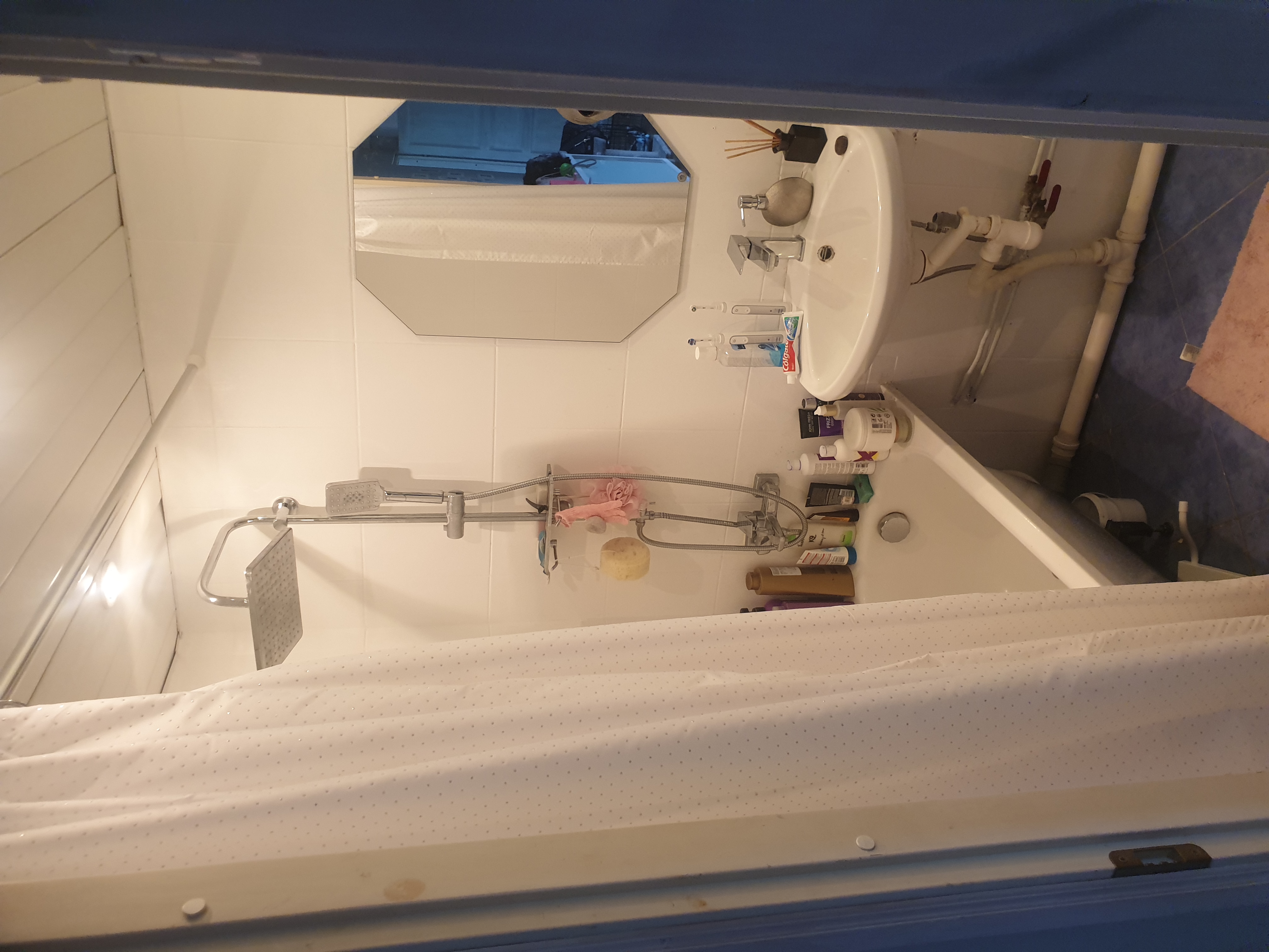 Vannitoas on remont tehtud ca 10-15 aastat tagasi. Vannitoa kaks seina on betoonist ja kaks kipsist. Seinad ja põrand on plaaditud ning lagi on allapoole toodud ripplae näol.