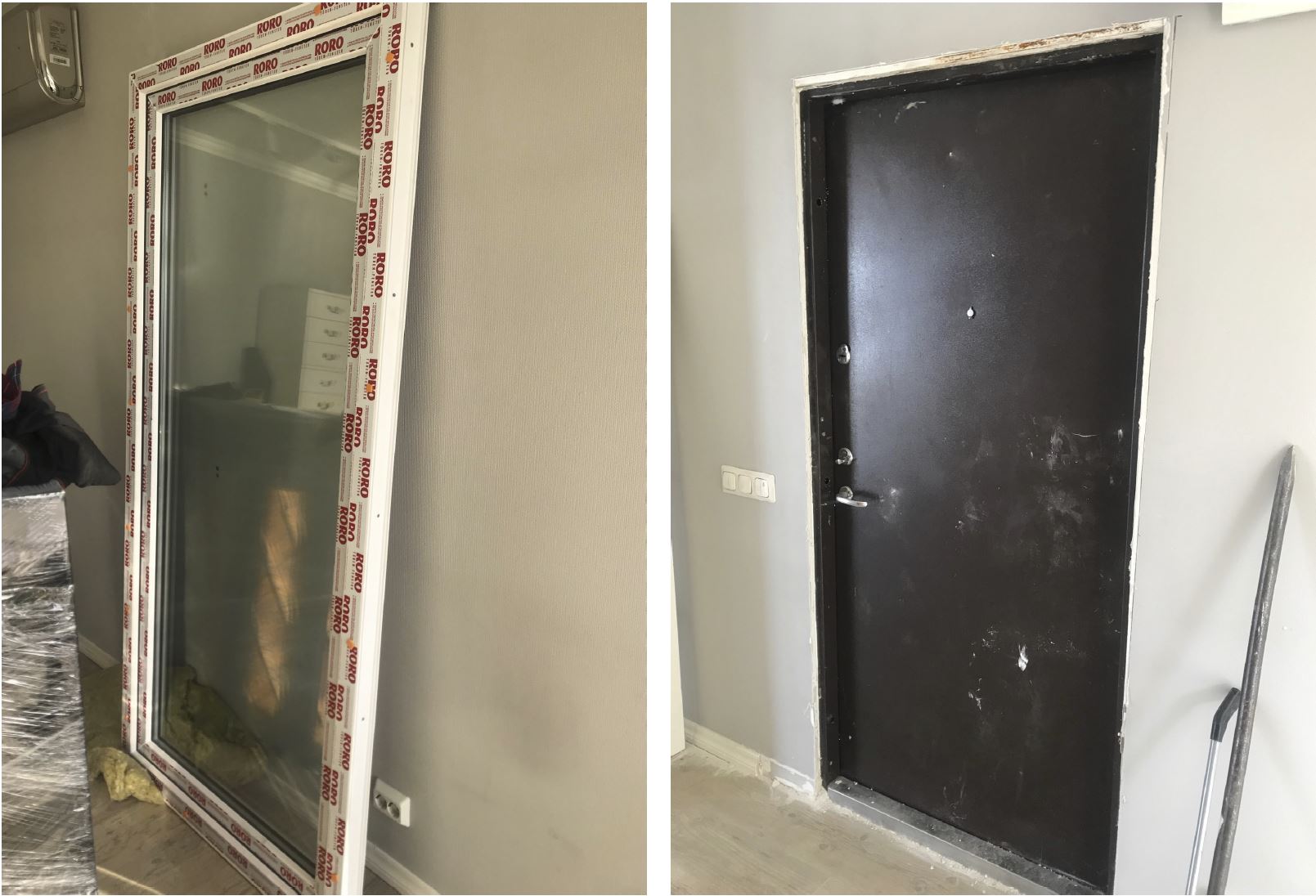 Töö 1 - Olemasoleva metallukse asemele akna paigaldus (PVC aken olemas 1000x2100mm). vana ukse utiliseerimine. Uus aken paigaldada nõuetekohaselt, loodida, paigaldus montaaživahuga, teipida tuuletõkketeibiga, vajadusel teha seespoolt paledele uus viimistlus.