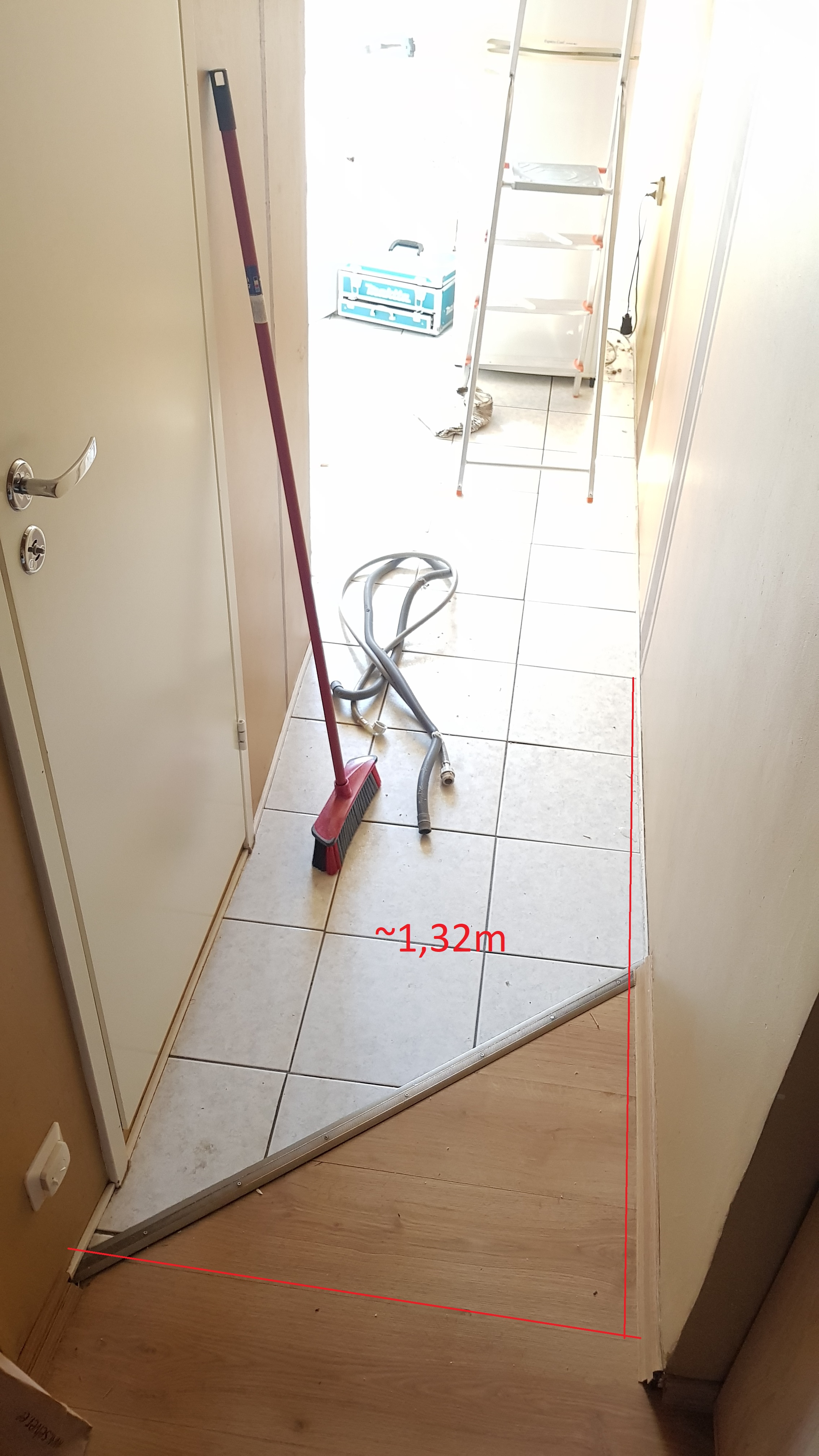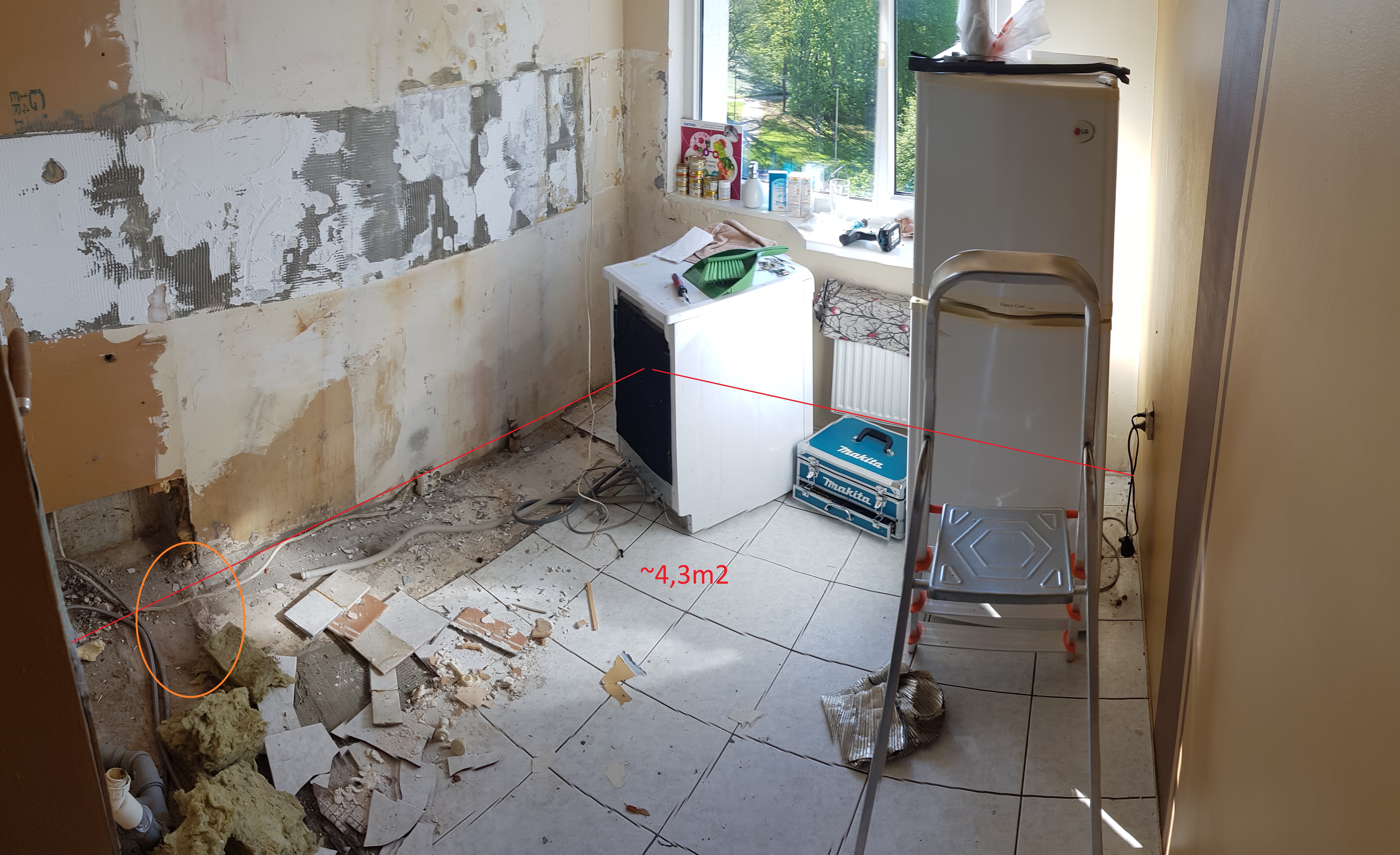 Plaadid ja vajaliku osa parketti võtame alt eest ise ära. Pildil oranžiga mingi eriti suur kühm, ma ei tea kas see tuleb eest ära peksta vmt