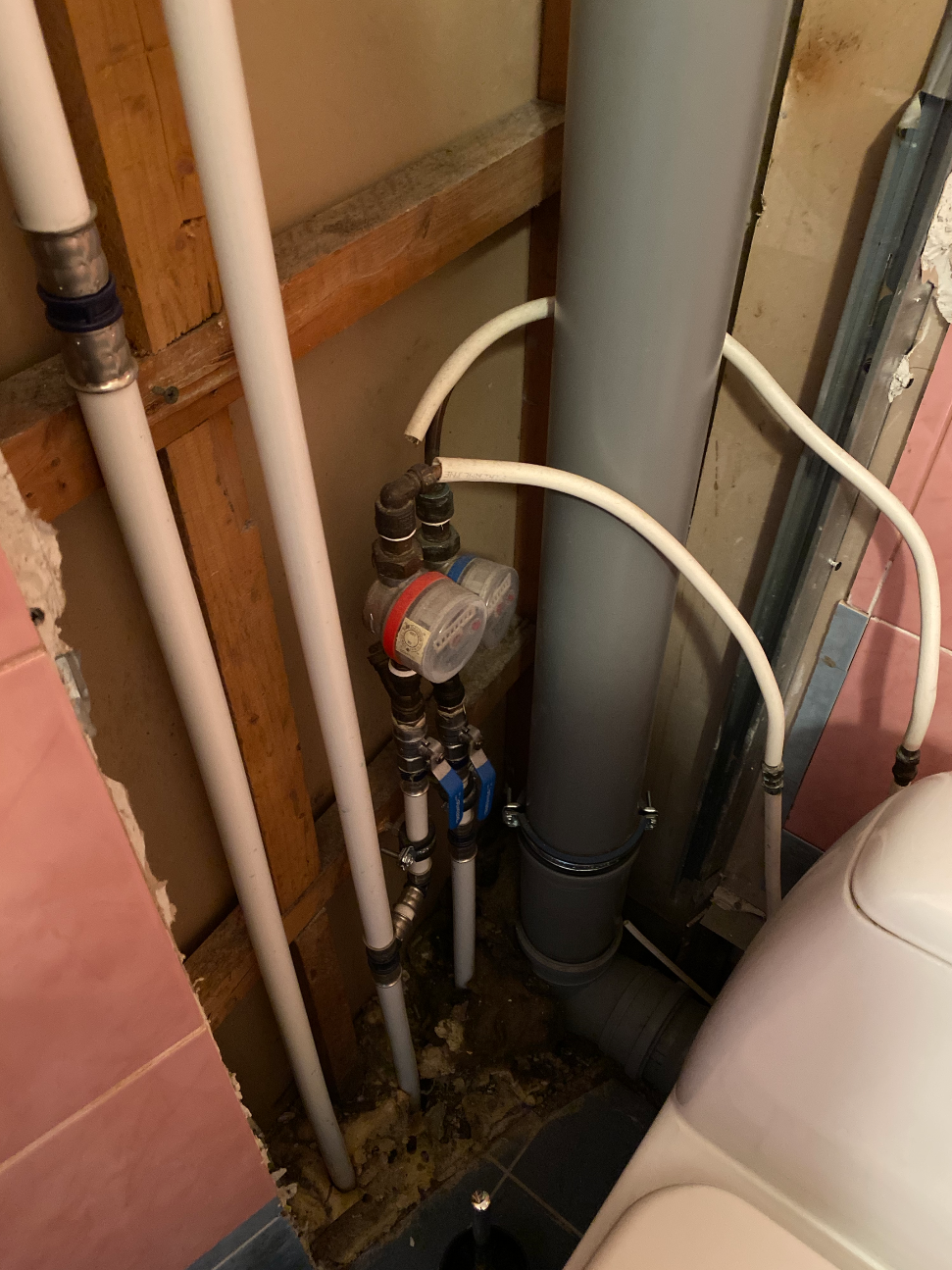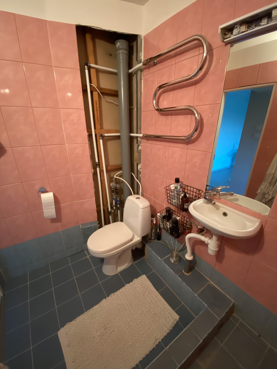 - uue torustiku/äravoolu vedamine (pesumasina torud uude seina, paigutusega valamu alla, valamu torutööd, monoliitne pott asendub seinapealsega )