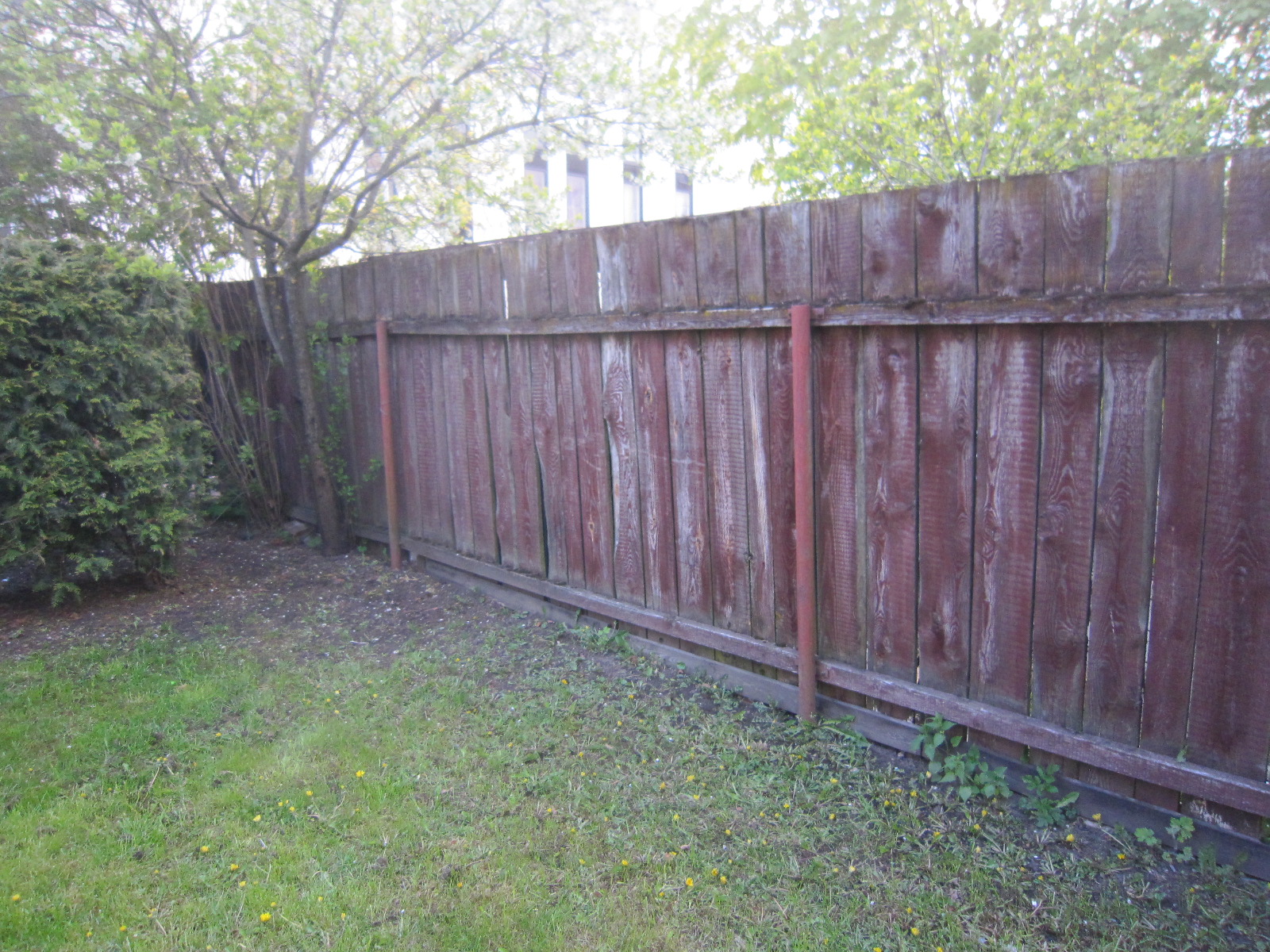 Trapets seinaplekist piirdeaed 32 m, kõrgus 2,1 m. 12 metall posti paigaldus (betoneerimine, nivelleerimine), põikprusside ja pleki paigaldus kruvidega. Vana puitaia utiliseerimine. Puhast tööaega umbes 2 mehele 3 päevaks