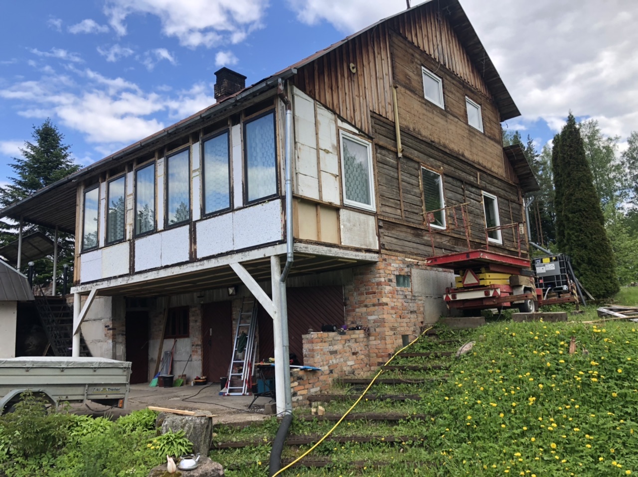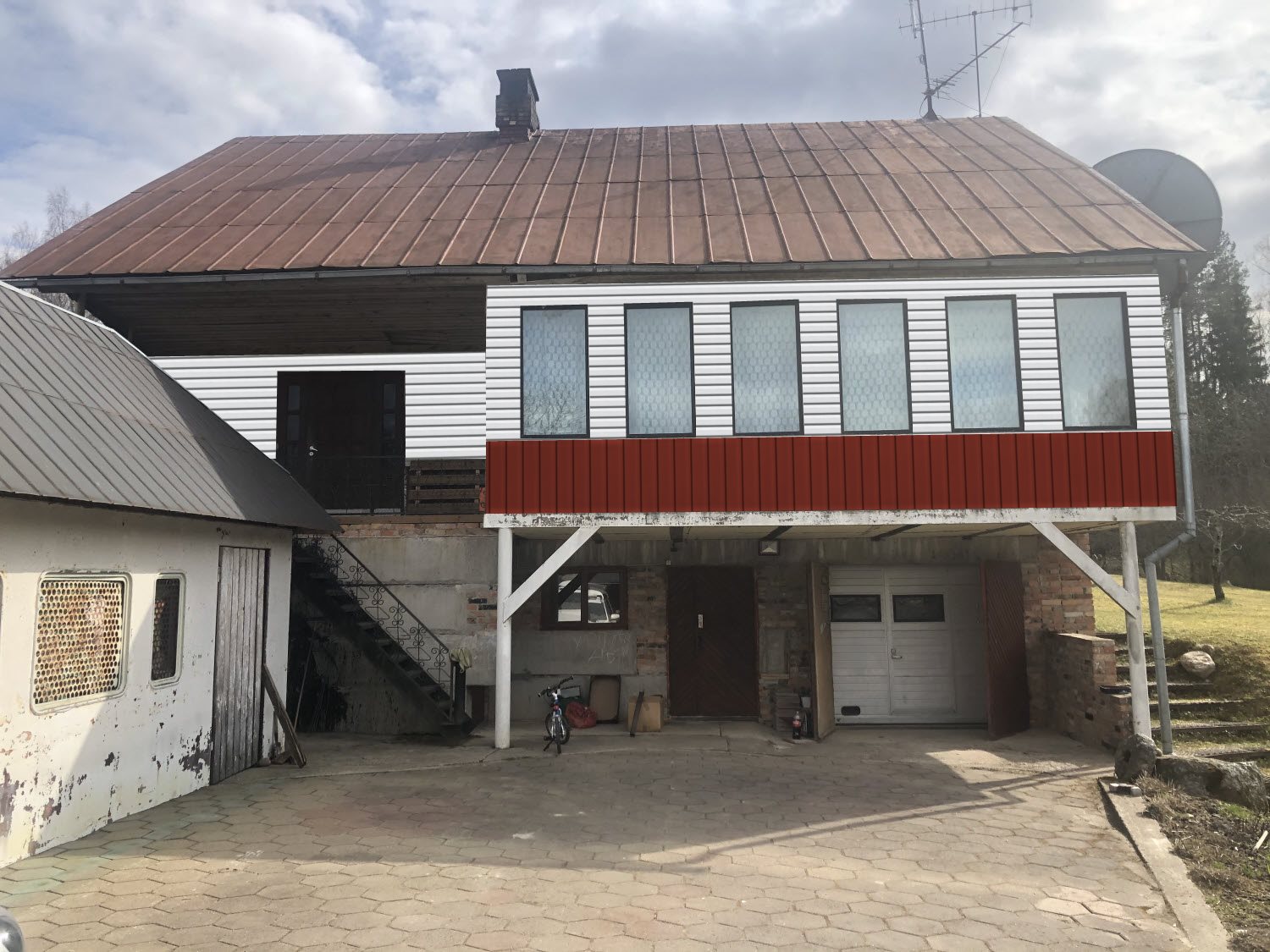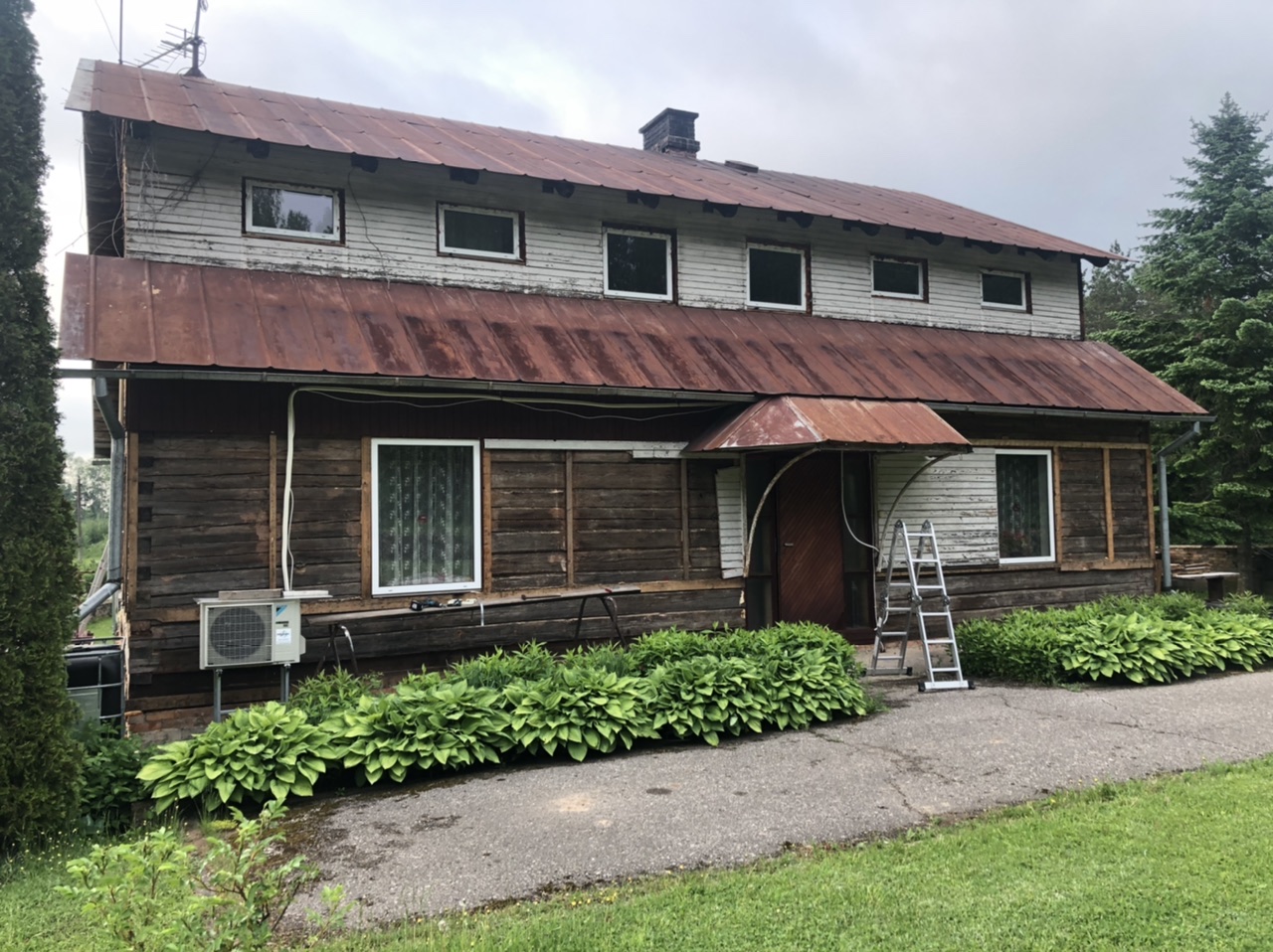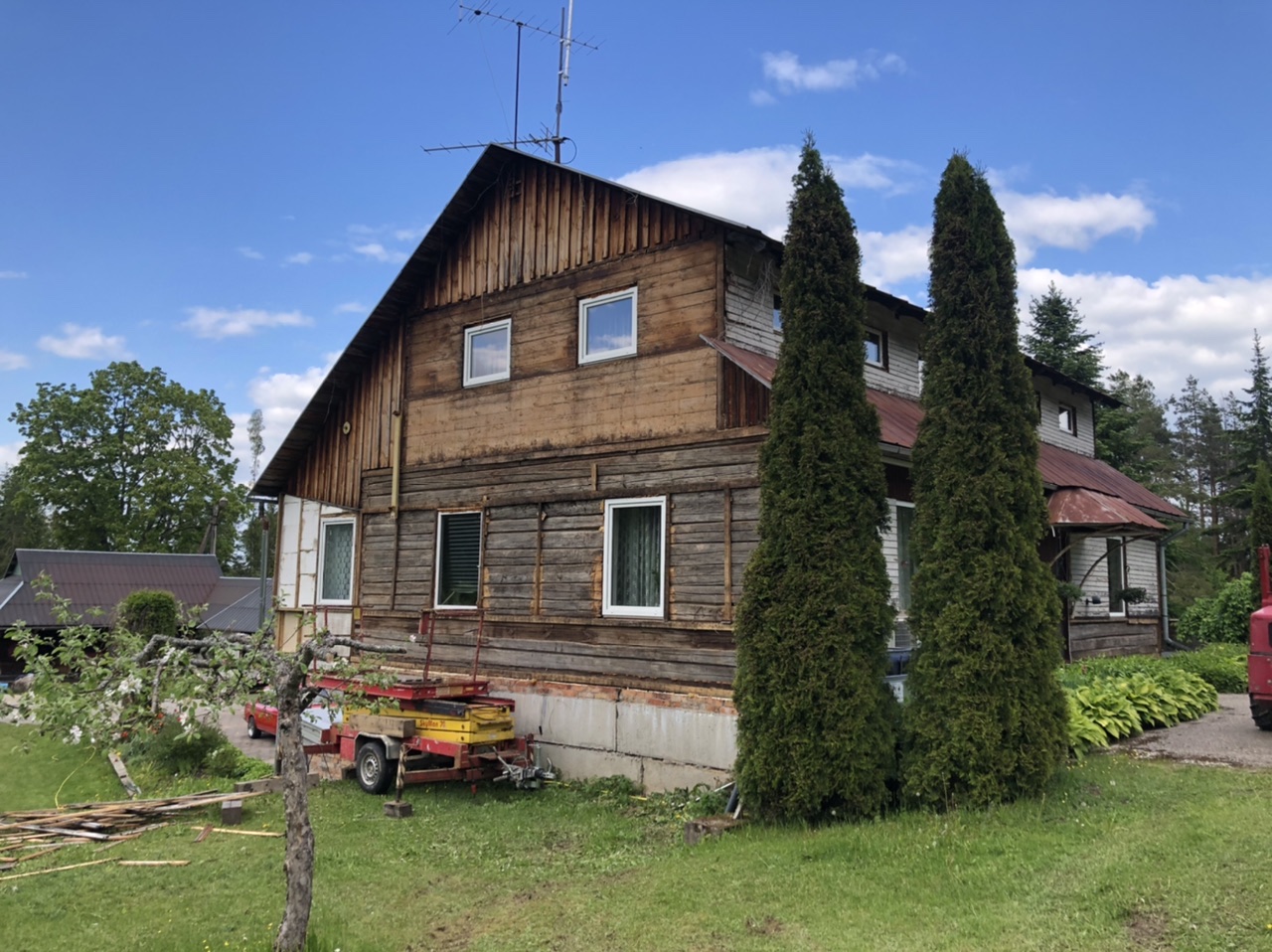 Maja teine korrus on juurdeehitatud karkass.