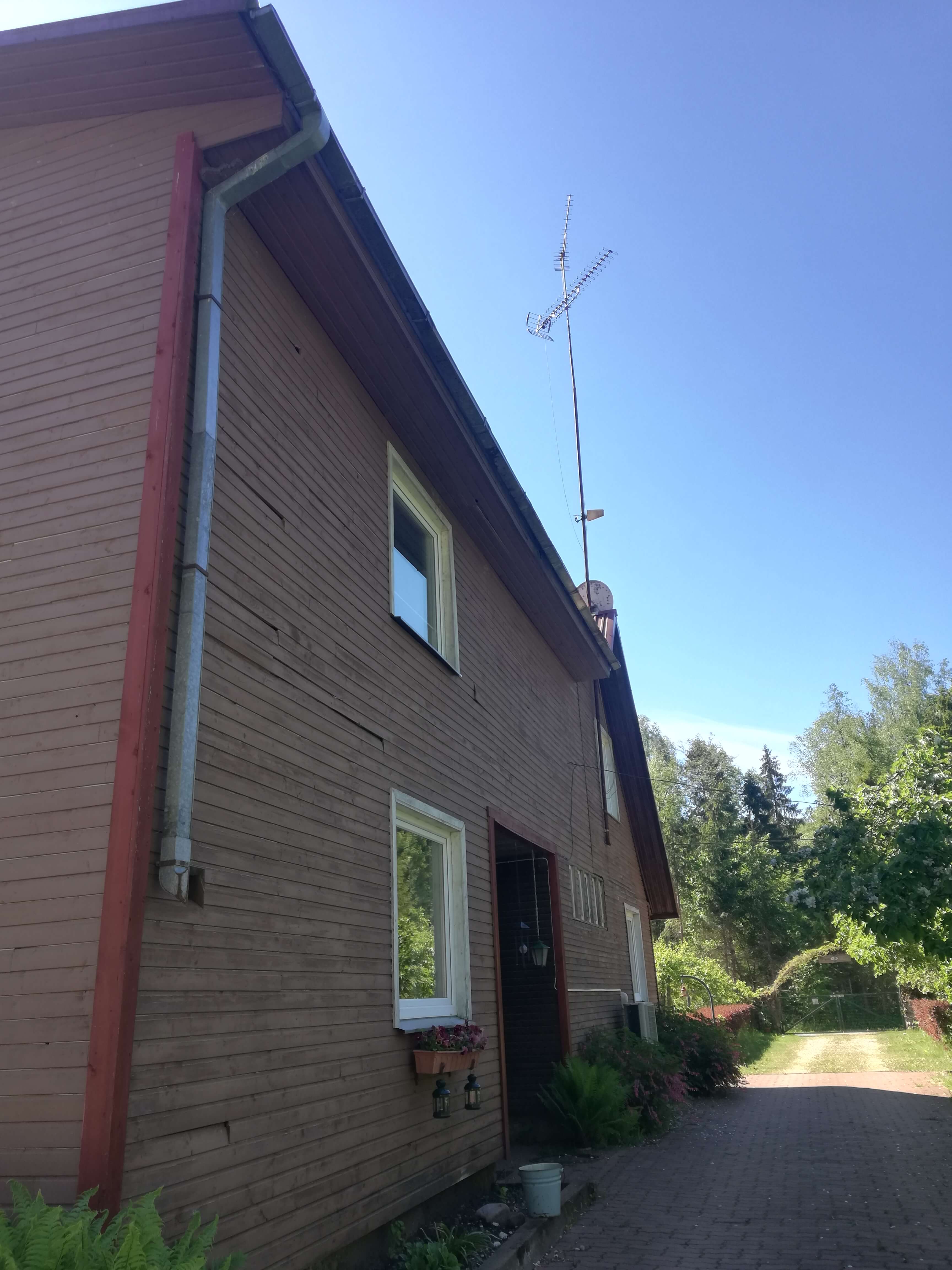 Kahekorruselisel majaosal vihmaveerennide ja -torude paigaldus. Räästa kõrgus ~5,5 m. Vihmaveesüsteem ümar, Ruukki või samaväärne, punane (RR29) - renni pikkus 2x10,4 m, toru pikkus 2x5,5 m. Vihmaveesüsteem ja tarvikud pakkuja hankida.
