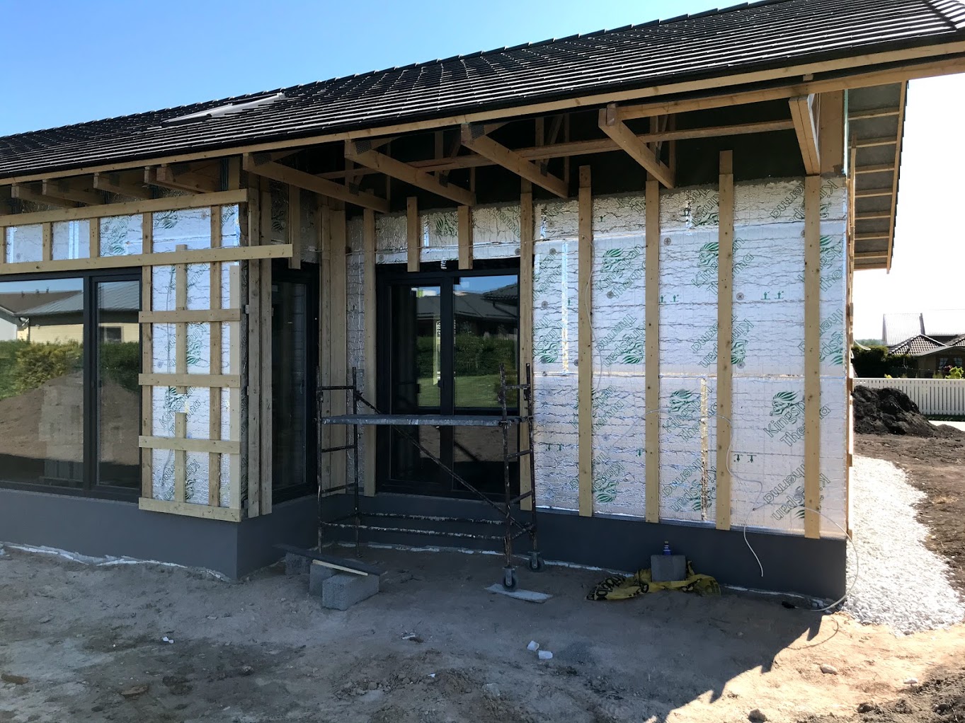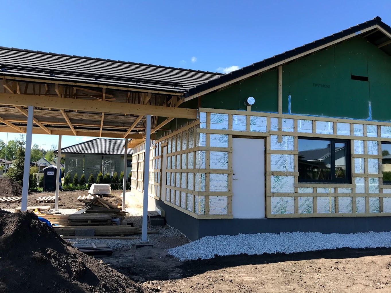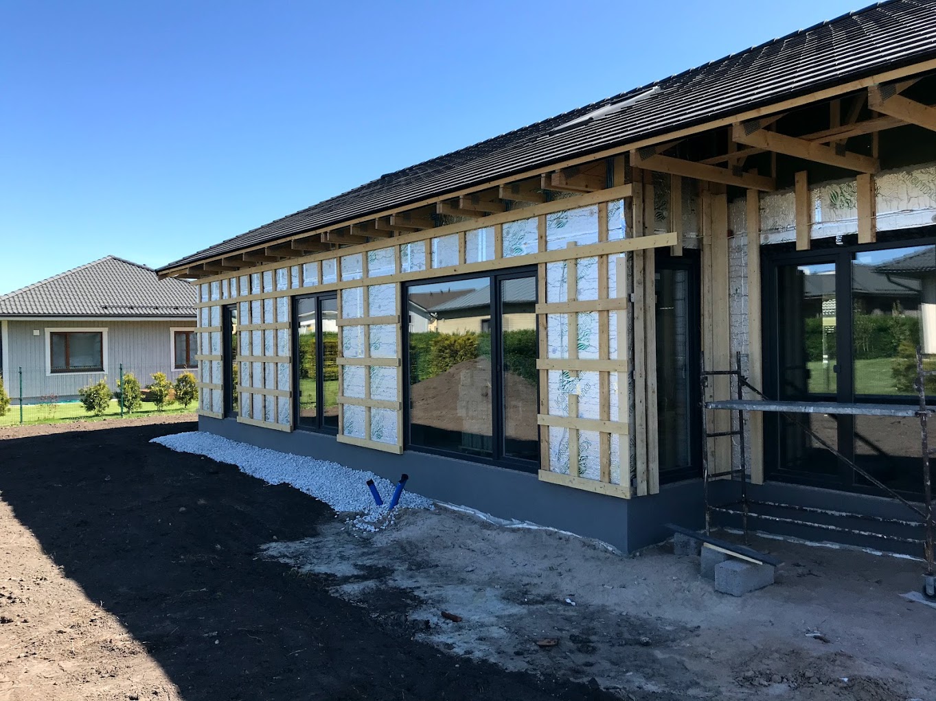 Töö alustamise hetkeks on majale paigaldatud põhikorruse osas laudis (h=2,7m), küsin hinnapakkumist tööle, mis hõlmaks sisuliselt maja väljast valmis ehitamist (osad tööd küsitud lisatööna). Joonistel kujutatud puitvõresid varjualuse postide vahel ja terrassil ei pea pakkuma.