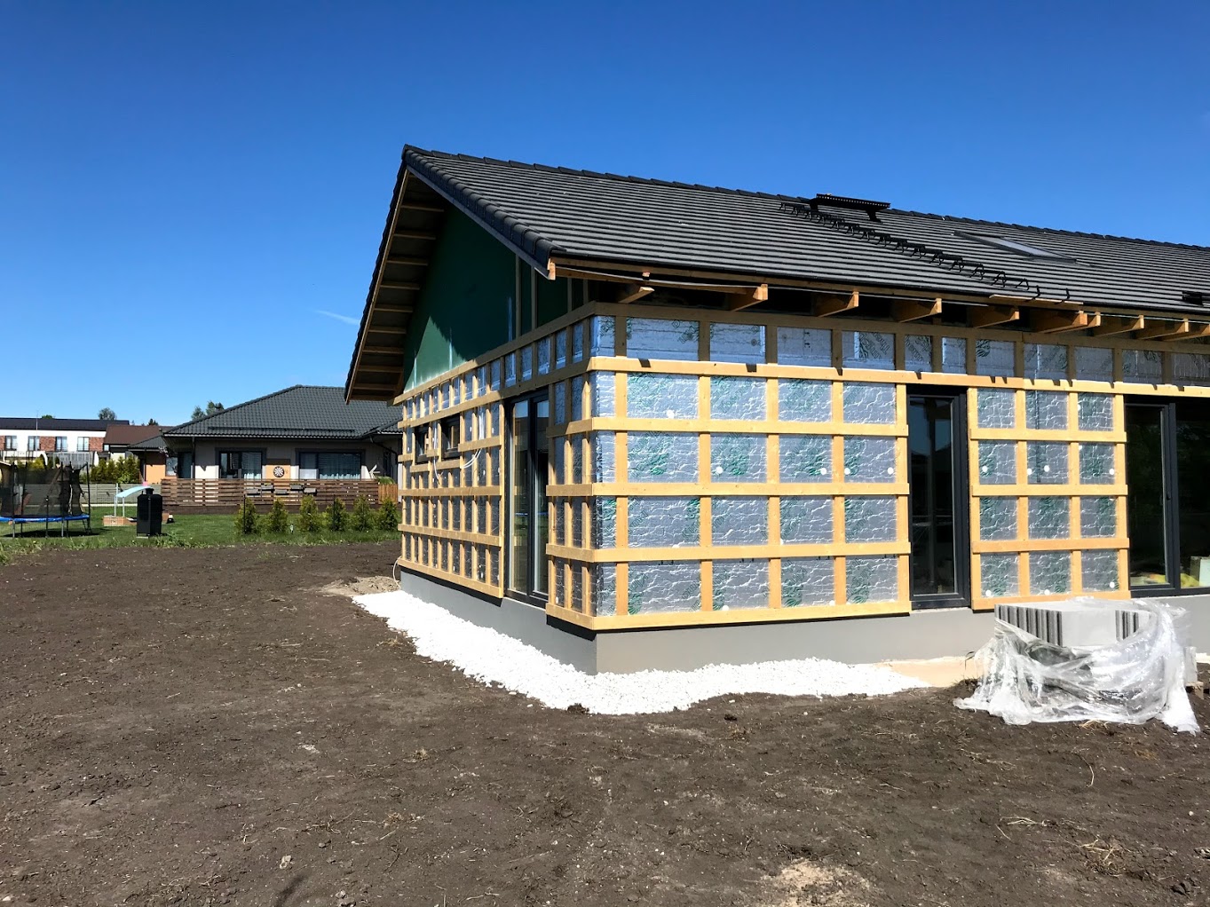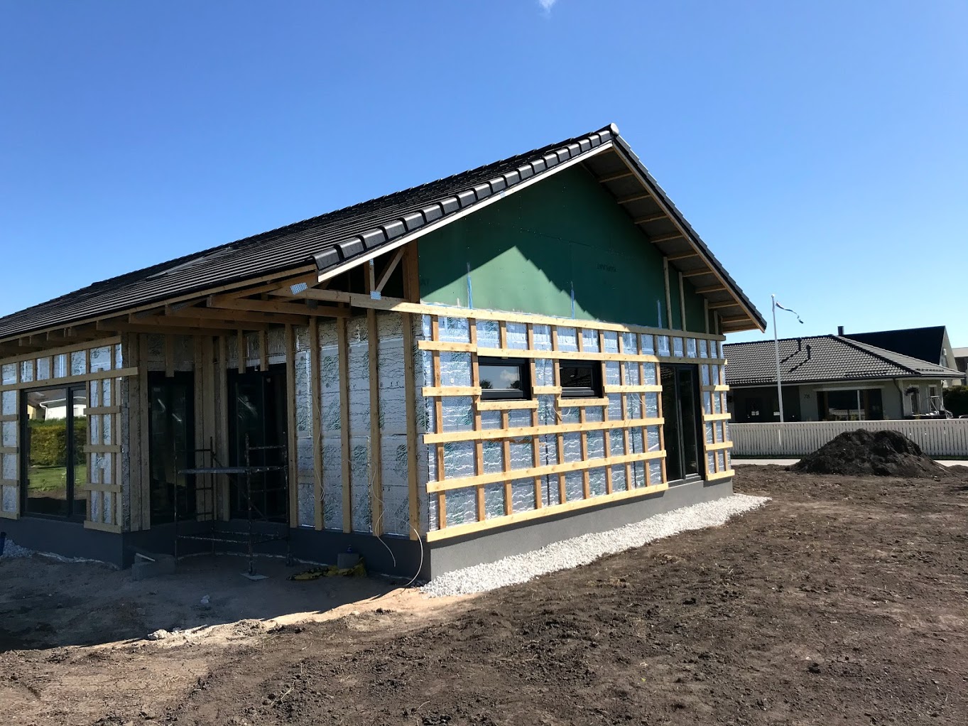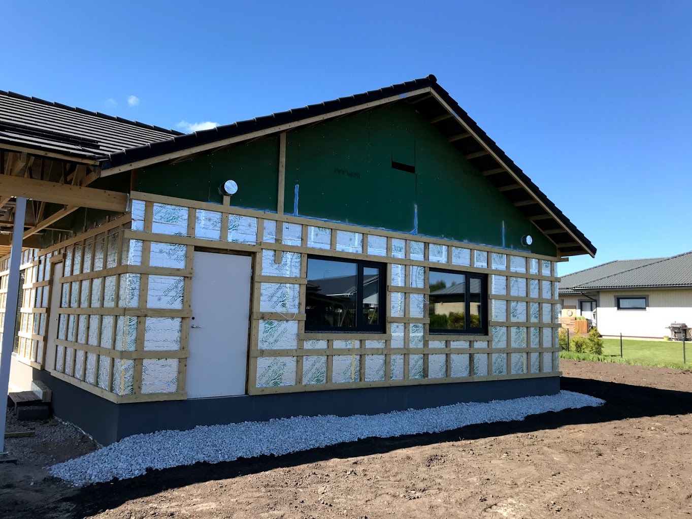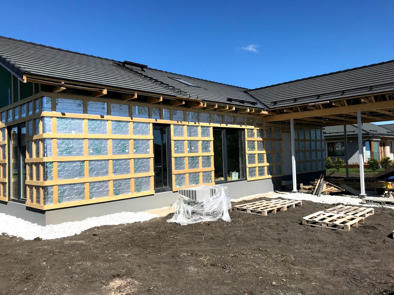 Töö alustamise hetkeks on majale paigaldatud põhikorruse osas laudis (h=2,7m), küsin hinnapakkumist tööle, mis hõlmaks sisuliselt maja väljast valmis ehitamist (osad tööd küsitud lisatööna). Joonistel kujutatud puitvõresid varjualuse postide vahel ja terrassil ei pea pakkuma.