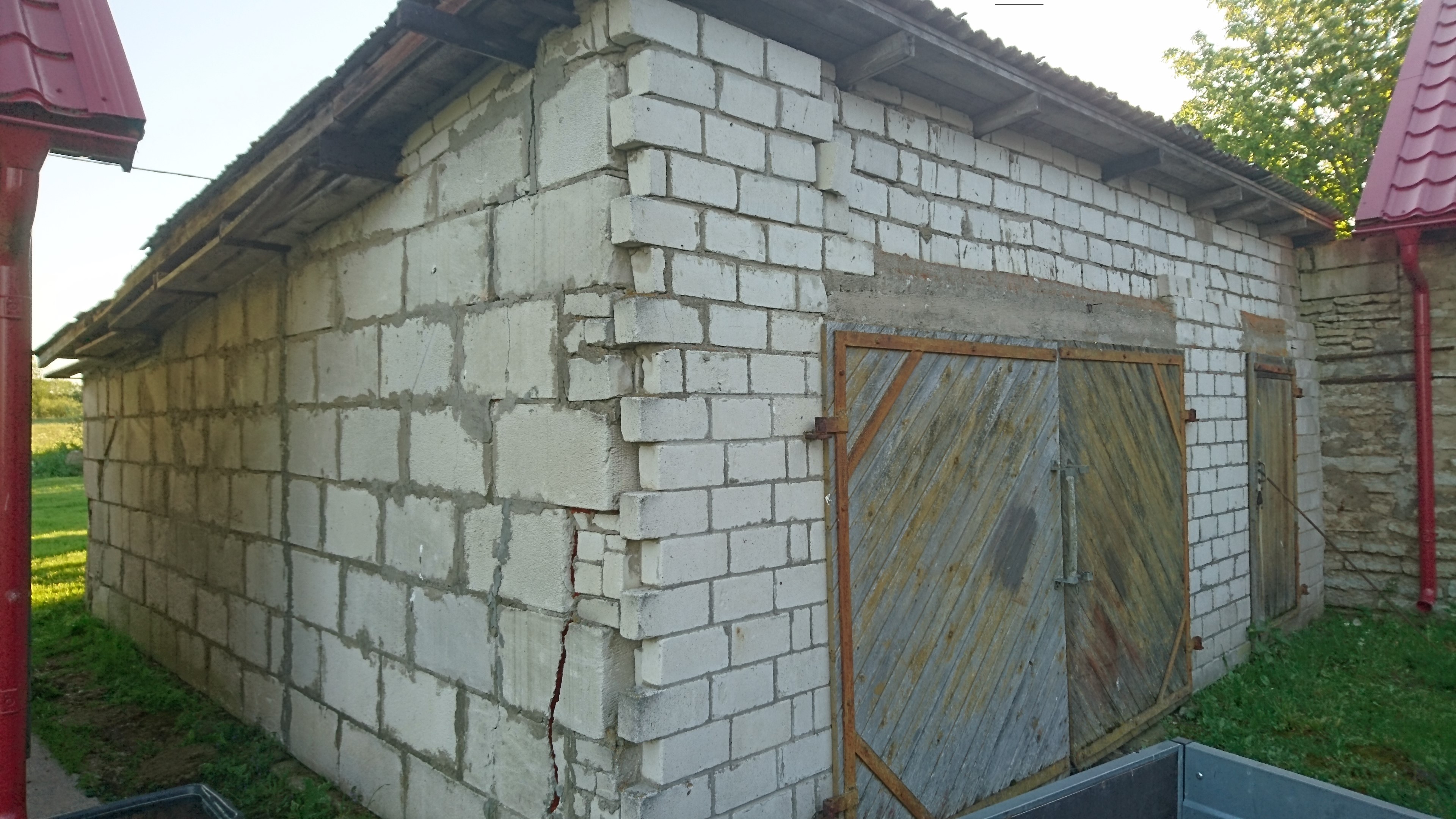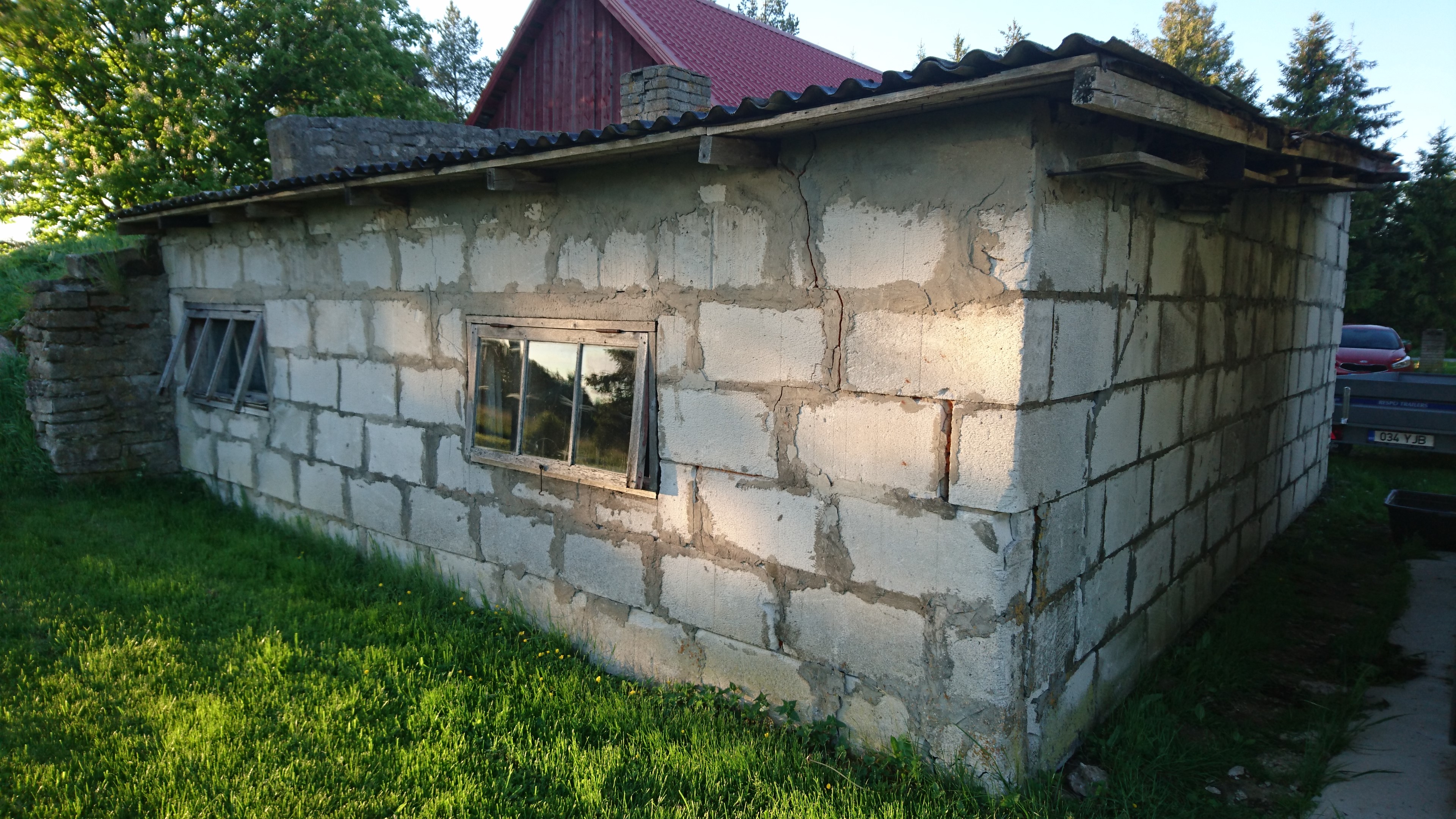 Vana garaaži lammutamine ja äravedu. Valmistatud tellisest ja tuhaplokist nn. peldiku tüüpi eterniitkatusega. Läbi garaaži on 5 metallist T-tala, mida sooviks endale jätta.
