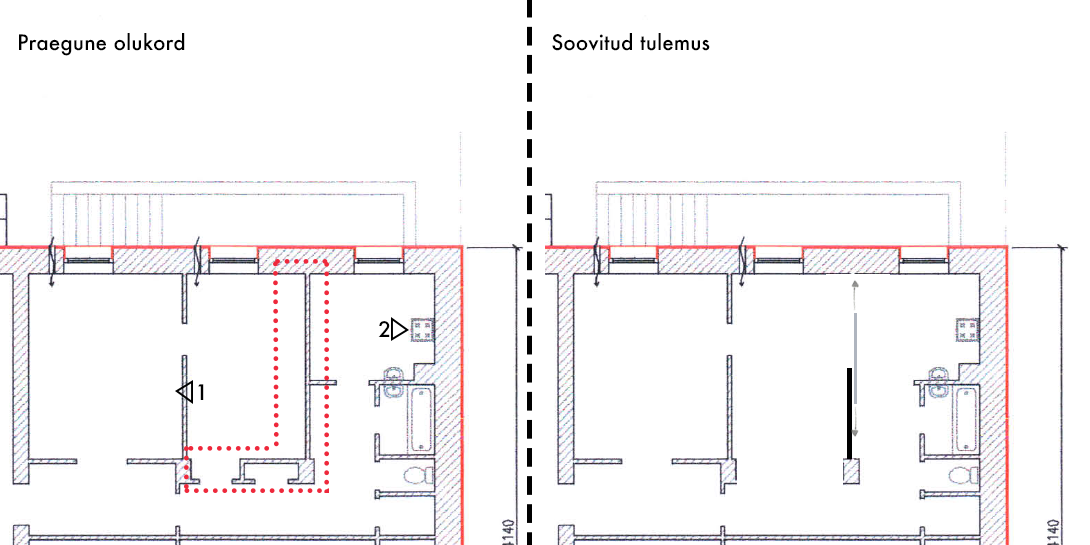 Samuti tahame kaotada elutoa ja koridori vahel oleva seina koos panipaigaga.