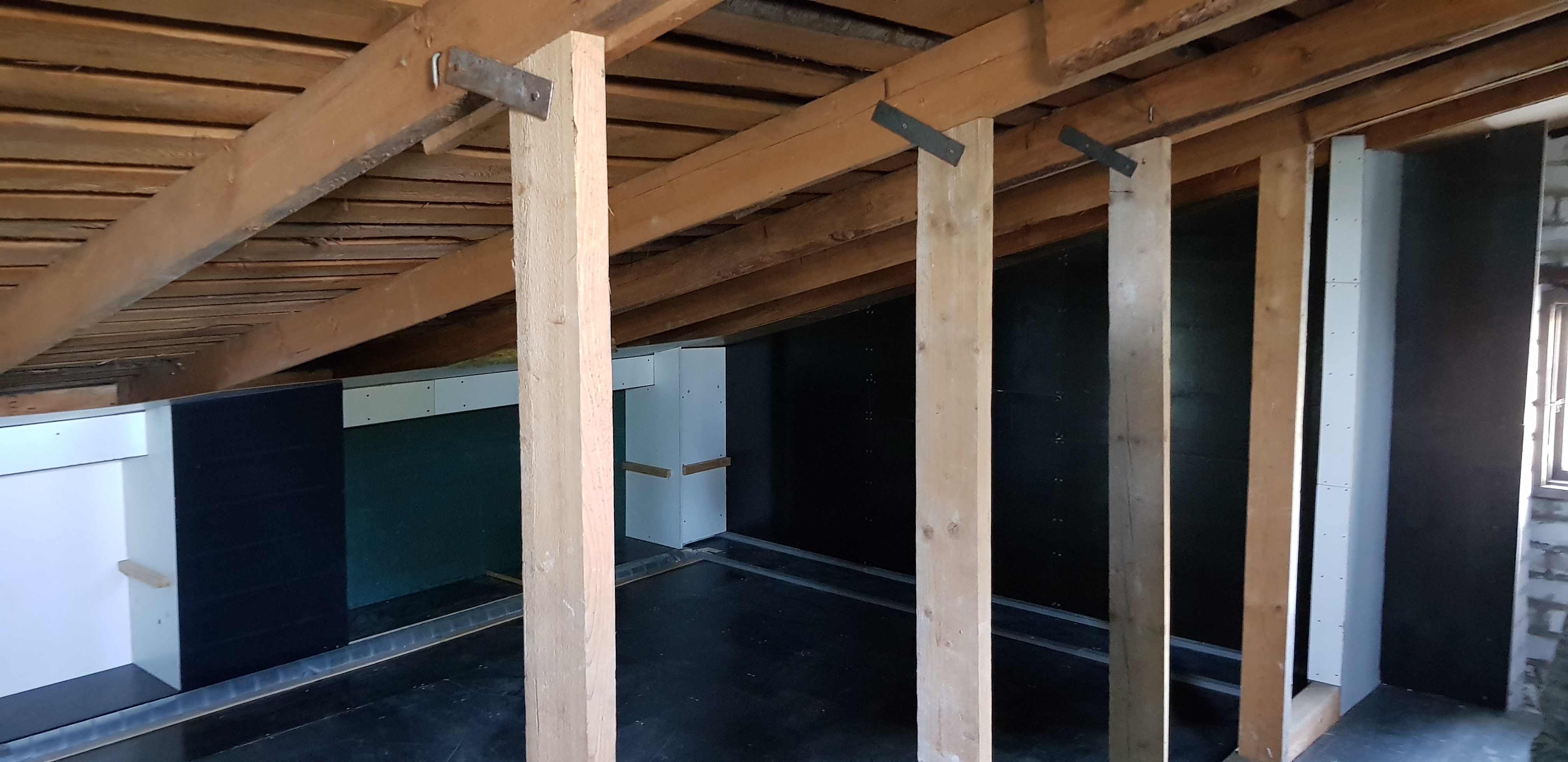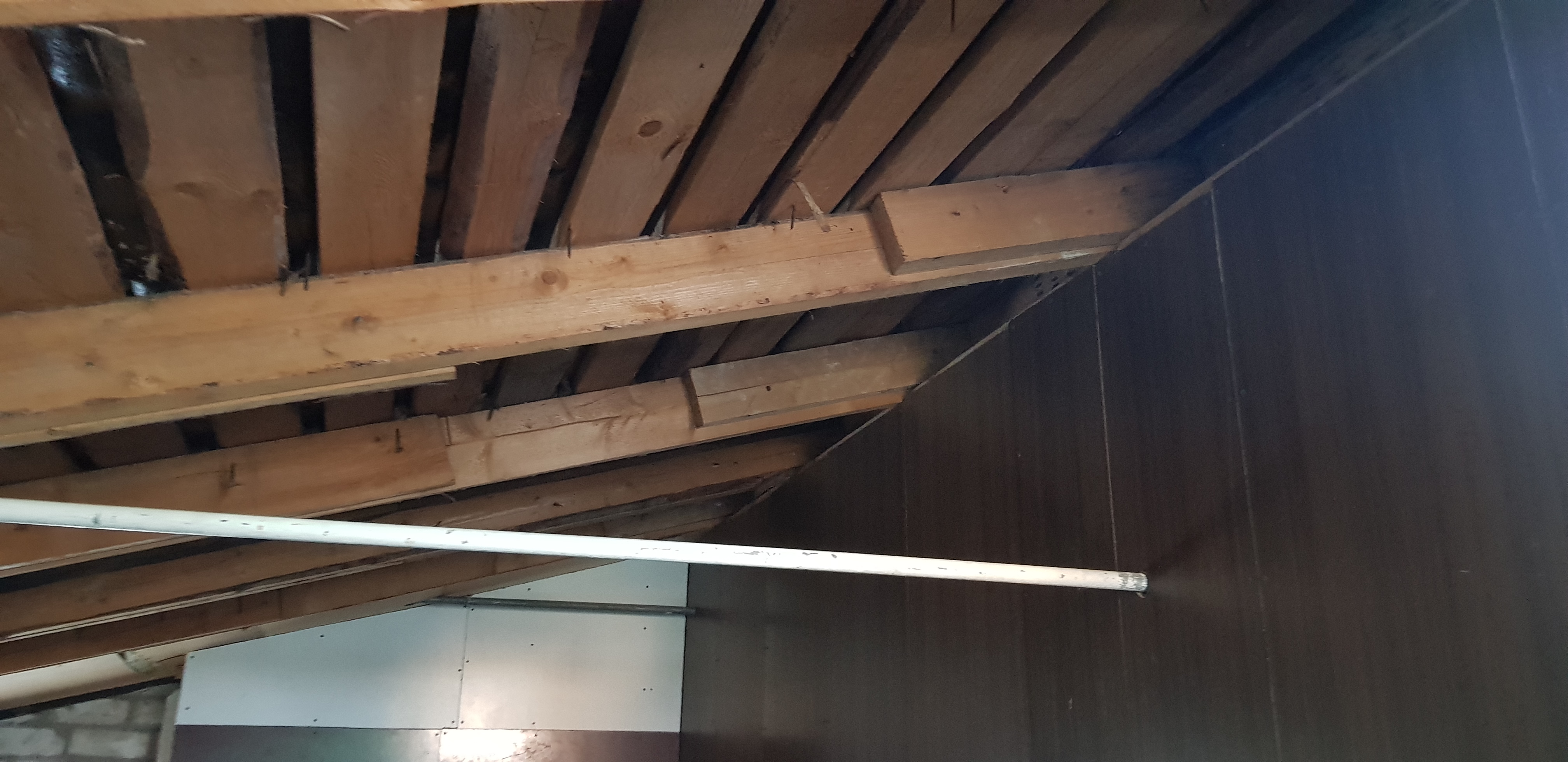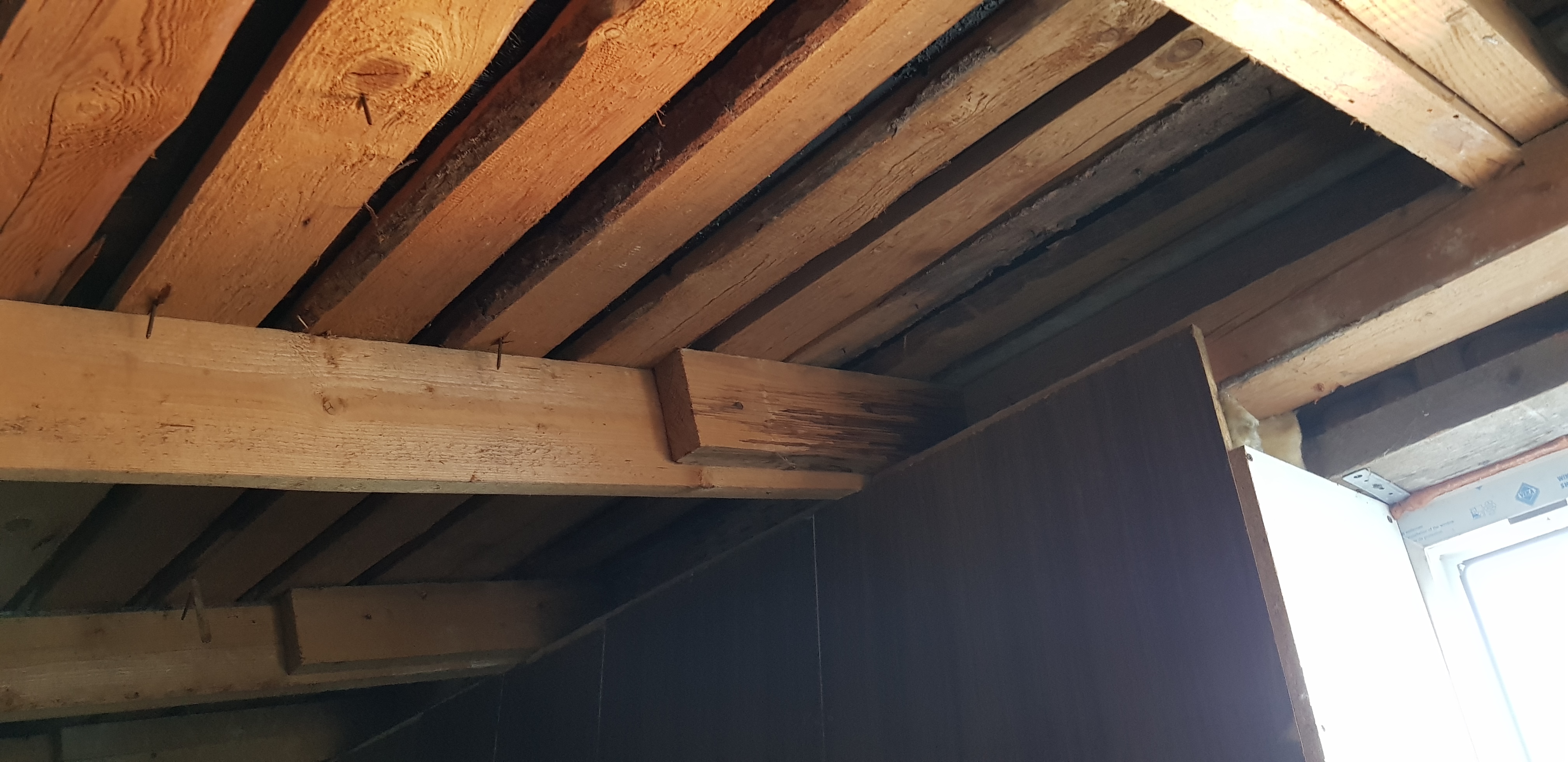 Hetkel on puitkarkassil soojustamata plekkkatus, mis mõne koha pealt läbi tilgub.