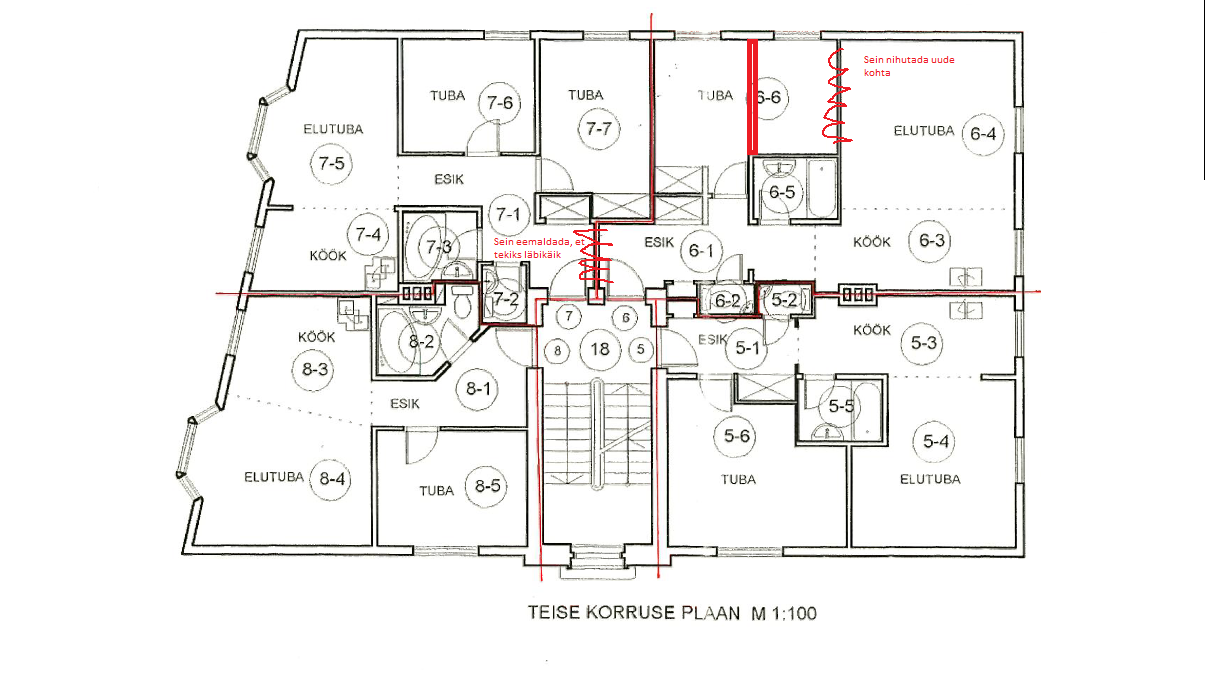 Ümberehitusprojekt kahe korteri kokkuehitamiseks ning tehniline hinnang kokkuehitamise teostatavusele.