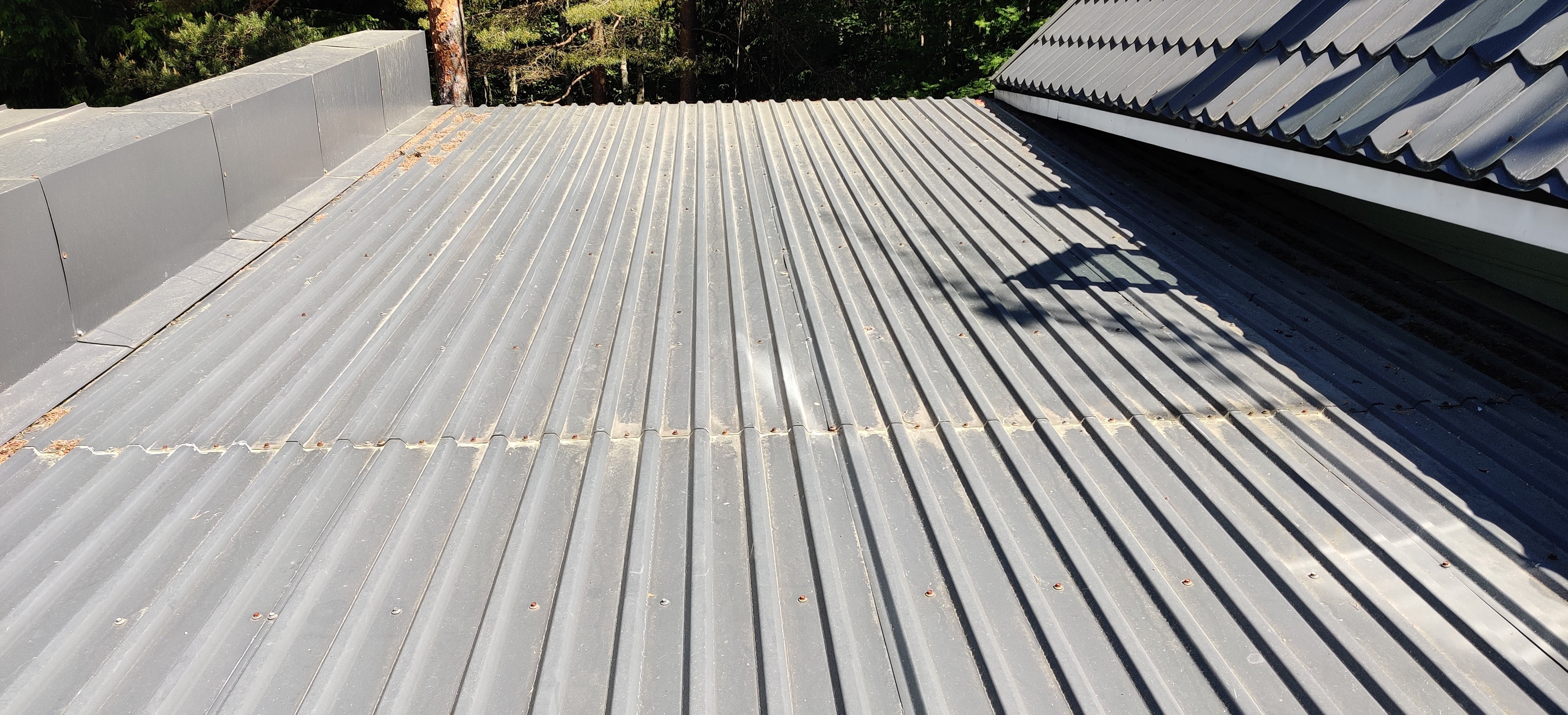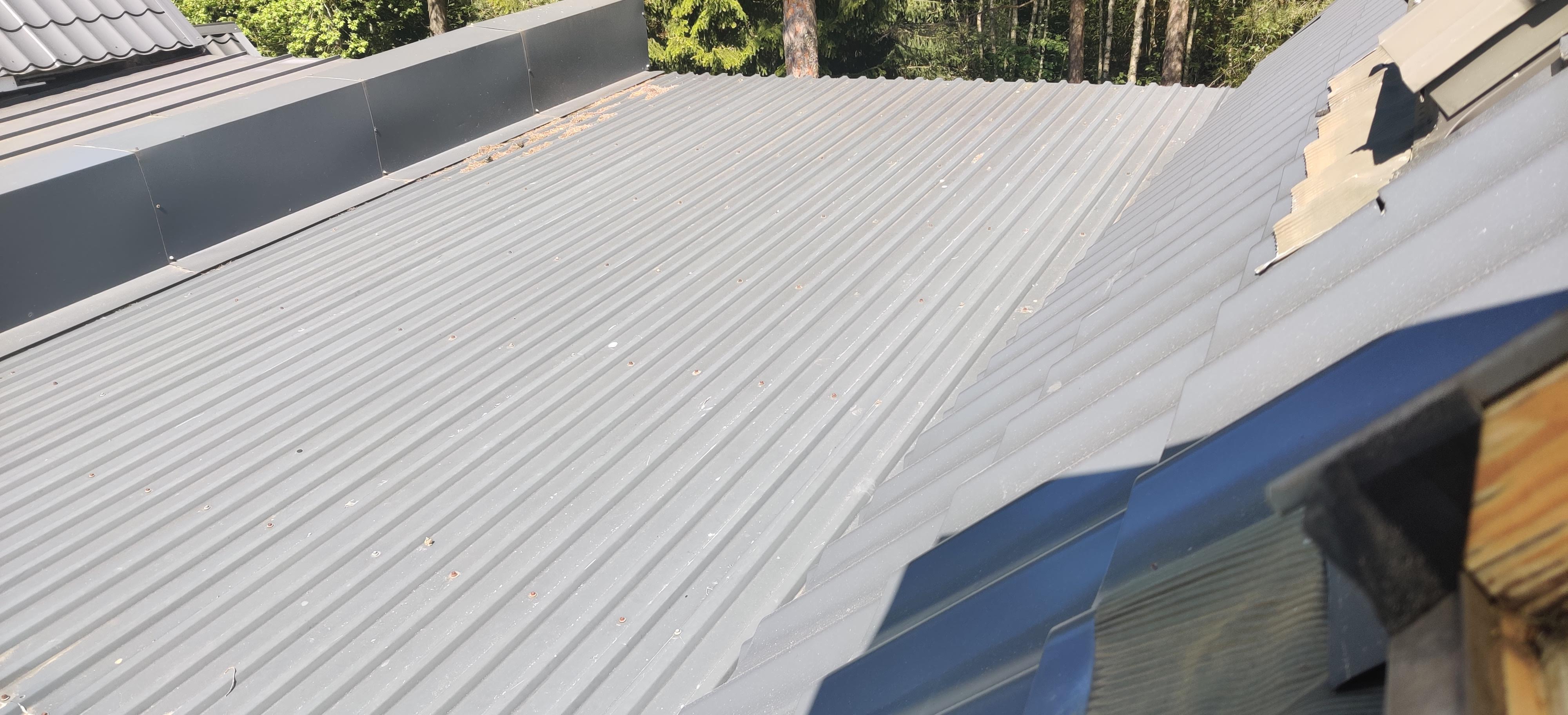 Sooviks vahetada paarismaja garaaži katusel olemasoleva trapetspleki tahvlid valtspleki vastu. Katuse pindala on u 43m2. Töö hõlmaks plekitõid, räästapleki paigaldust, sidumist kahe maja vahelise tulemüüri plekiga, vana pleki eemaldamist ning roovituse tihendamist (üle ühe roovituse vaja lisada uus)