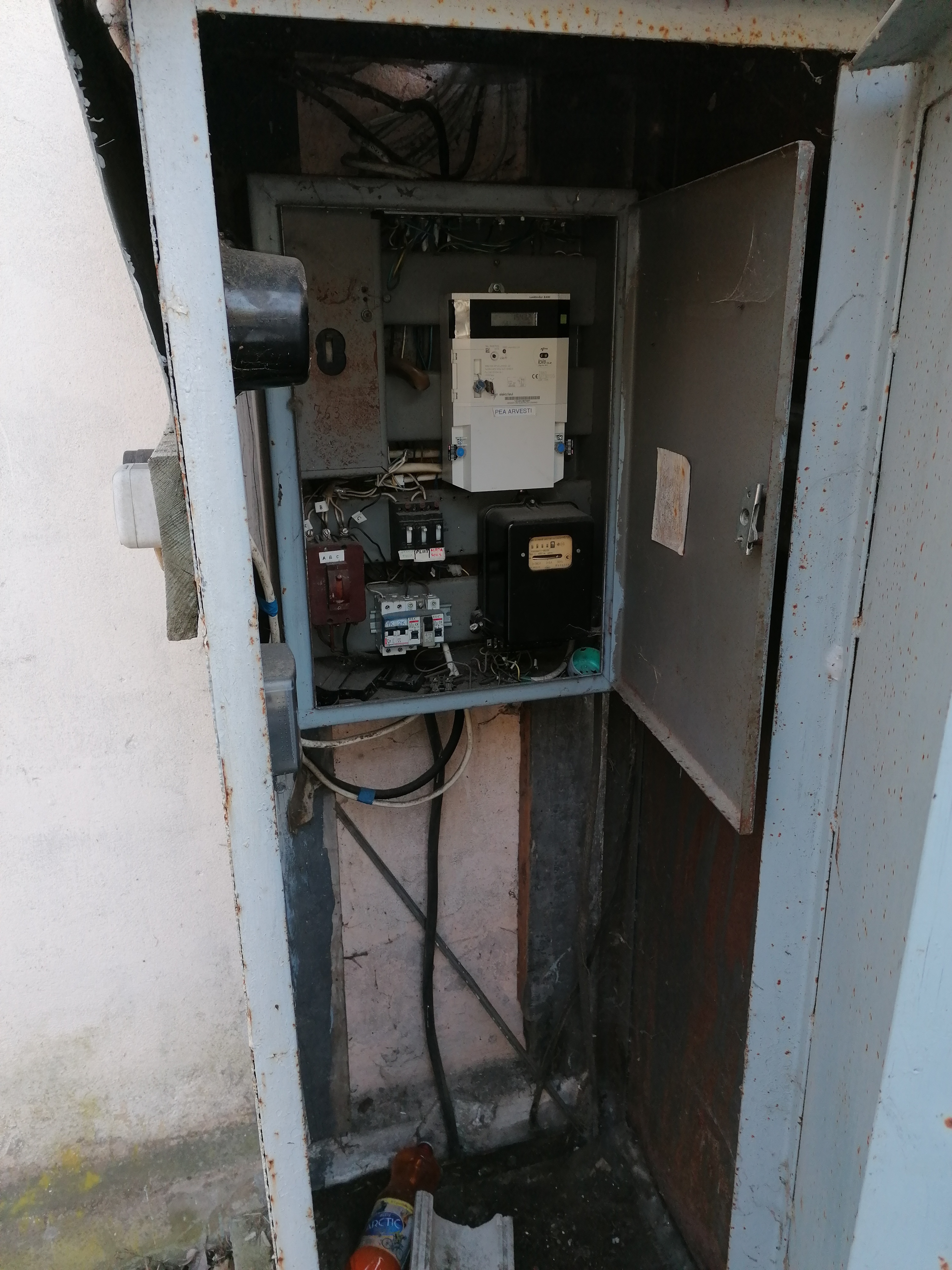 Olemasolev hooneväline arvestikilp ja metallkest ümber tõsta plaanil näidatud kohta betoonmüüri äärde. Olemasoleva kaabli lahtikaevamisega või uue kaabli ja muhviga. Kuna kilbis on elektrilevi arvesti, peab töövõtja arvestama ka Elektrilevi välja kutsumisega näidu fikseerimiseks, plommimiseks, uuesti pingestamiseks jne.
