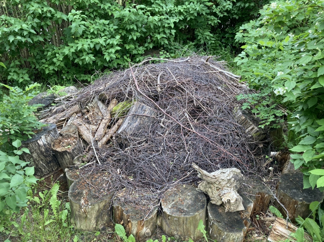 On 2 okste ja puidumaterjali - prahihunnikut, mis tuleb ära likvideerida. St minu krundilt ära viia töö teostaja poolt. Kuhu viiakse, on teostaja enda valida ja ei puutu enam minusse. Ma ei saa neid maja lähedal põletada. Vanu oksi, kännujuppe, laudu jms. Sisaldab ka kindlasti naelu vähesel määral, seega ei sobi hakkemasinasse. Pigem sobib põletamiseks. Üks hunnik on u 60cm kõrge ja 4m diameeter. Teine on 18m2 - u 1,6m kõrge. Küsi lisa, kui piltidest jääb puudu.