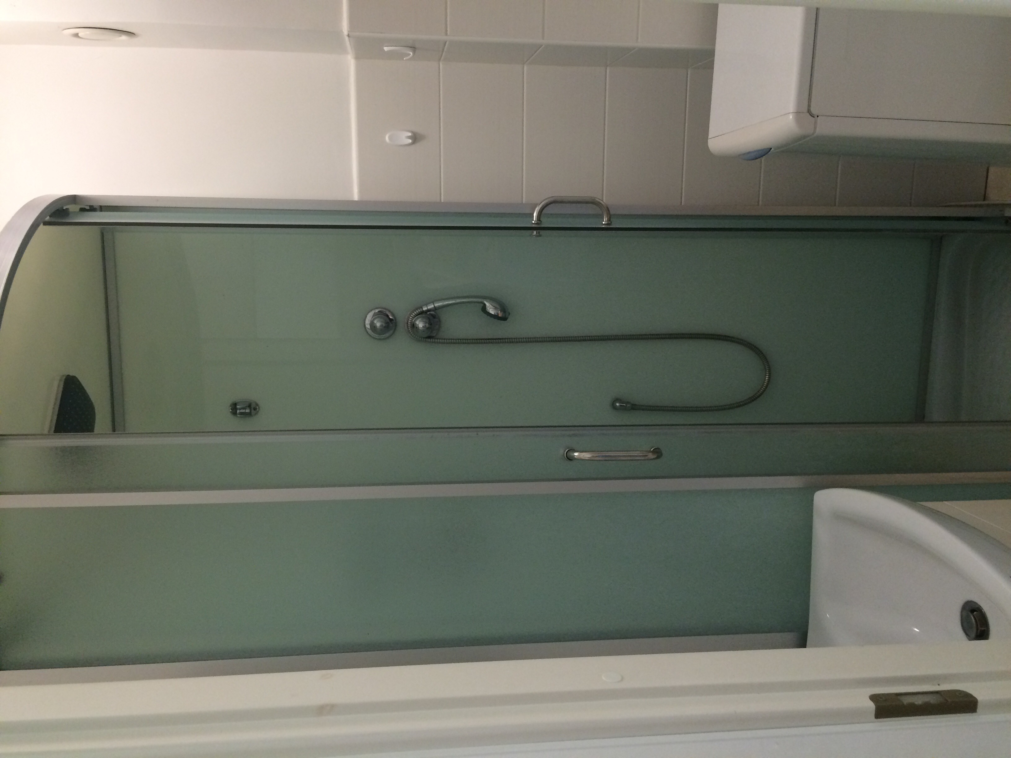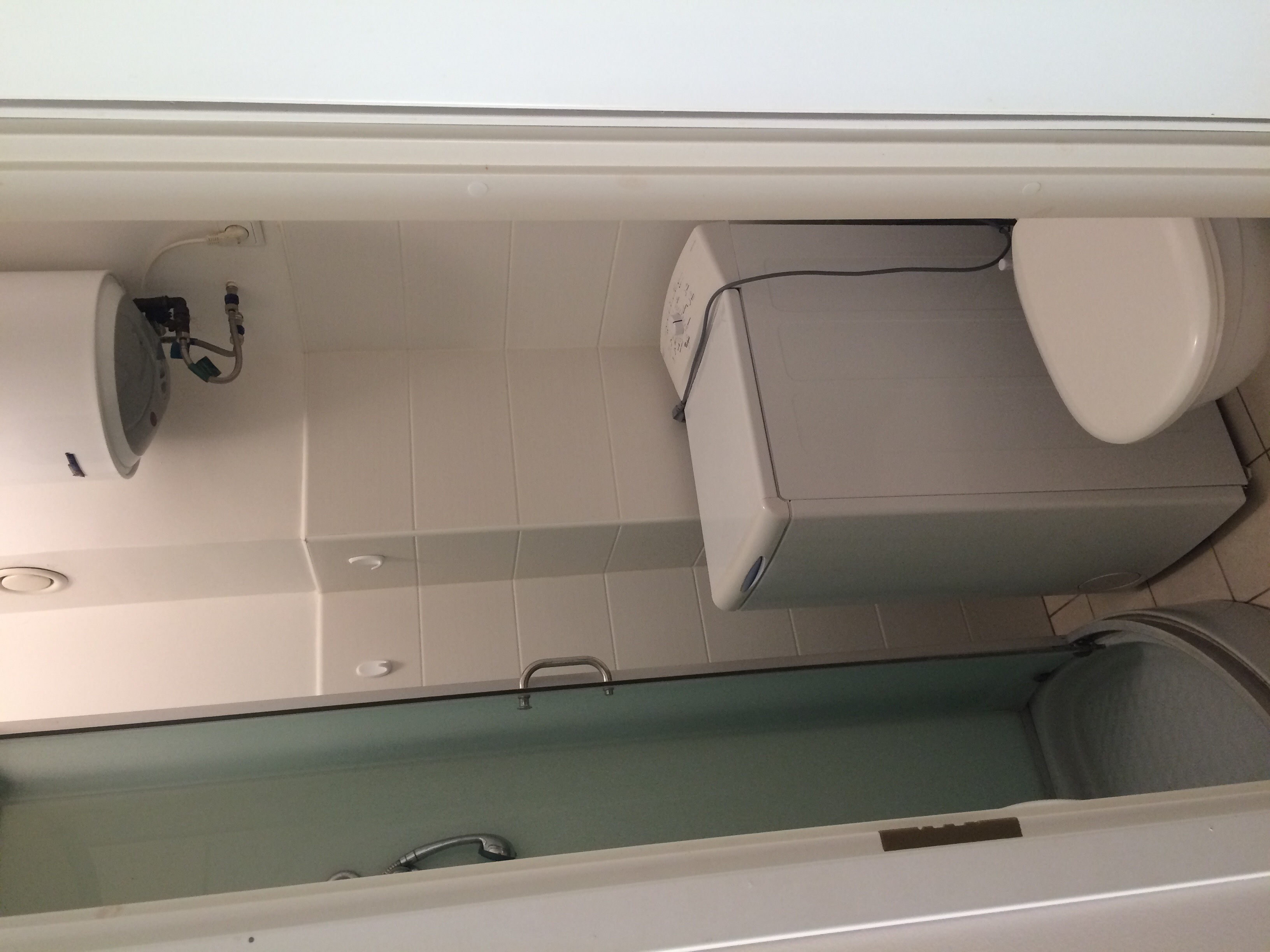 väga väike (1.57 x 1.35 m) vannituba 1. korrusel. Dušikabiin lekib alt, nii et pinnad selle all ja taga on tõenäoliselt hallitunud. Lisaks sifoonis või külgnevas kanalisatsioonitorus on tugev ummistus - torusiil ja muu keemia ei aita, võib vaja minna trossi vms.
