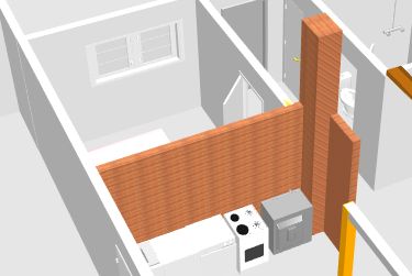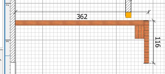 Puhta vuugiga tellistest L-kujuline vahesein 3,6m-1,2m, kõrgusega ca 2,7m. Müüri nurga sees on kahe väikese lõõriga korsten (osa müüri välisnurgast). Korstna kõrgus ca 6,5m.