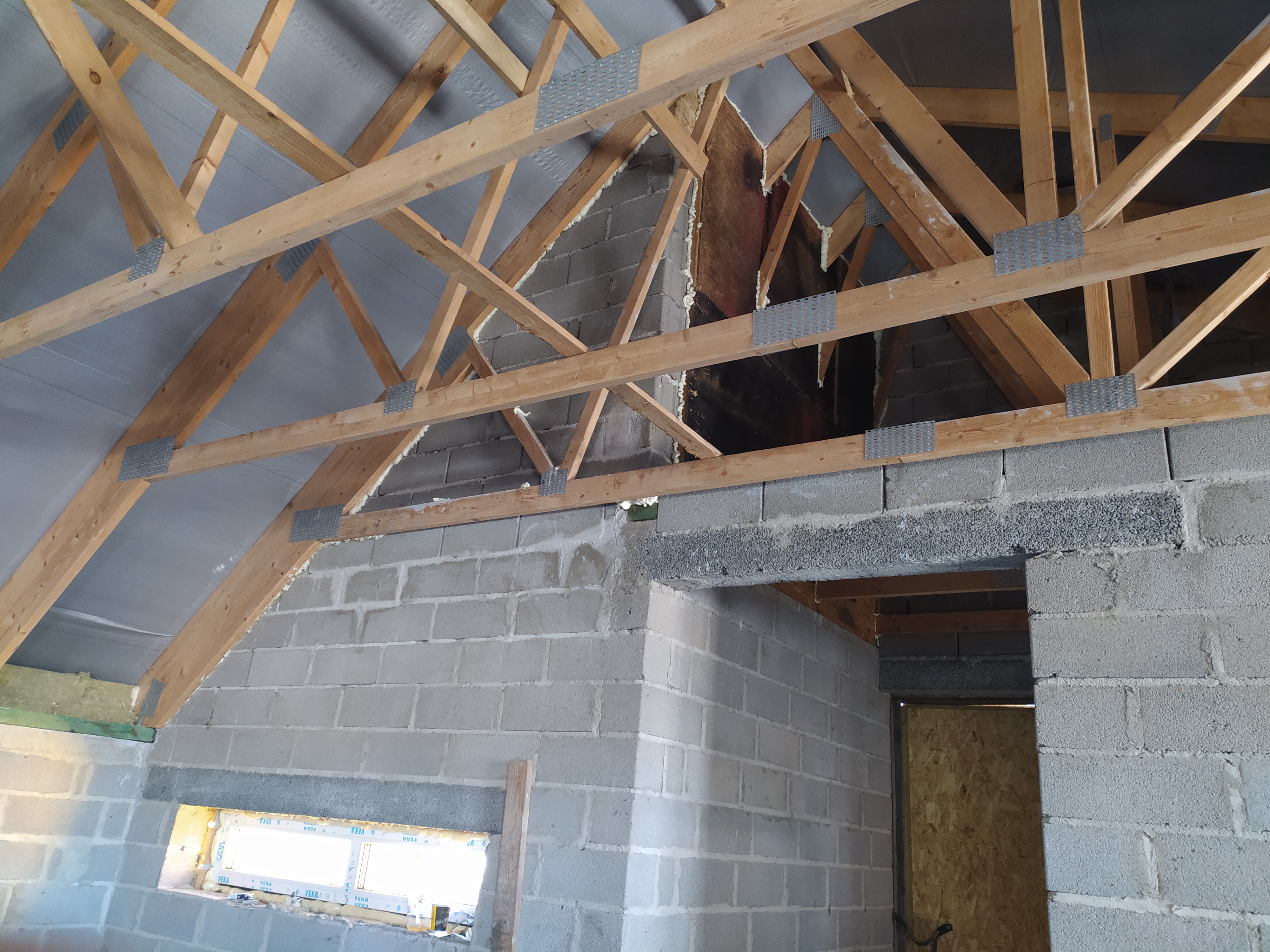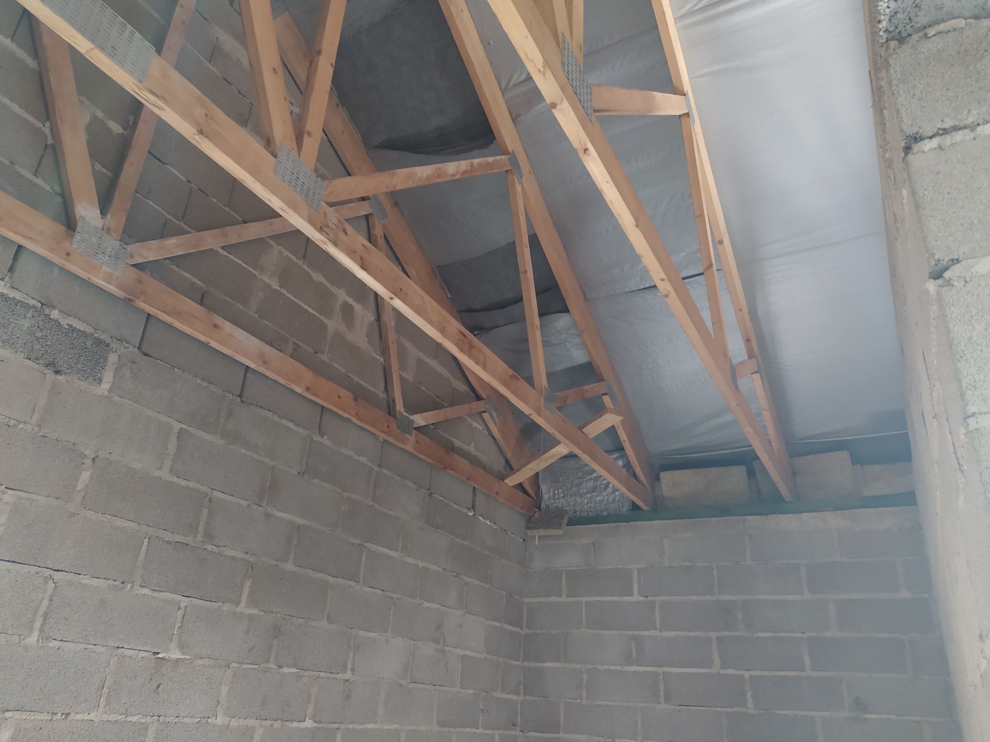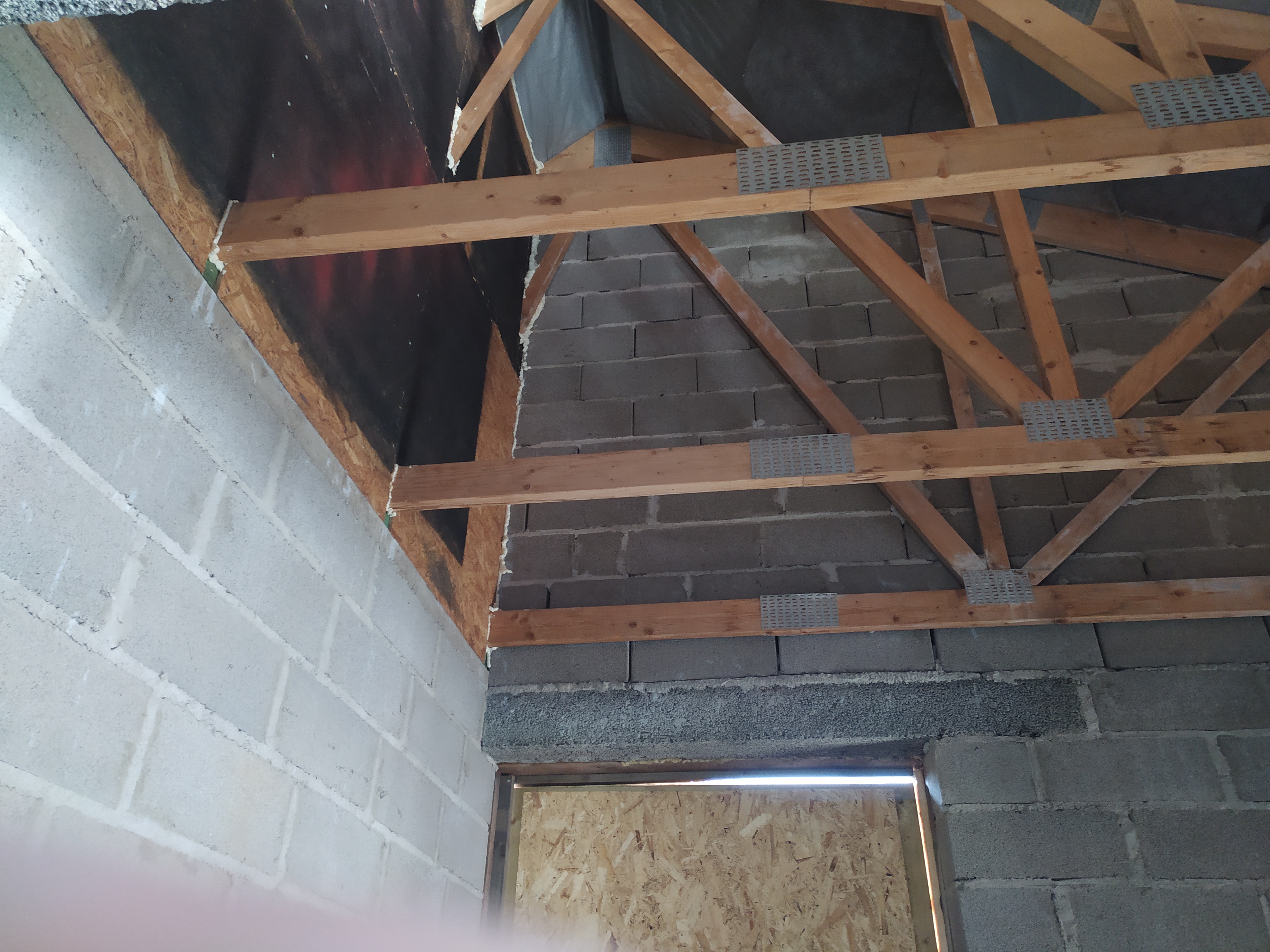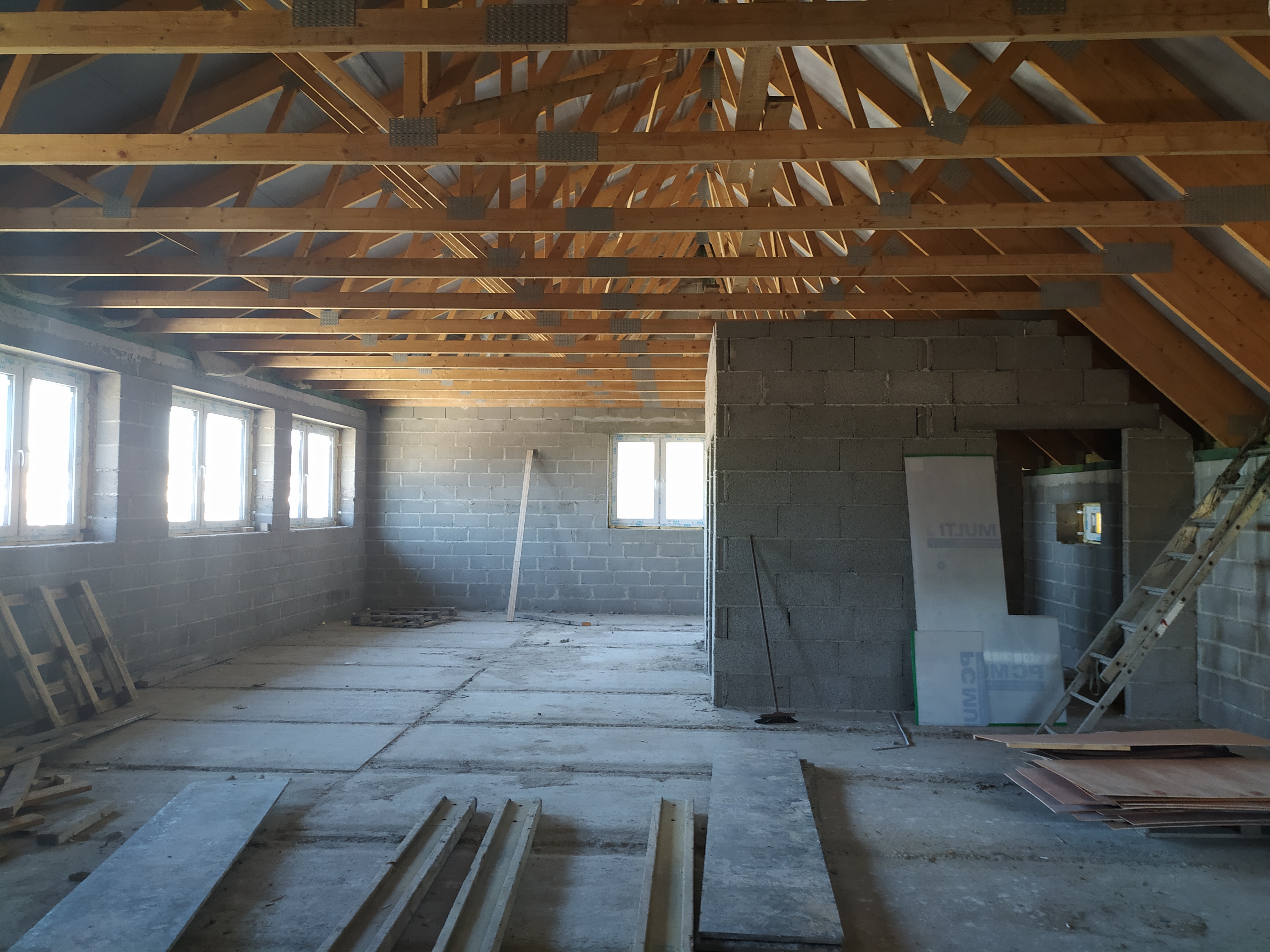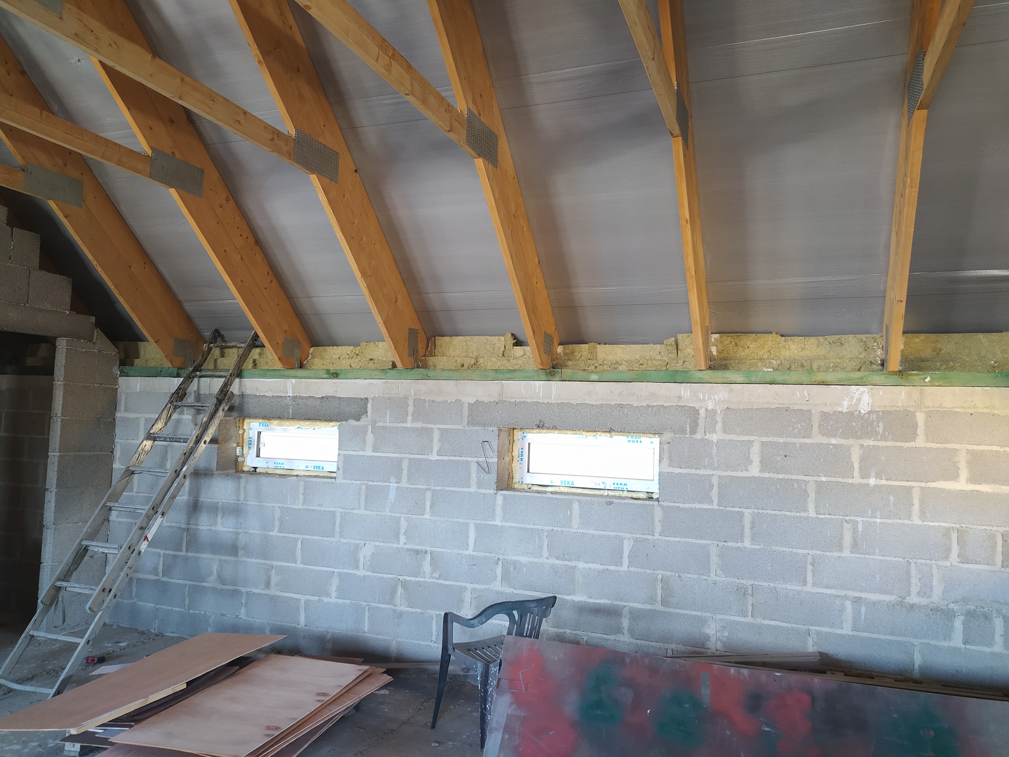 Viilkatusega hoone 3. korruse soojustatud lae ehitamine.