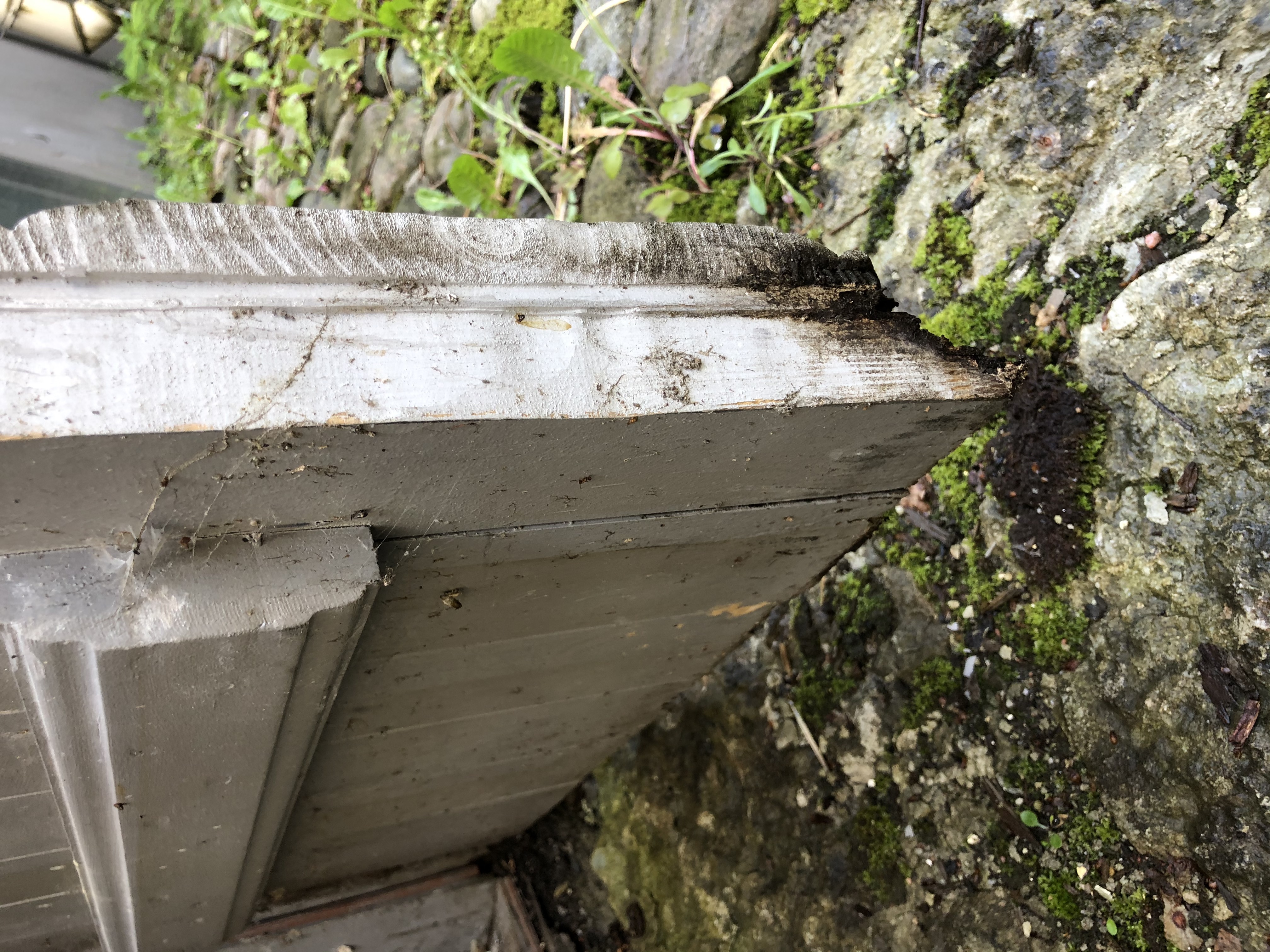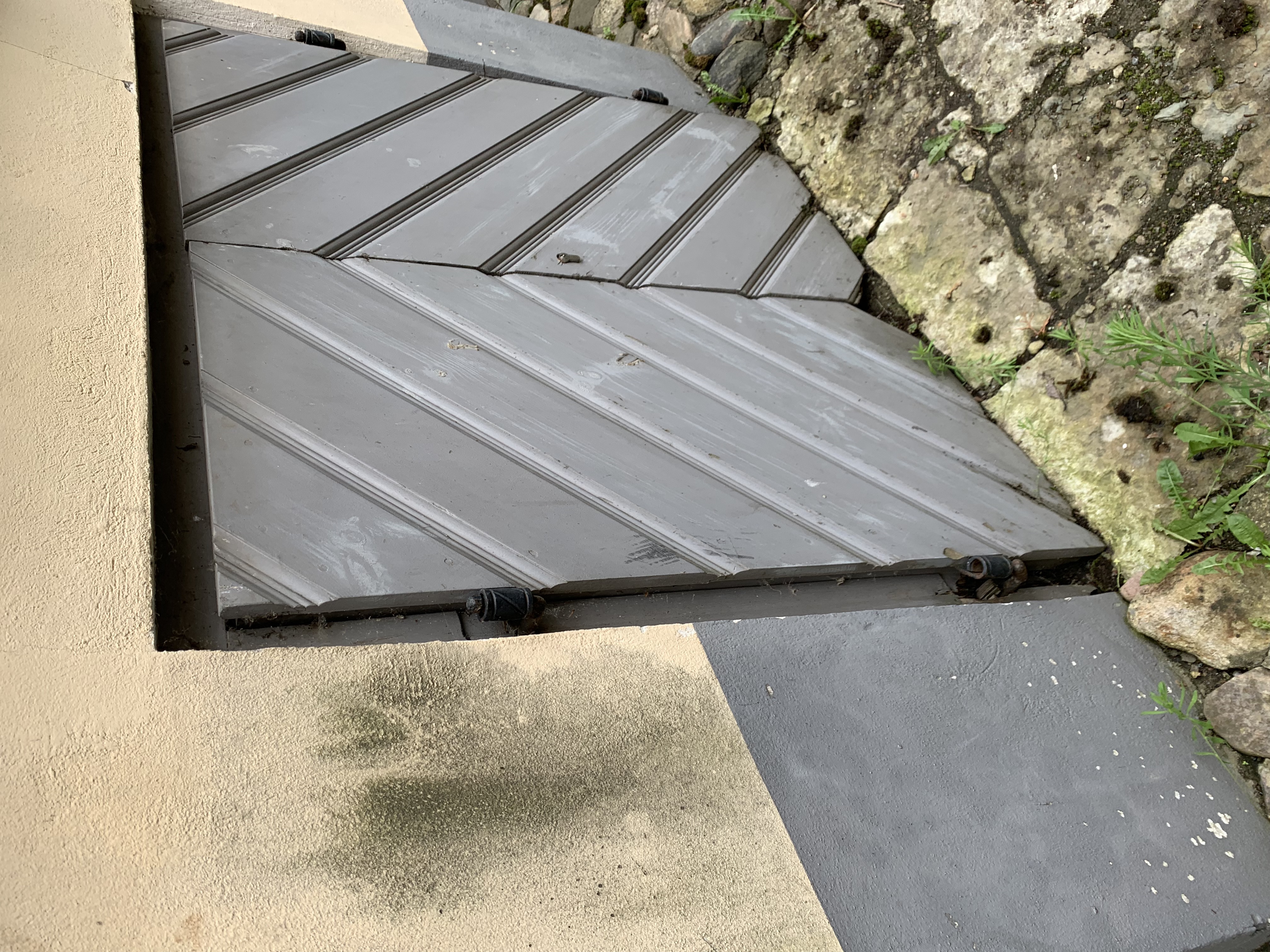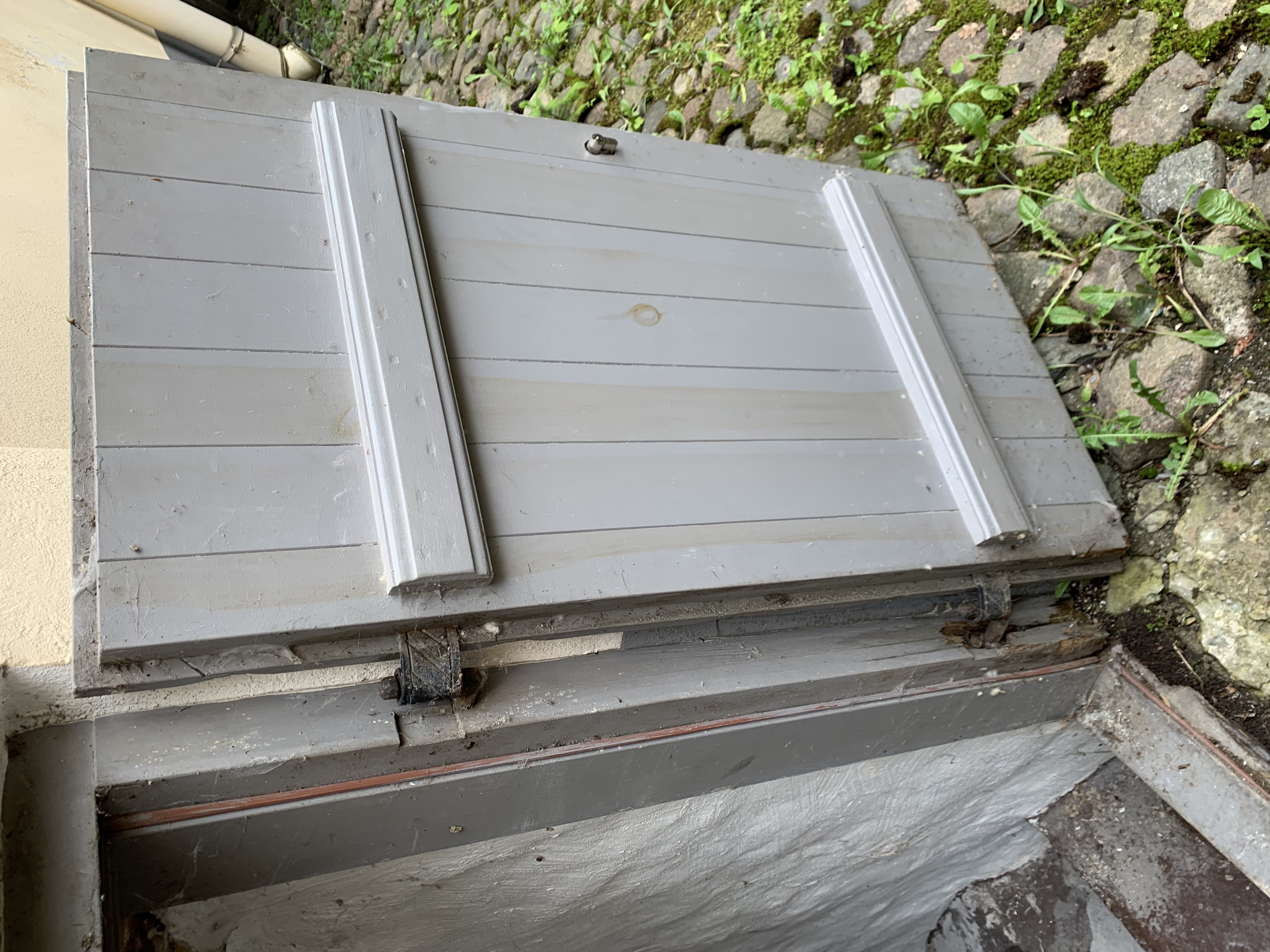 On Tallinnas üks keldri välisuks, mis on ära kulunud. hinged on ära väsinud ja lävepakk alt ka läbi vettinud ja katki. Lisaks on ukse diagonaalsete voodrilaudade alumine osa katki.