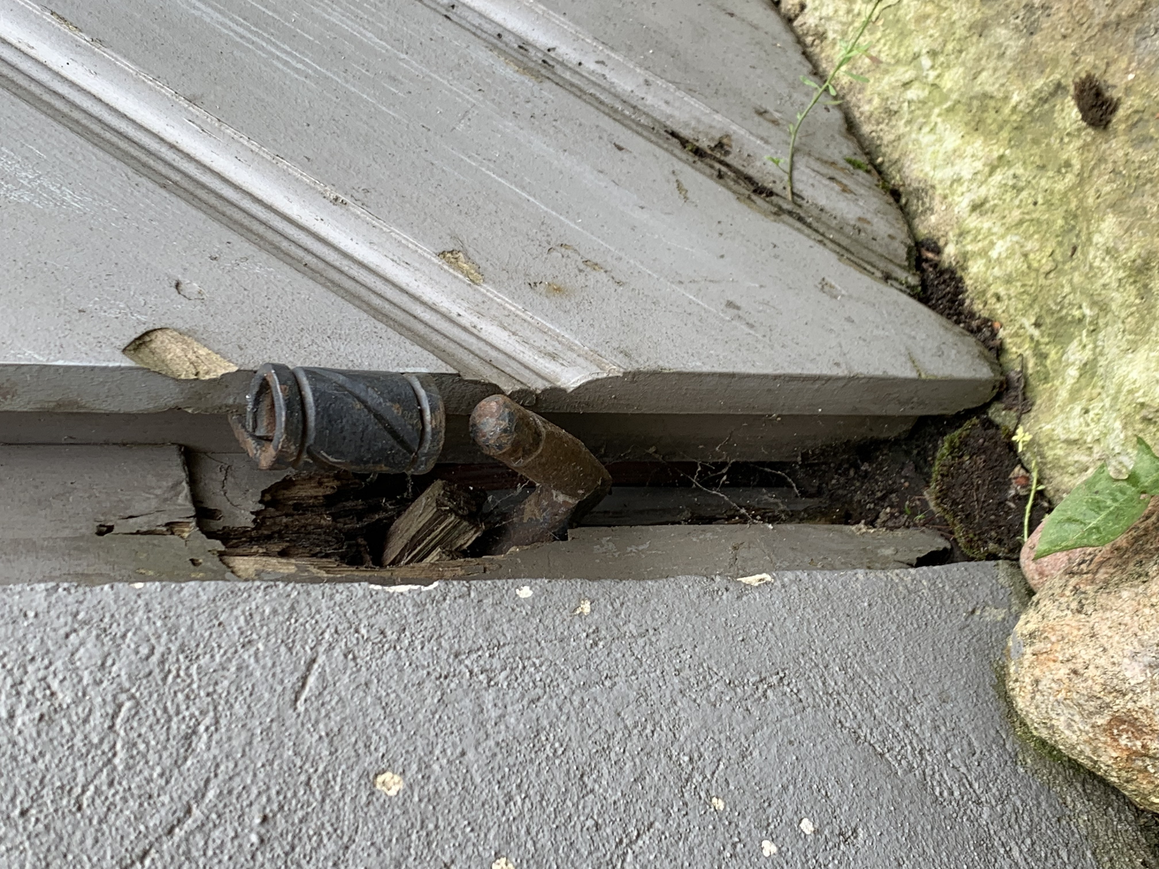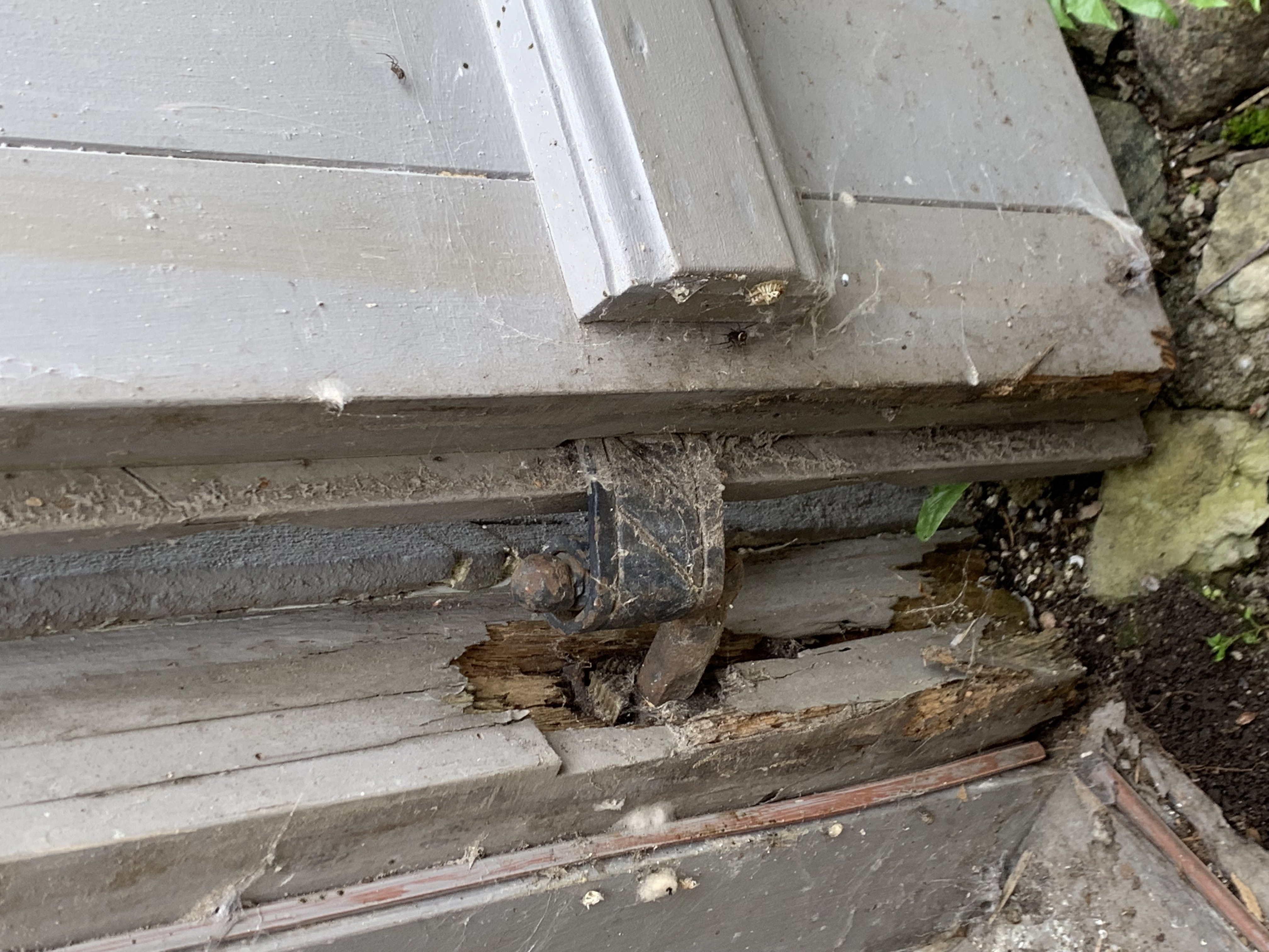 Oleks vaja taastada, et ust saaks korralikult kinni sulgeda ja et ust ei saaks ilma võtmeta avada kui on lukustatud. Riivid ja hinged peaksid hoidma. Hea kui saaks ka voodrilaudade alumise osa korda.