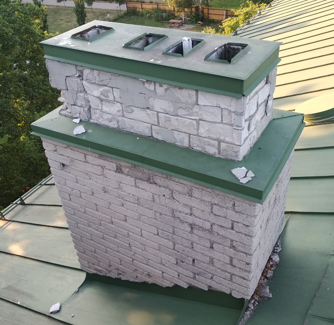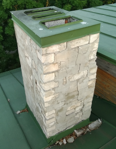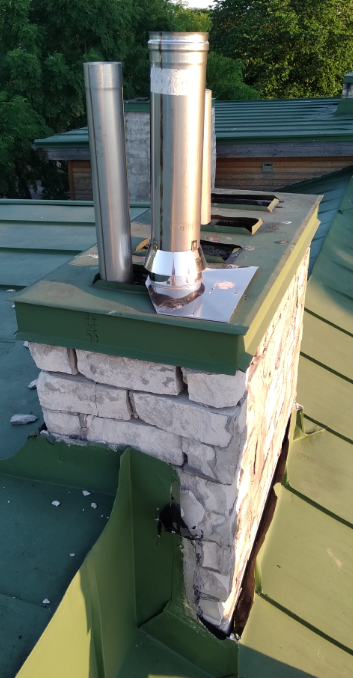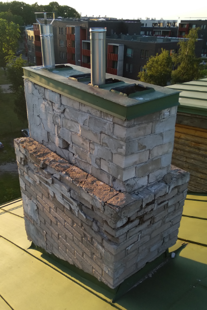 3. Neljal korstnal paigaldada uued korstnamütsid ja tihendada katuse ja korstna kokkupuutekoht.