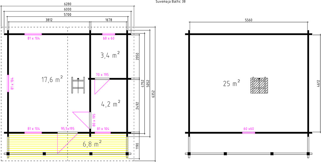 Plaatvundament saunamajale ehitusaluse pinnaga 33,9 m2, millest terrass moodustab 6,82 m2. Täpsem info kaasas olevas eskiisil, erinevalt eskiisist ei tule arvestada elektriküttega, kuid lisaks vee, kanalisatsiooni ja elektriotsad läbi plaatvundamendi.