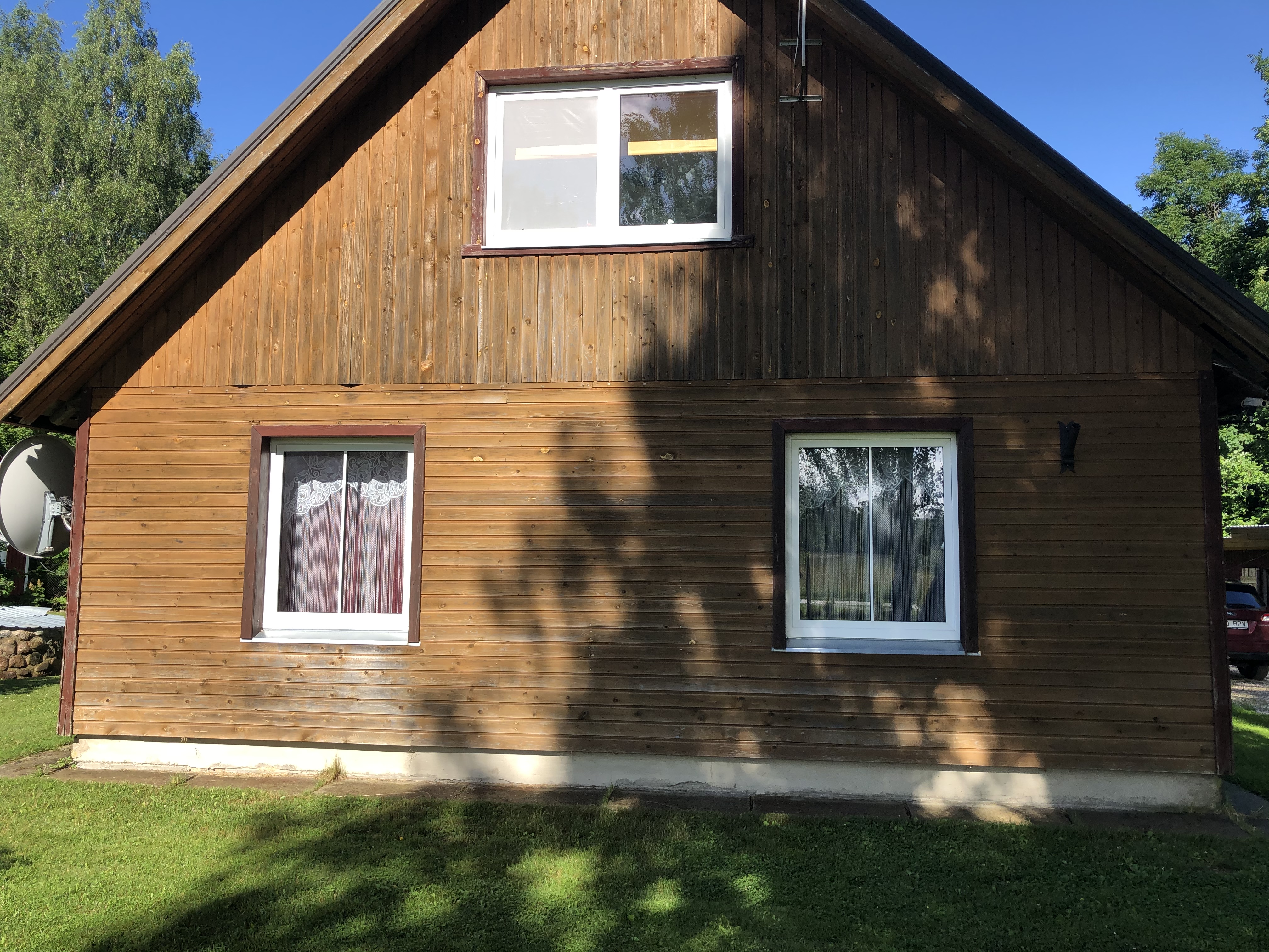 Tegu kahekordse majaga.Seina pinda on kokku 130 ruutu, kui aknad ja uksed välja siis u 115ruutu. Vanad lauad saan ise maha võtta.