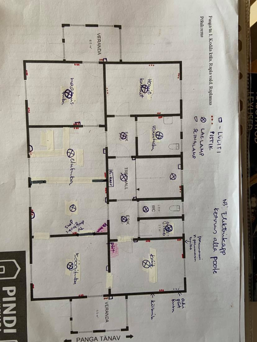 Eramajas 100m2 ulatuses vaja vedada uued elektrijuhtmed ja paigaldada uus elektrikilp. Vanad juhtmed maha võetud. Kõik tarvikud (kaabel, harutoosid jne) on tellija poolt. Ligipääs on igale poole tagatud. Elektriprojekti pole koostatud, kuid olemas maja plaan seadmete ja pistikute/lülitite asukohtadega.