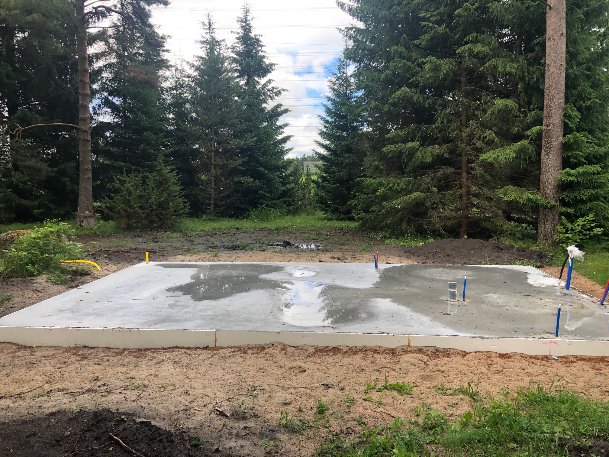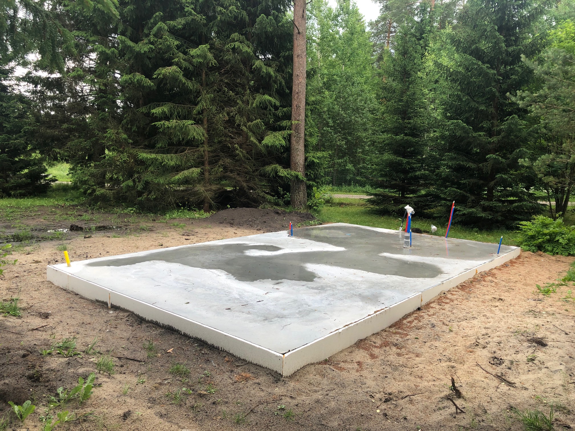 Plaatvundament on valmis ja kõik kommunikatsioonid on sealt läbi toodud. Projekti peal on ruumid määratletud teise nimega. Saunakerise juures on ka vajalik üks sein laduda fibo plokkidest. Vahelagi peaks olema soojustatud. Samuti ka välisseinad.