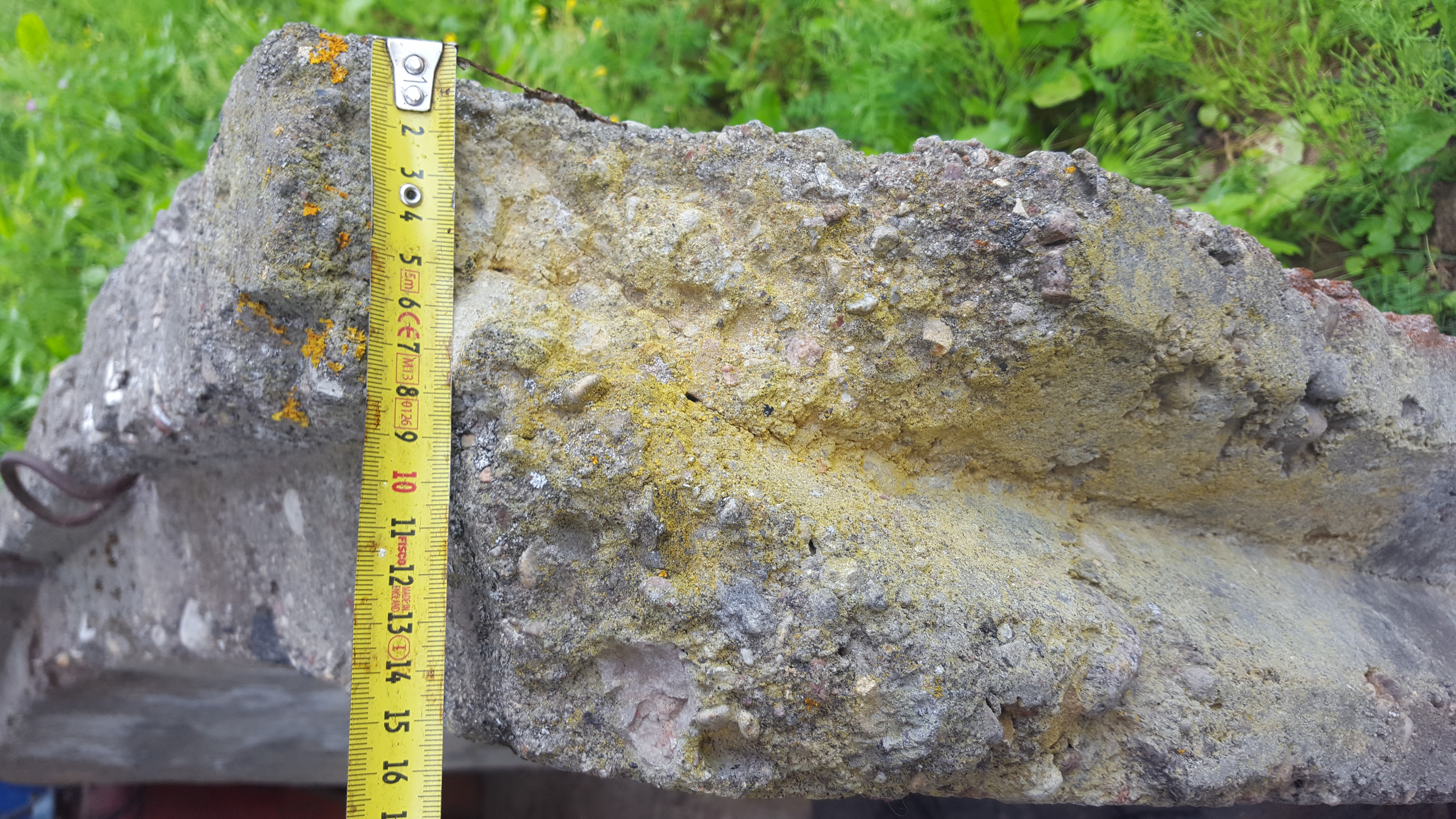 Ehitise pikkus on 5 plokki (1,5 m pikkusega) ja laius 3 plokki. Vahesein on tuhaplokist ja suurema ruumi laes jookseb veel relss.