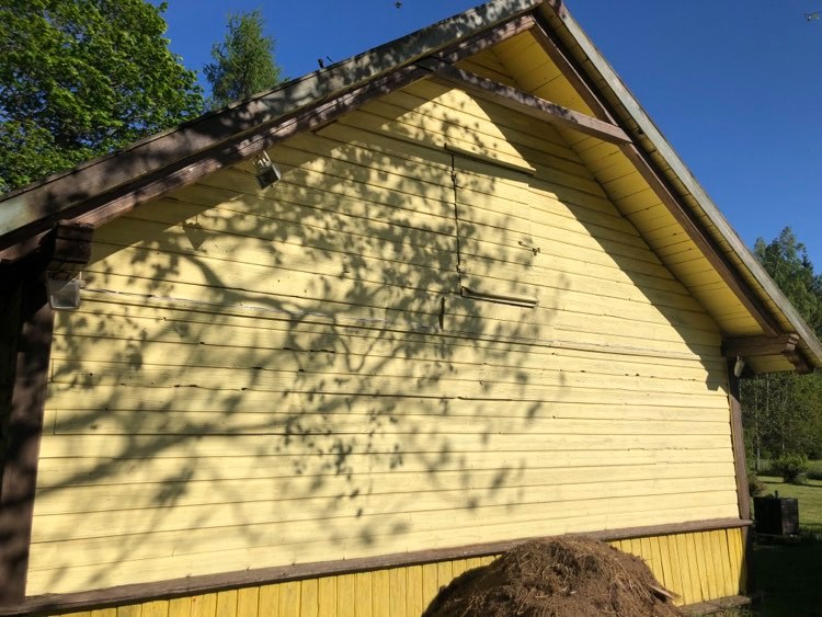 Välisseinad on palkseinad, kahjustatud palgid vahetatakse välja. Sein soojustatakse väljast 100 mm villaga, paigaldatakse tuuletõke, peale tuulutusroov ja välisvoodrilauad värvitud .