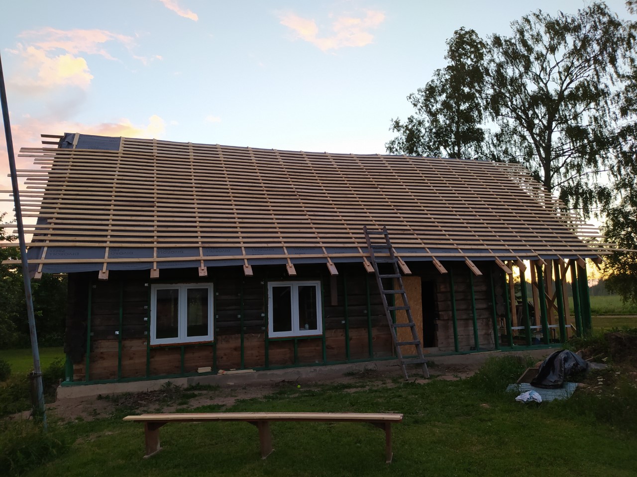 Katuse pindala ca 150 ruutmeetrit. Rooviks kasutatud 22x100 saematerjali ning 3,4x100 kuumtsingitud naelu.