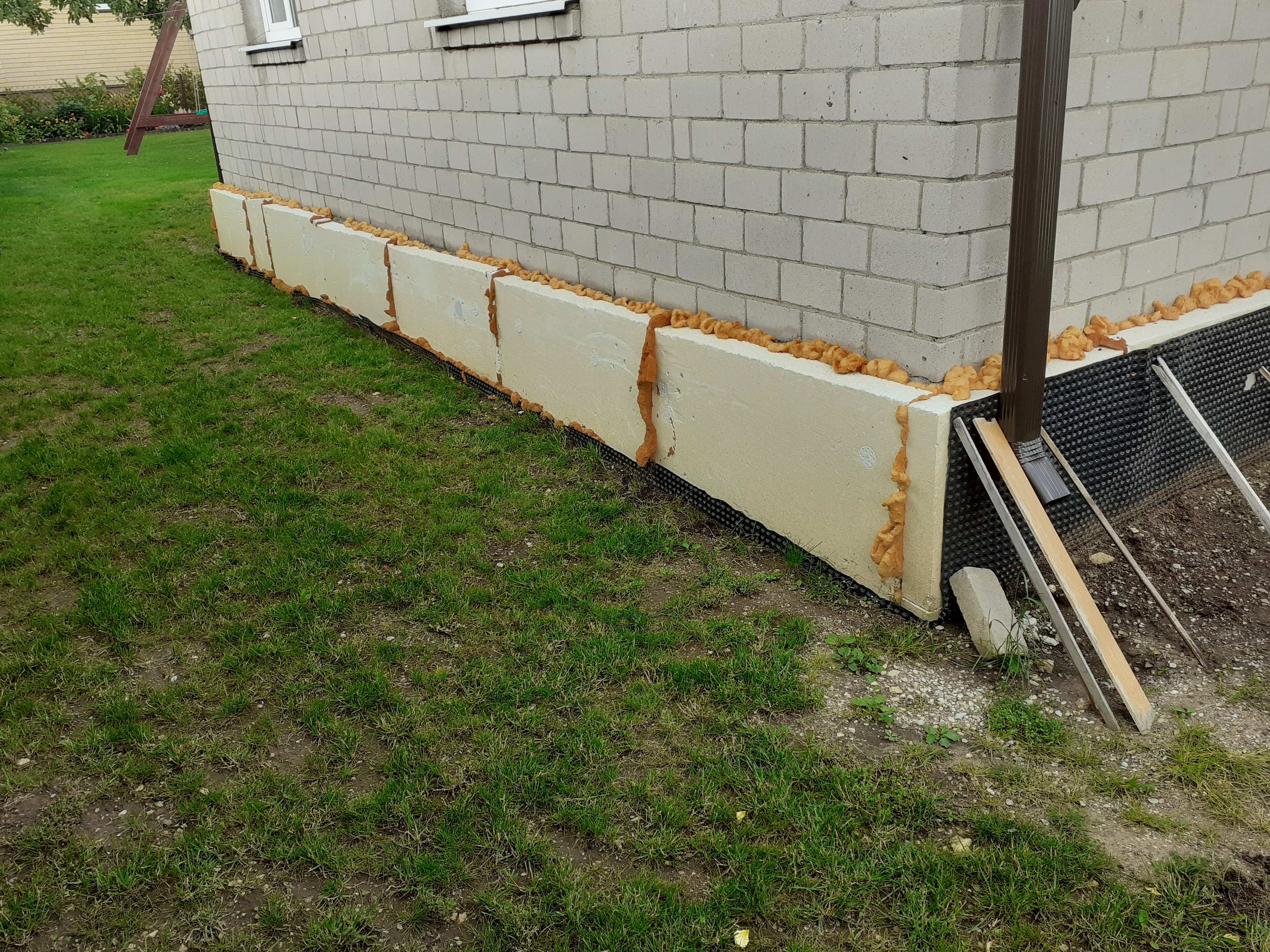 1959 aastal valminud eramu vundament on soojustatud. StoneREX katteplaadid on olemas. Vaja oleks teostada järgmised tööd: roovituse tegemine, plaatide ja veepleki paigaldus.
