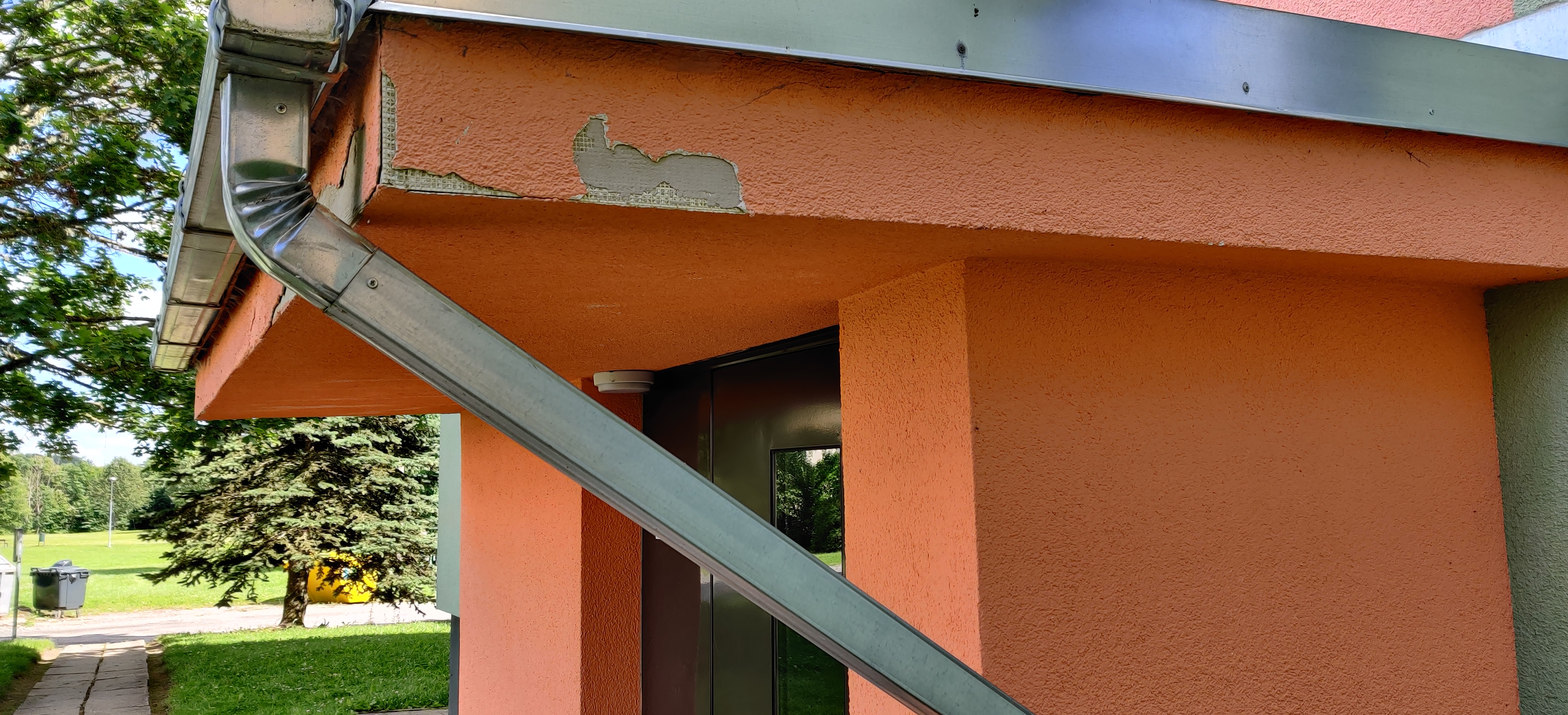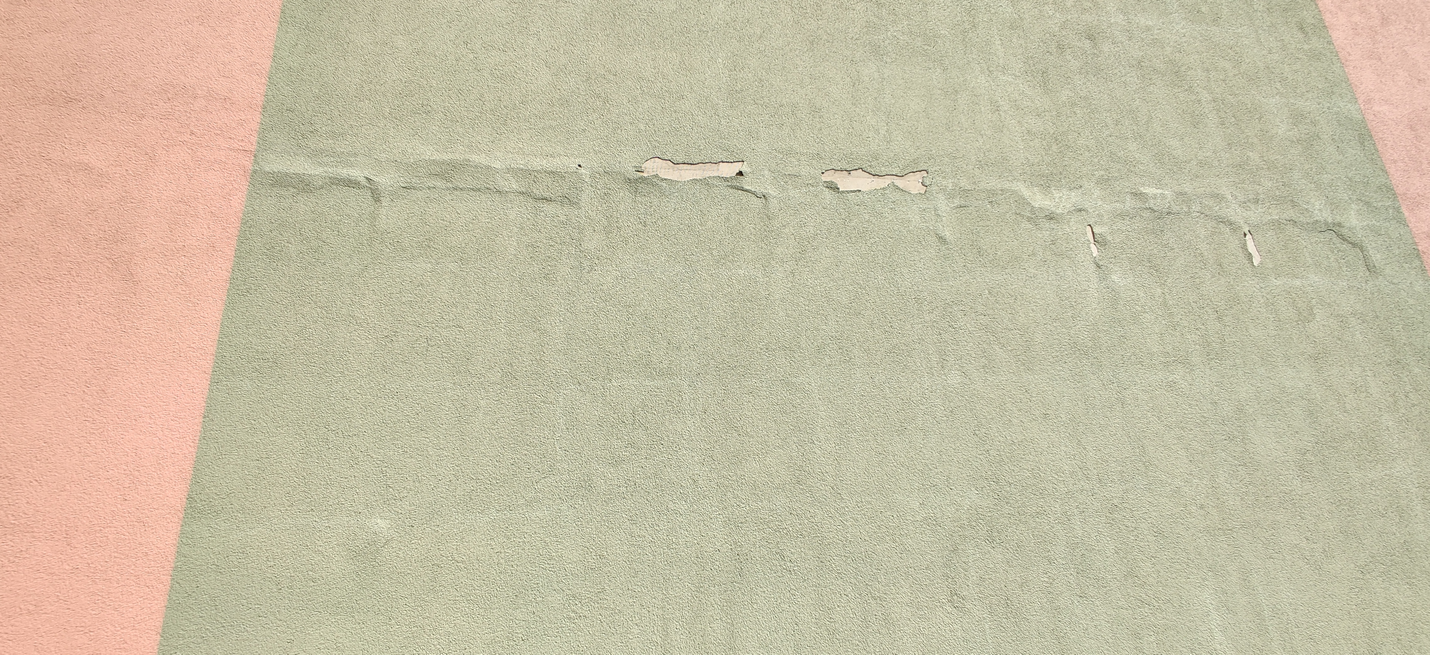 Remonti vajav pind 40-50 m2. Kuna ei tea kui lahti täpselt krohv on. Selgineb töö käigus. Kooruv koht on tasapinnast 4m kõrgusel. Sein 10m lai.