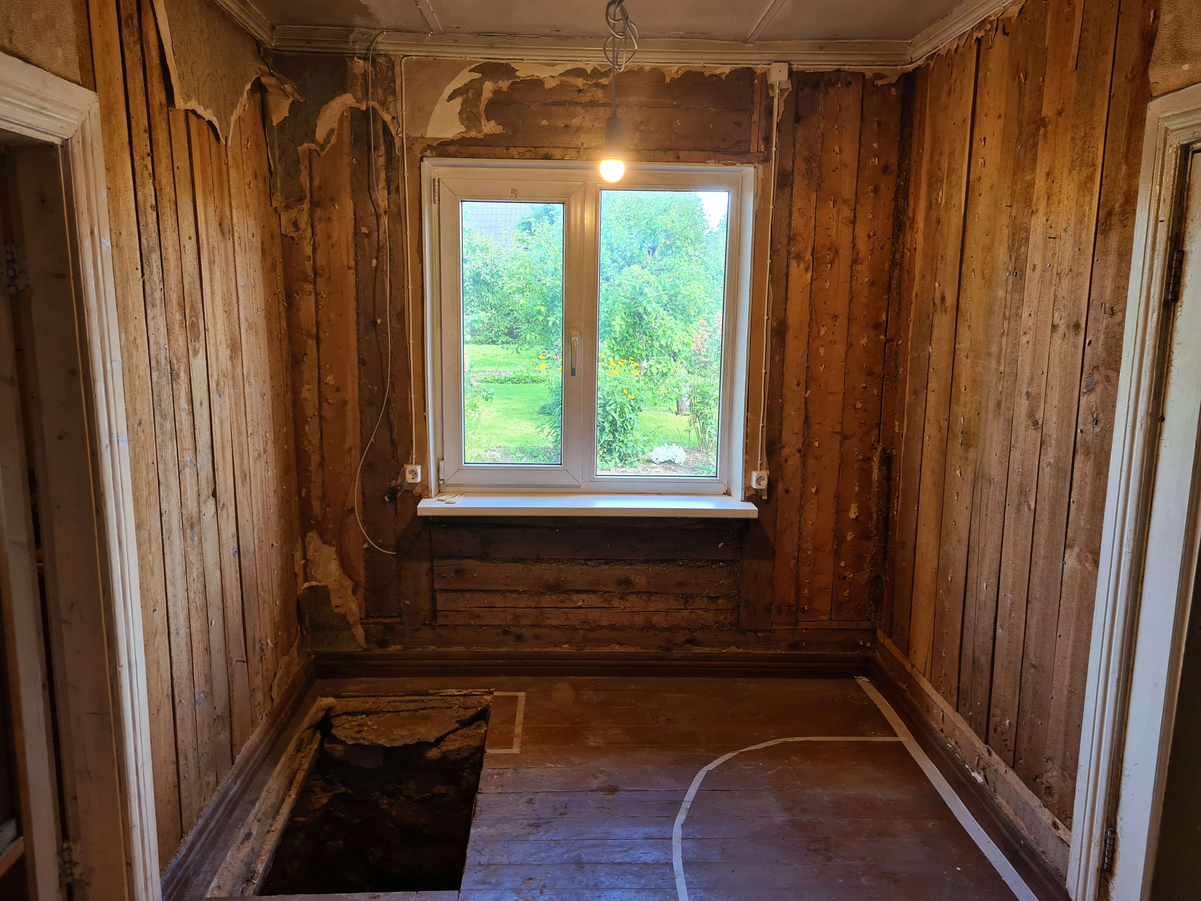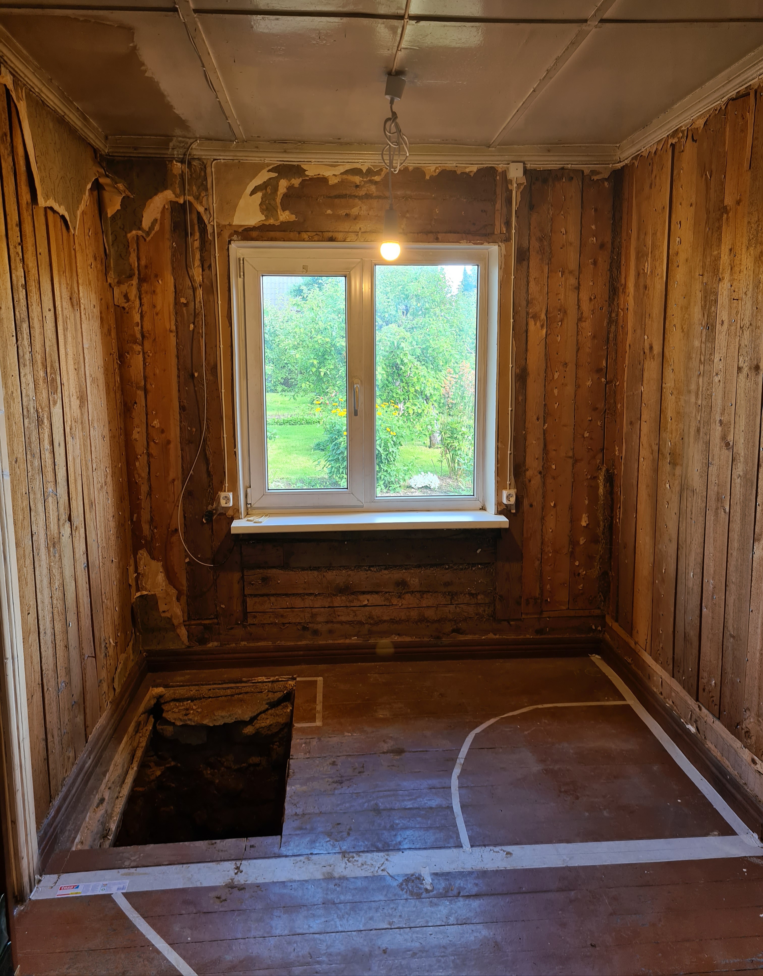 1. PÕRAND: Kuna olemasolevad põranda talad on pehkinud, siis tuleks olemasolevad põrandalauad üles võtta ja tekitada uus kandev põrand vannitoa tarvis, mis ei kahjustaks ülejäänud maja põrandakonstruktsioone. Soovime, et vannitoa põrand saaks olema põrandaküttega + plaatimine. Kogu ruum tuleks katta hüdroisolatsiooniga.