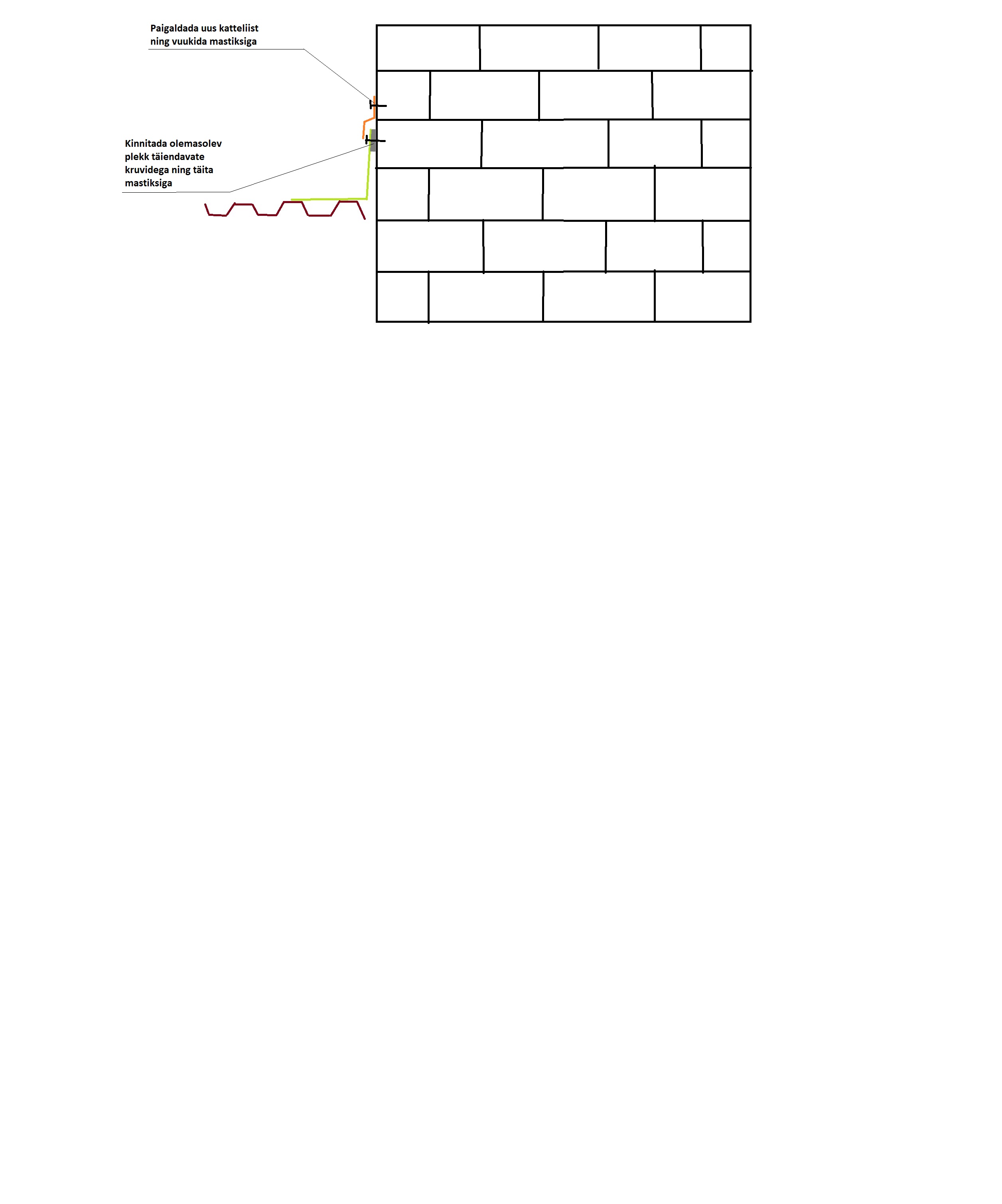 Korstna pleki ülespöörde plekk on kummis ühel küljel ja laseb vett vahelt läbi. Ilmselt sellepärast, kuna on päikesepoolne külg ning ajaga kõveraks läinud. Vajalik kinnitada täiendavate kruvidega ning täita mastiksiga korstna perimeetris. Ühele küljele paigaldada uus katteliist.