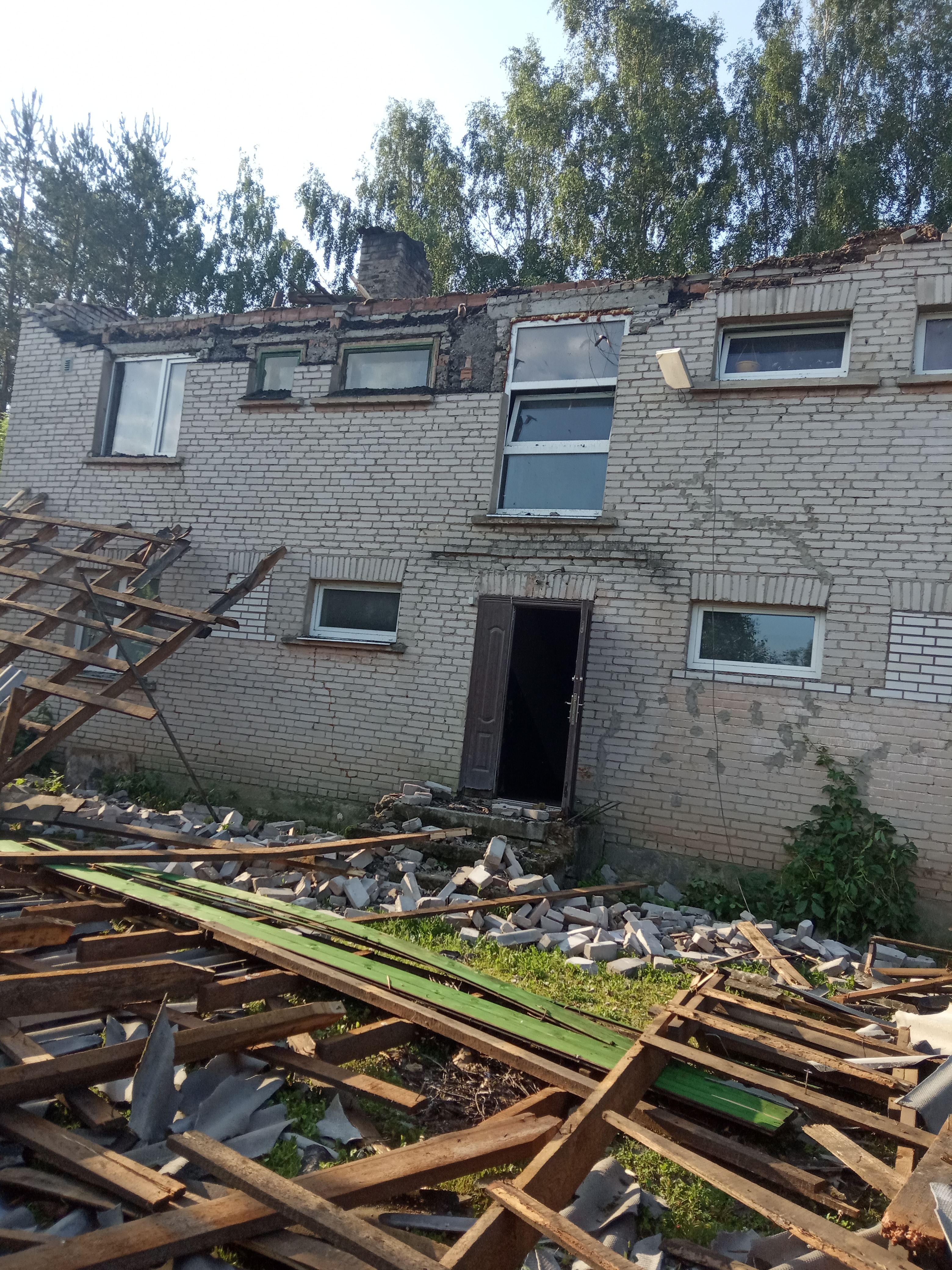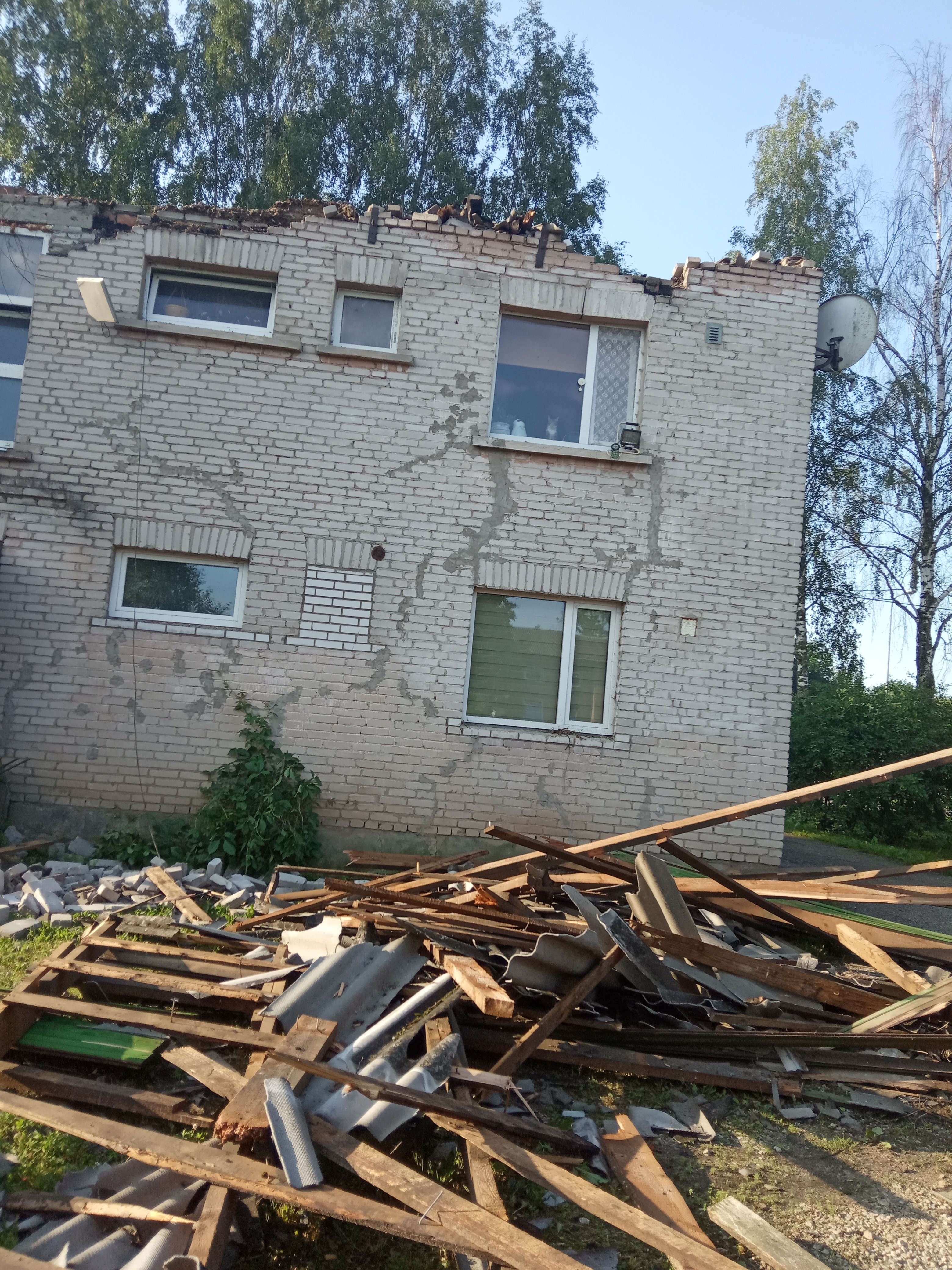 Keeristorm viis majalt katuse ja rikkus välisfasaadi.