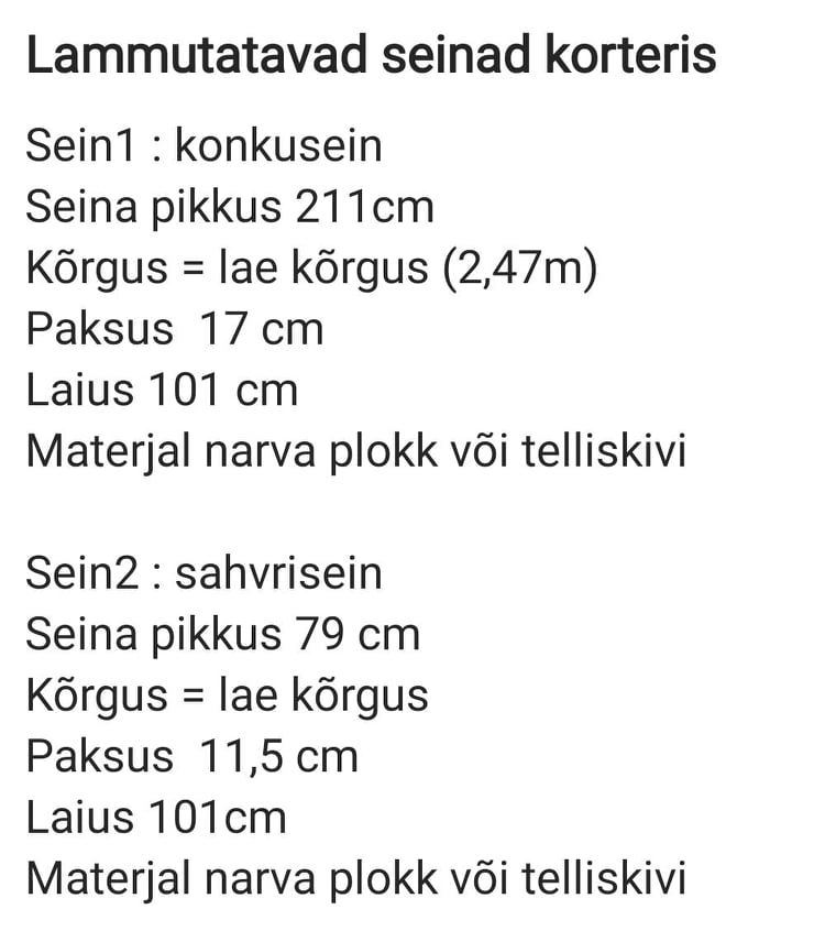Pakkumine Teie hankele, hind sisaldab seinte lammutamist ning utiliseerimist |