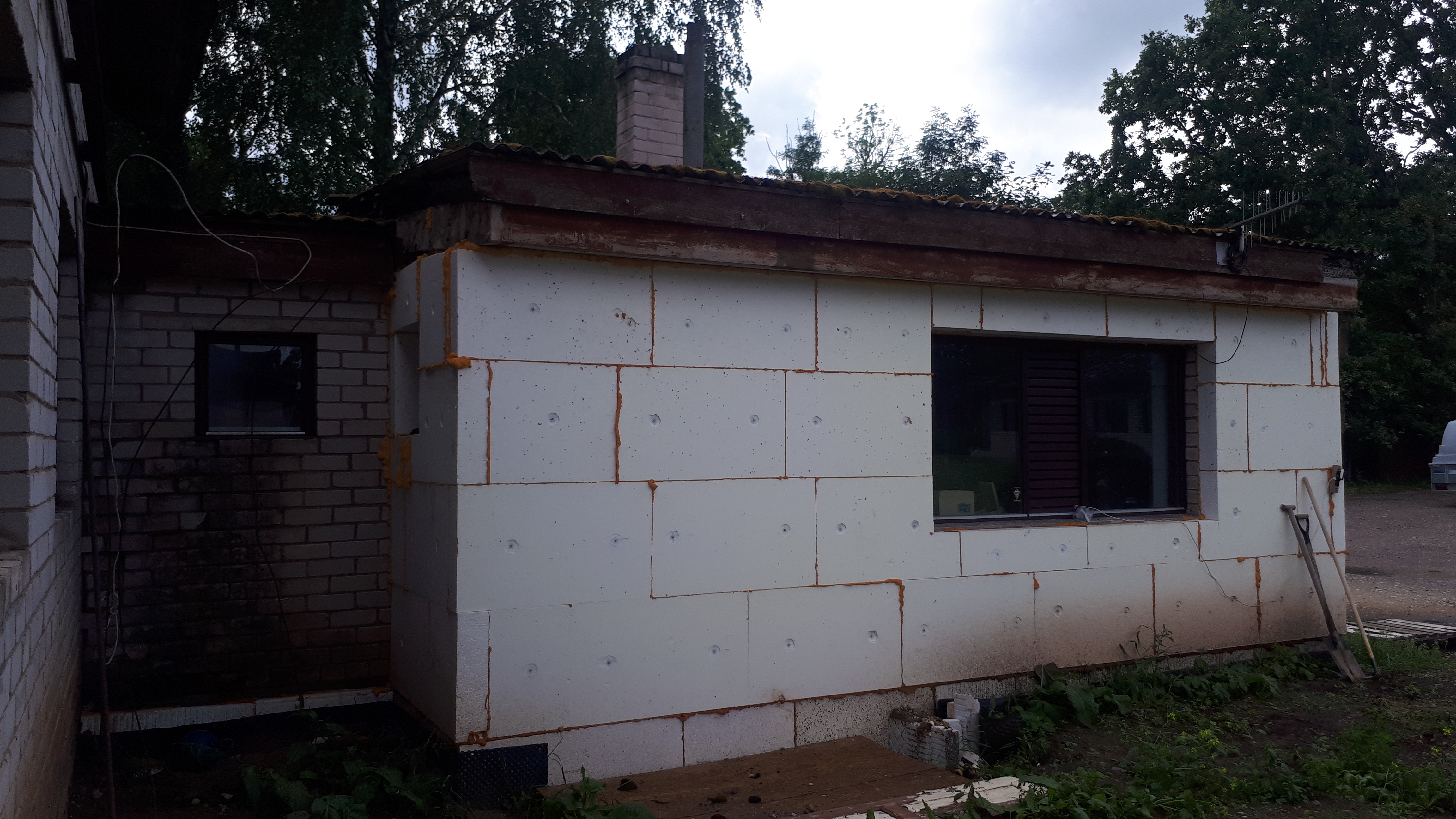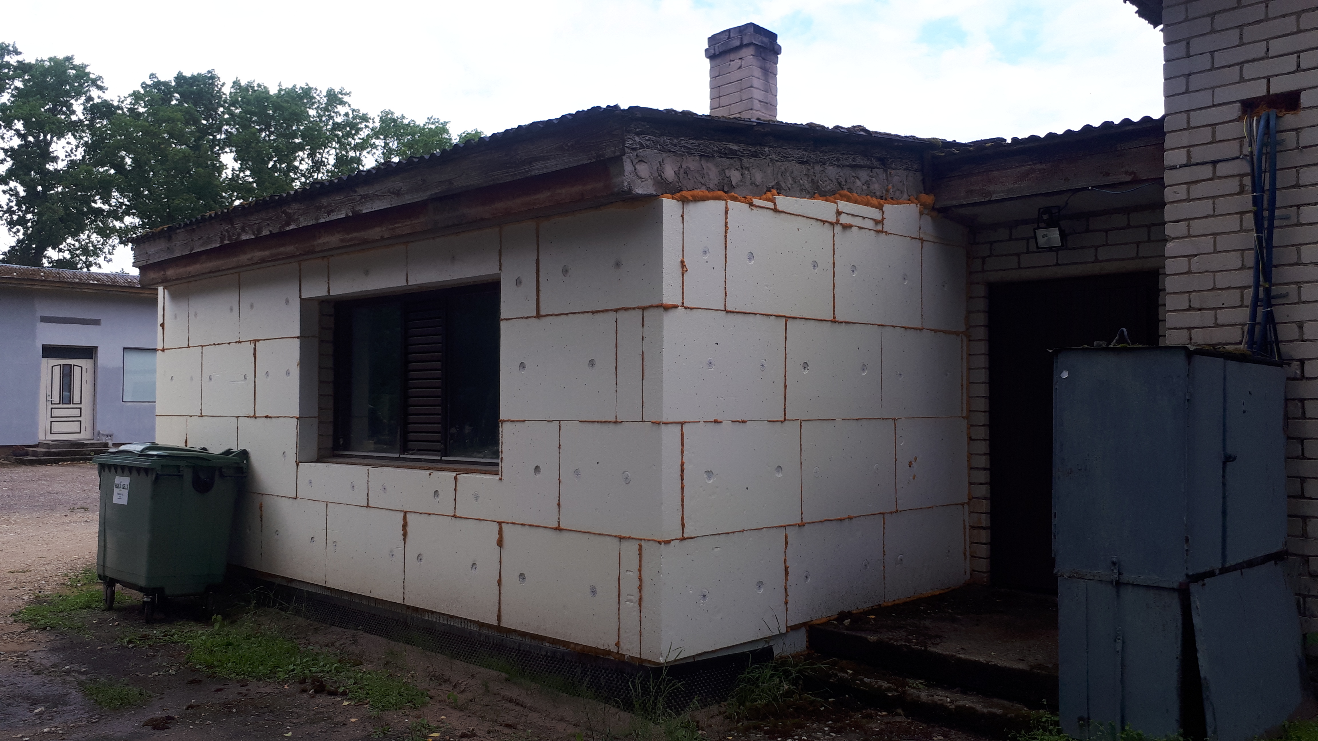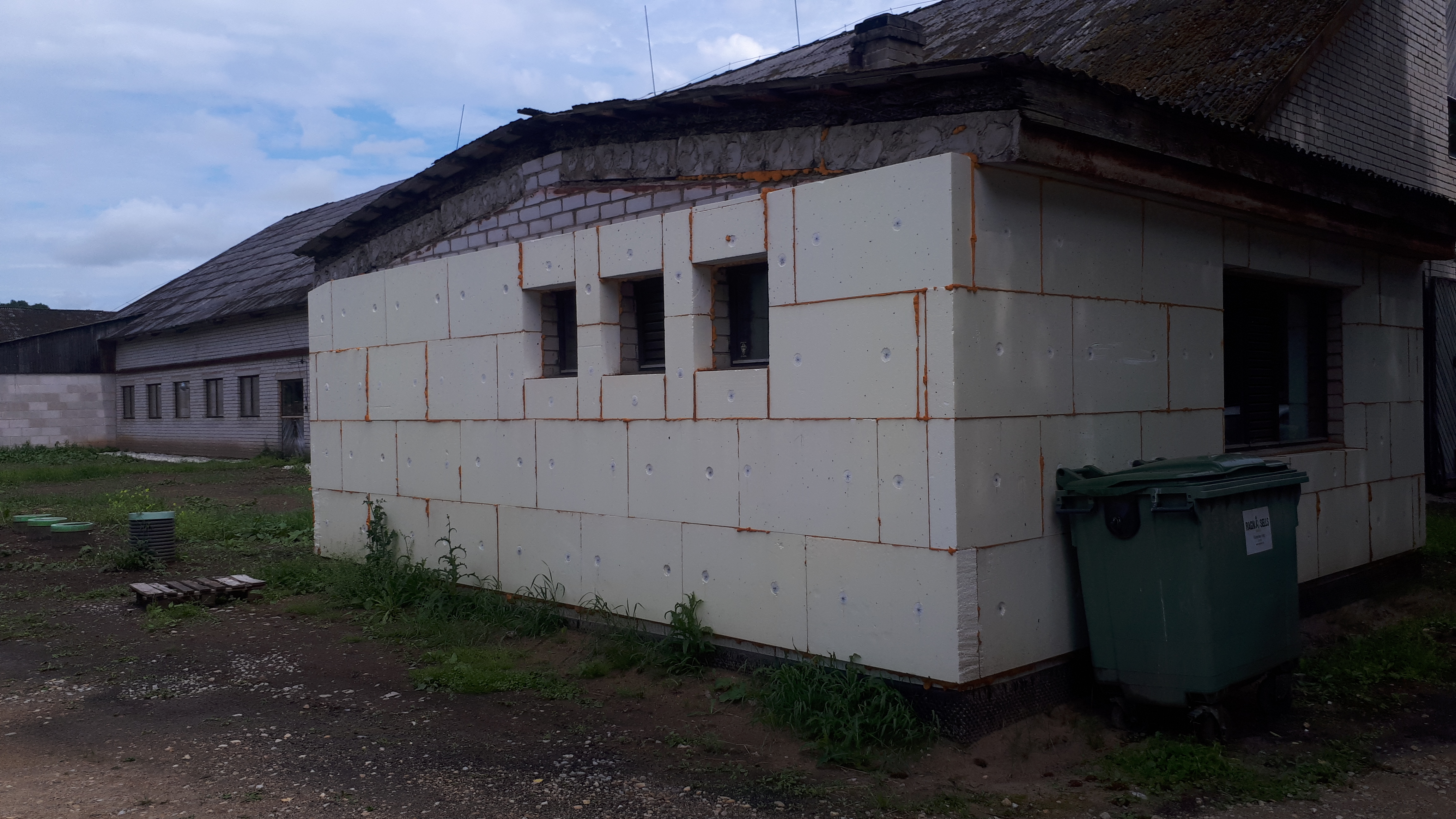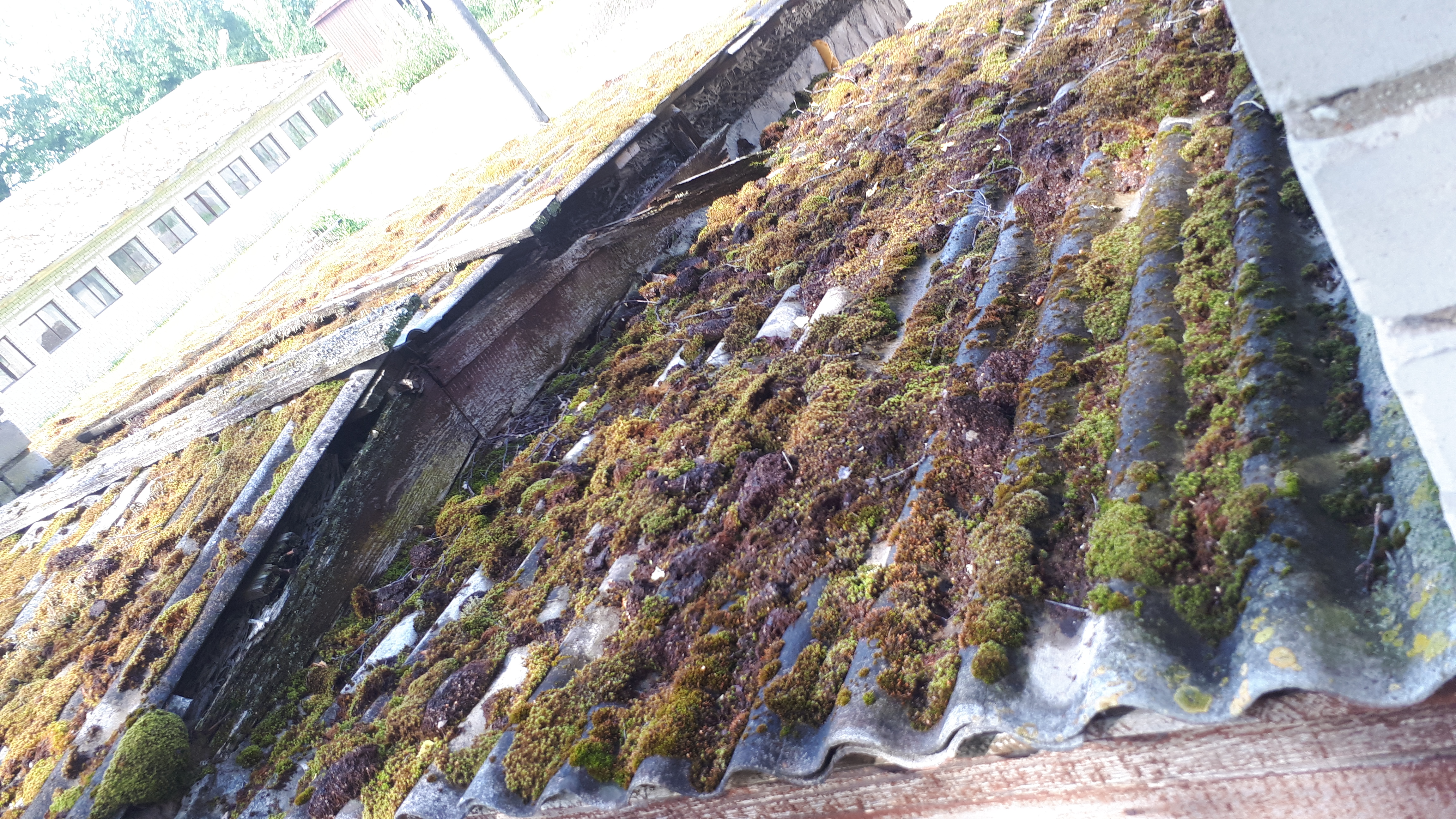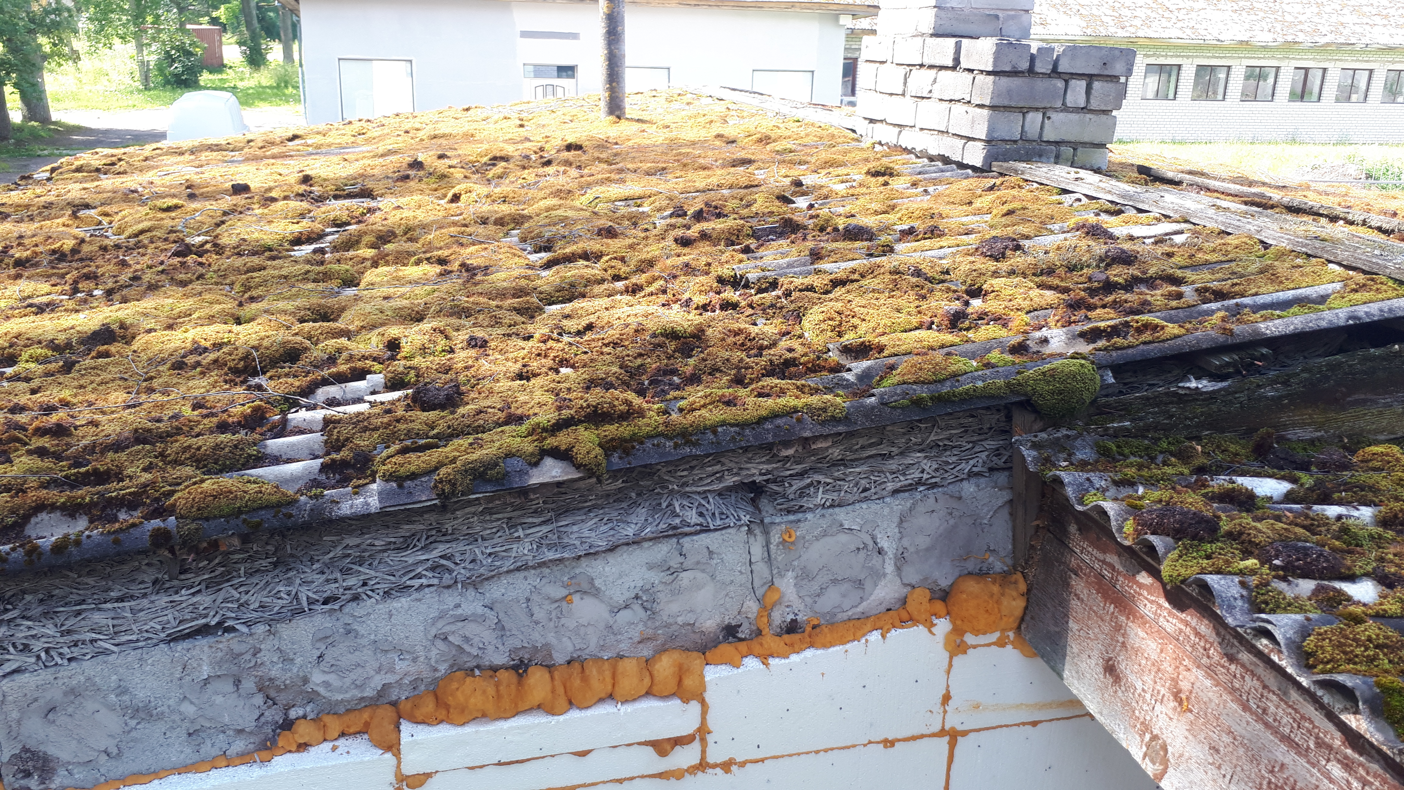 Tööd: vana katusekatte ja alusplaadi lammutamine (TEP-plaat ja eterniit), uue katusekatte paigaldamine (topeltroovituse peale eterniit).