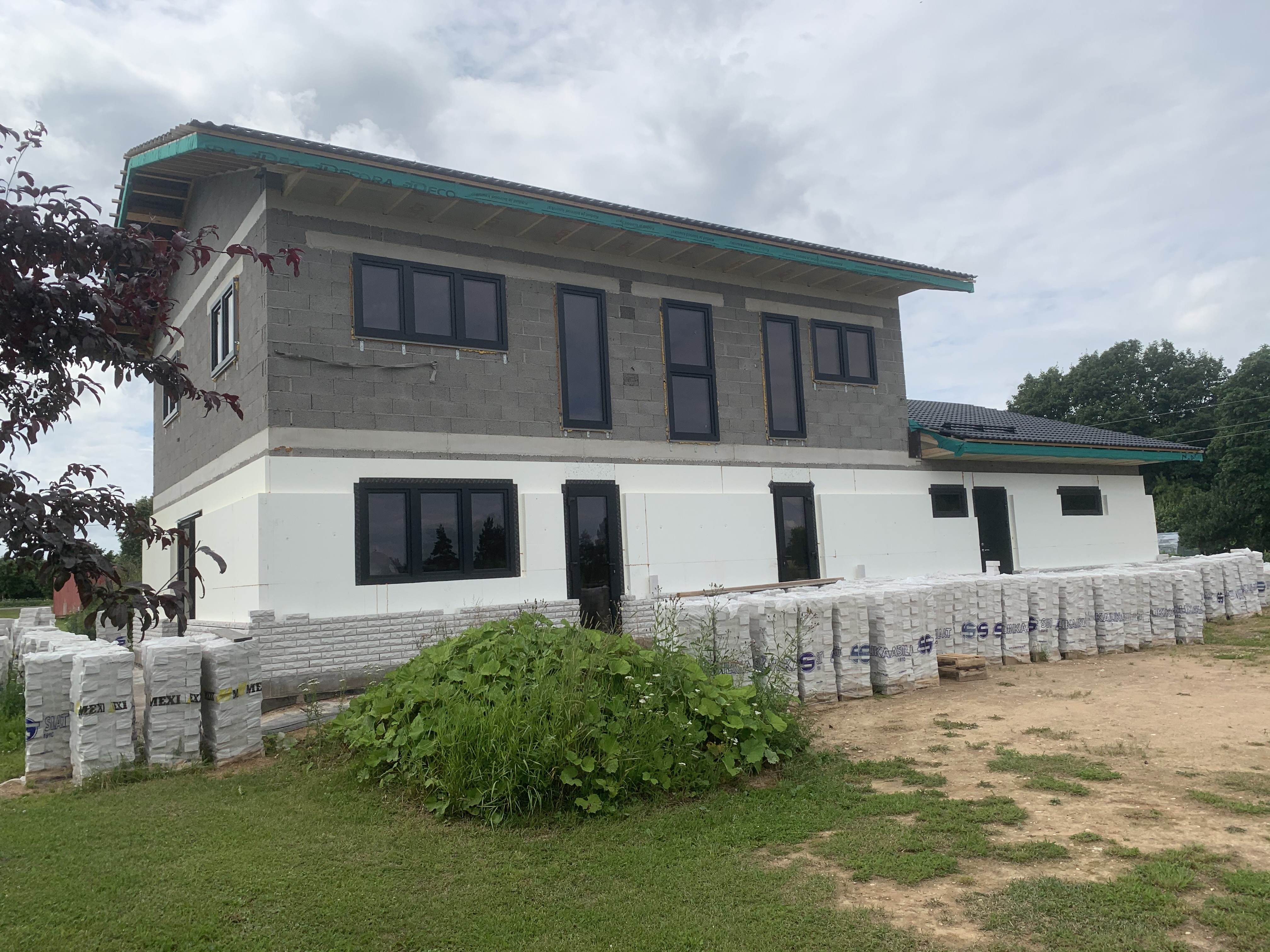 Silikaat klombitud kivi (puhas vuuk) ladumine kahekordsel eramul. Pinda ca 230m2.
