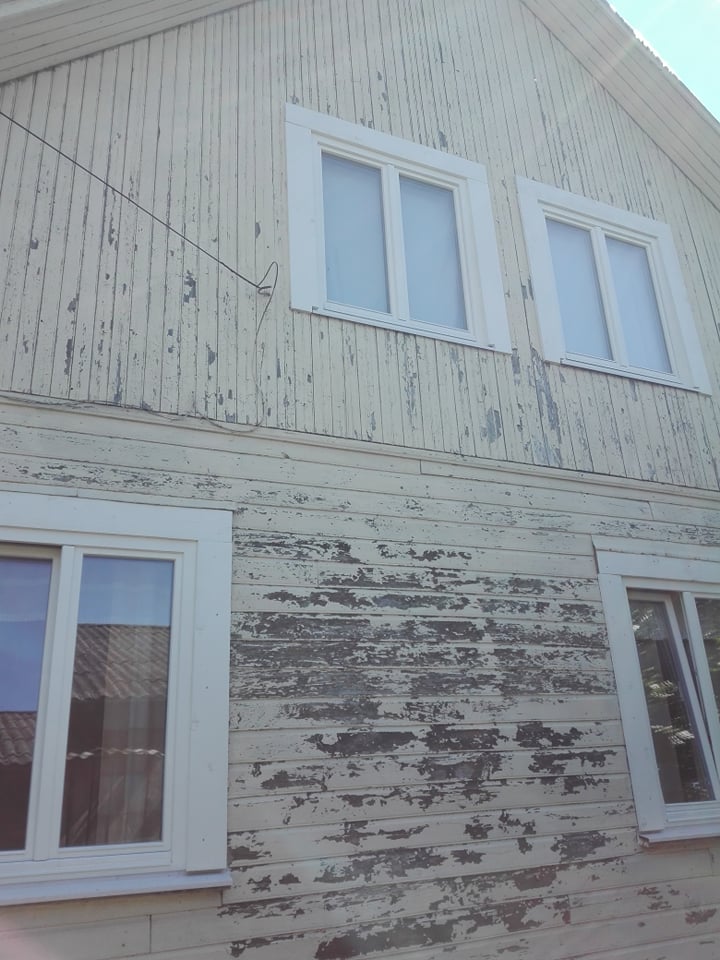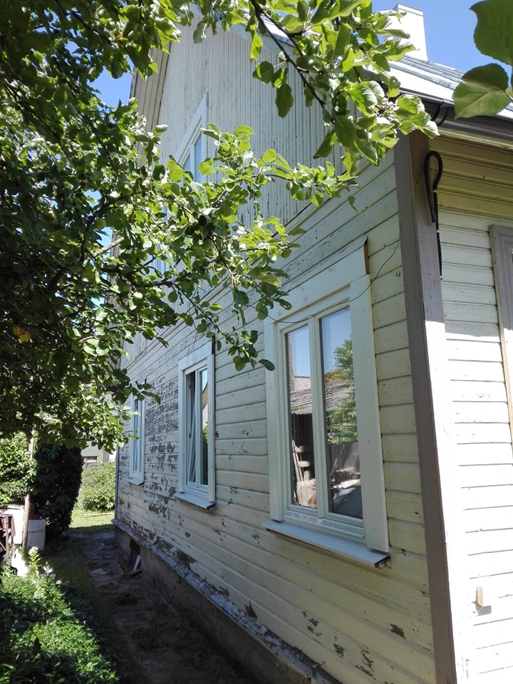 - maja ühel otsaseinal lahtise vana värvi eemaldamine ja otsaseina värvimine (maja kõrgus on 8,5 m, voodri kõrgus räästani 3 m, laius 10m).