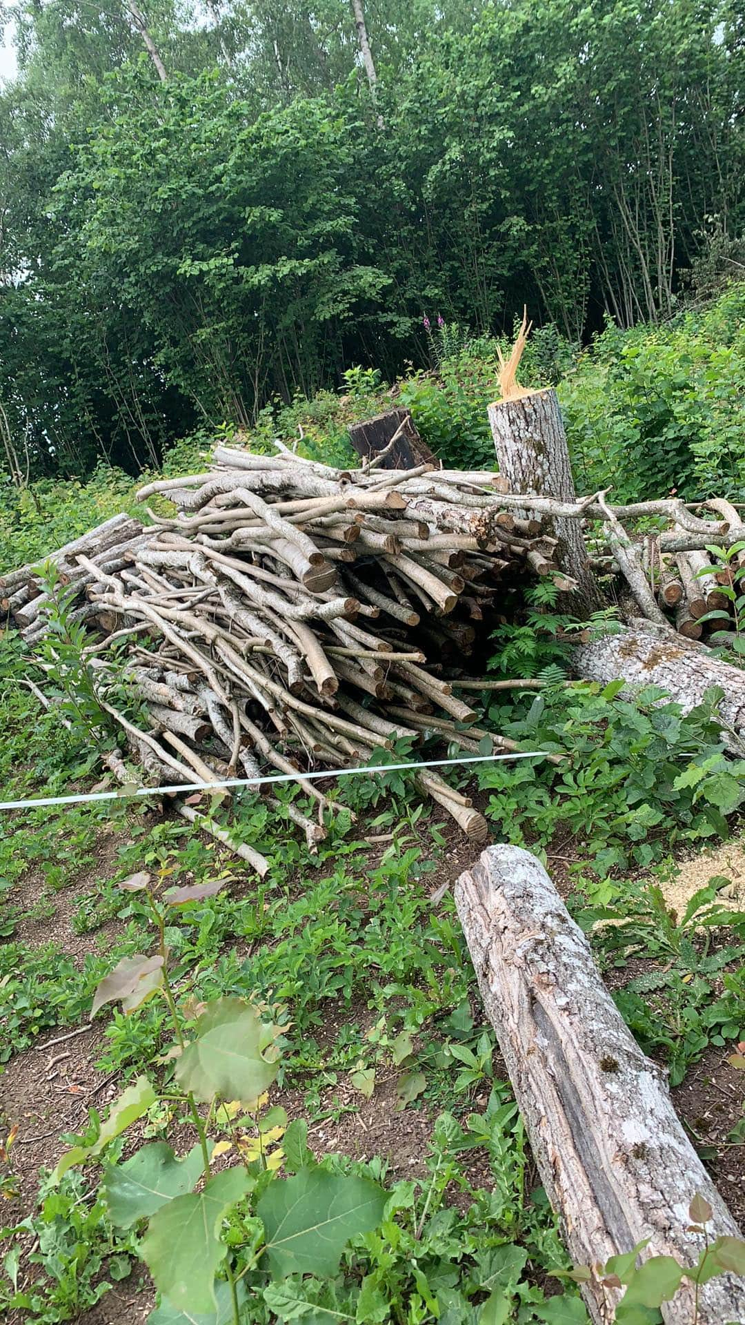 Vaja vabaneda hunnikusse laotud peenetest puudest (oksi küljes pole) ja värskelt maha saetud võsast. Ruumilst kogust on raske öelda aga kokku on umbes 8 hunnikut peeneid puid (nagu pildil) ja 8 võsahunnikut (nagu pildil). Materjali hulgast sobib kindlasti ka mingi osa küttepuudeks. Saab ligi ka suure autoga.