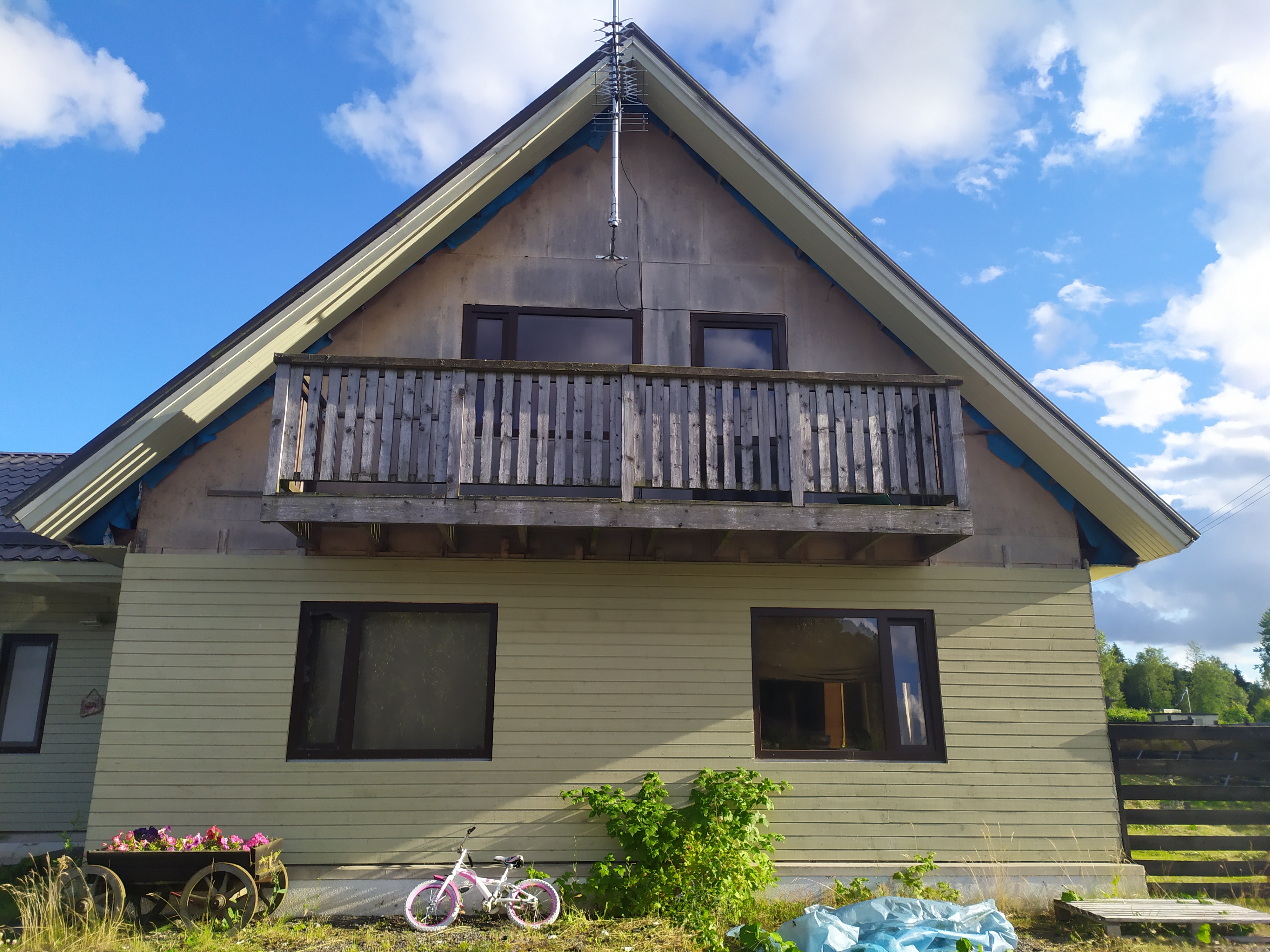 Vajalik mõlemale maja poole paigaldada fassaadi laudis. Teisele korrusele, esimene korrus tehtud. Osaliselt paigaldada ka tuuletõkke lauad.