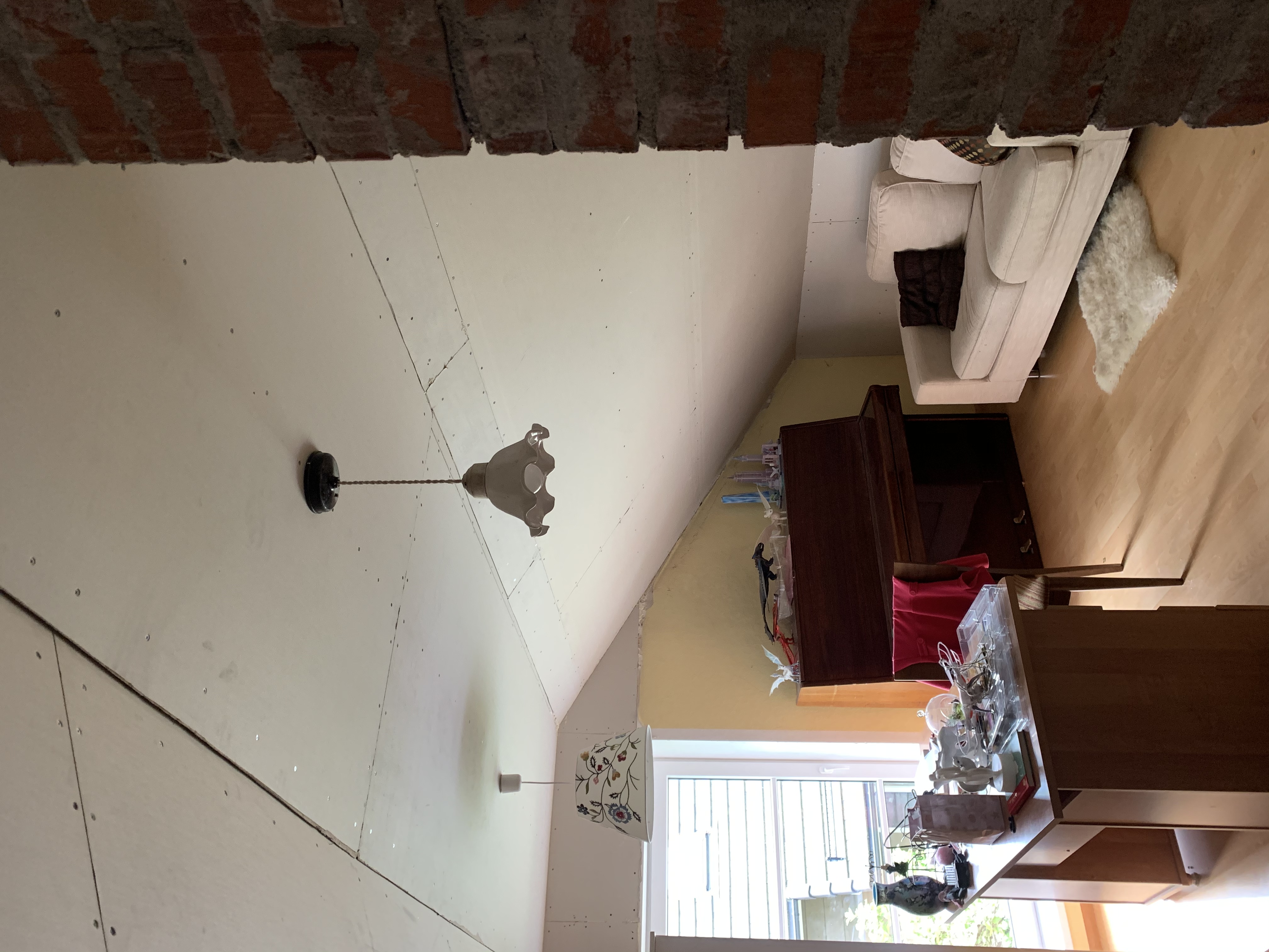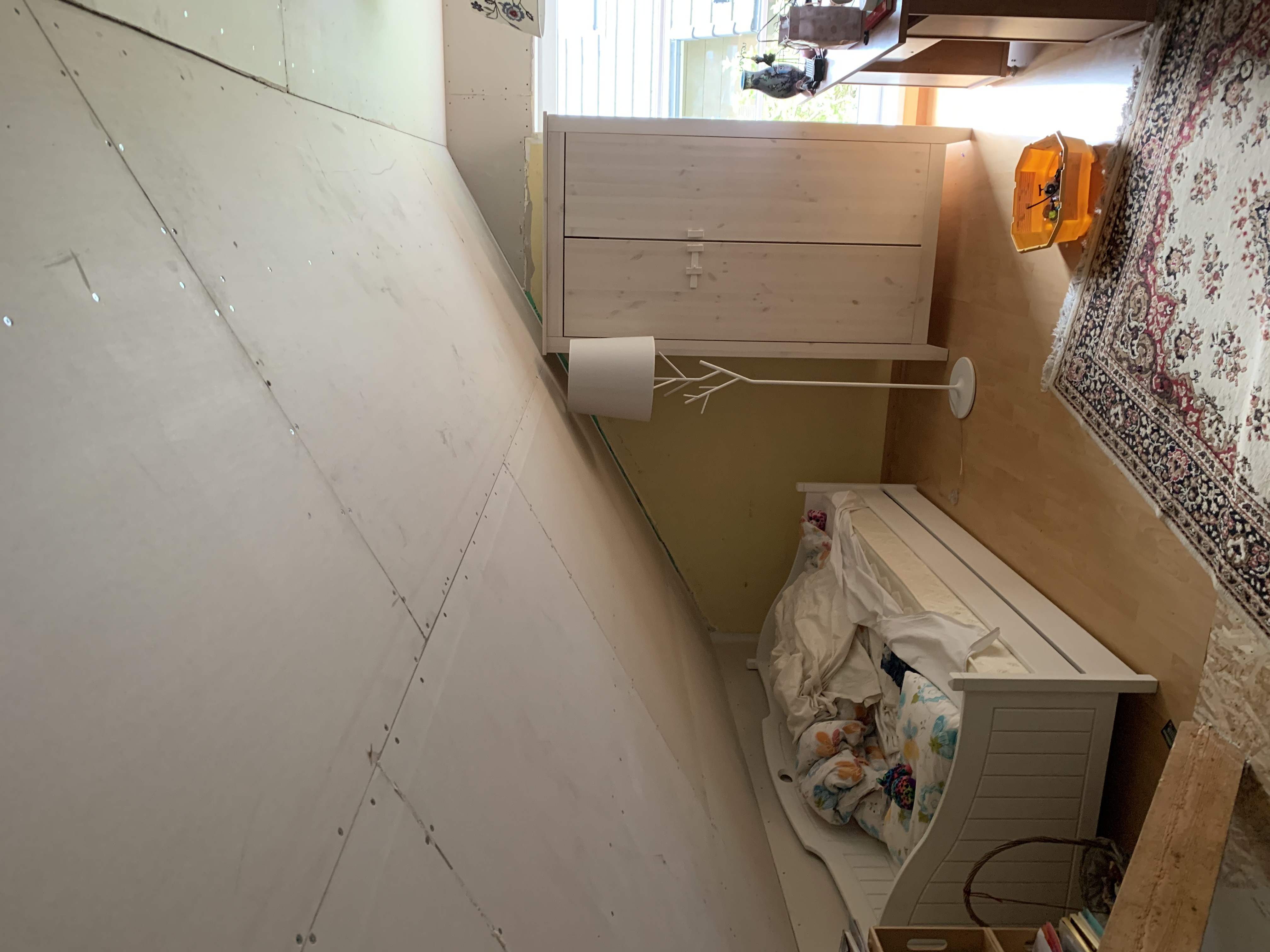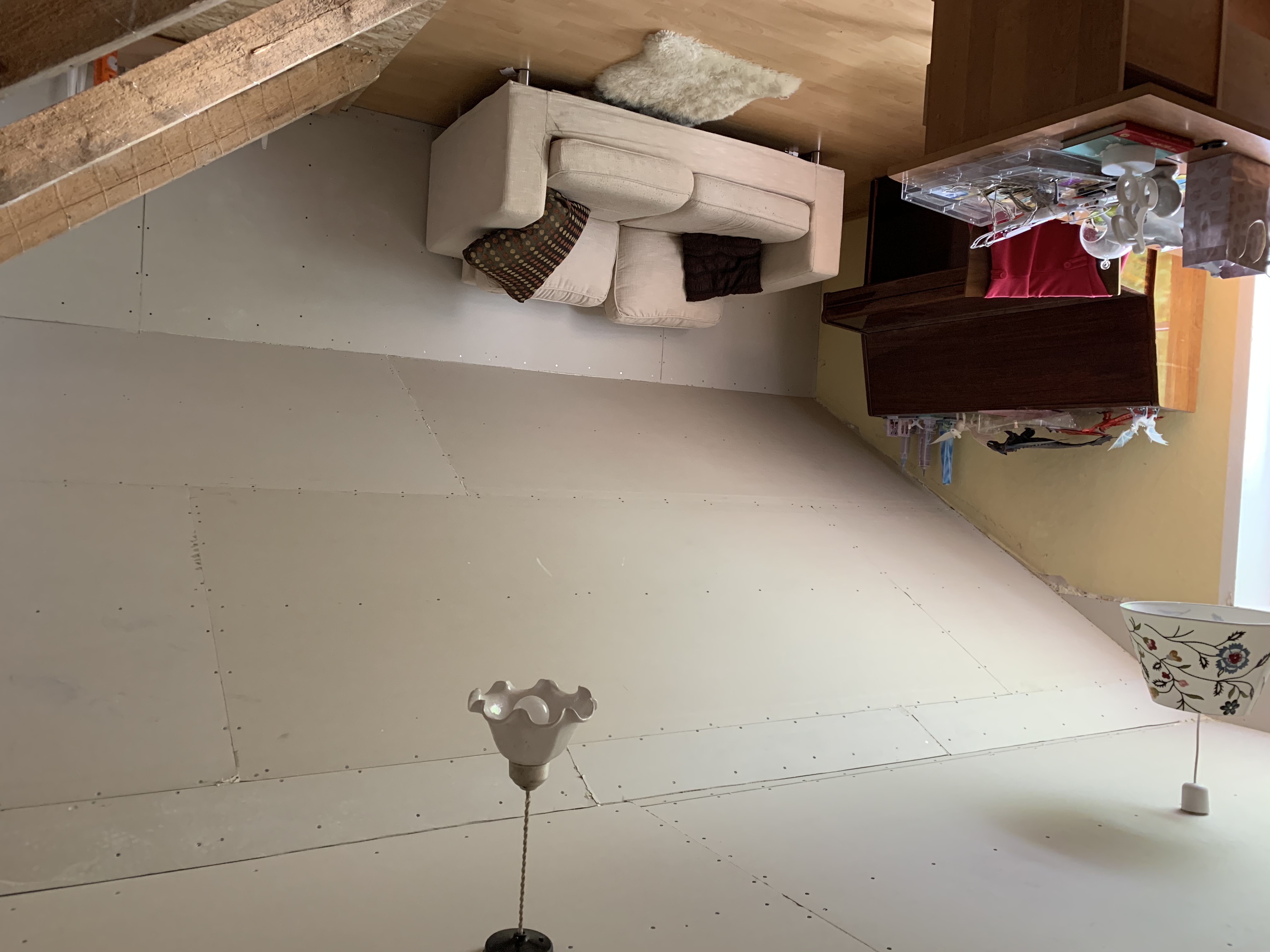 Maalritööd: 2x pahteldus ja 2x värv kipspindadel. 32 ruutmeetrit kipspinda teisel korrusel ühes toas (kaldseinad ja lagi); lisaks 30 m2 kipslage elutoas.