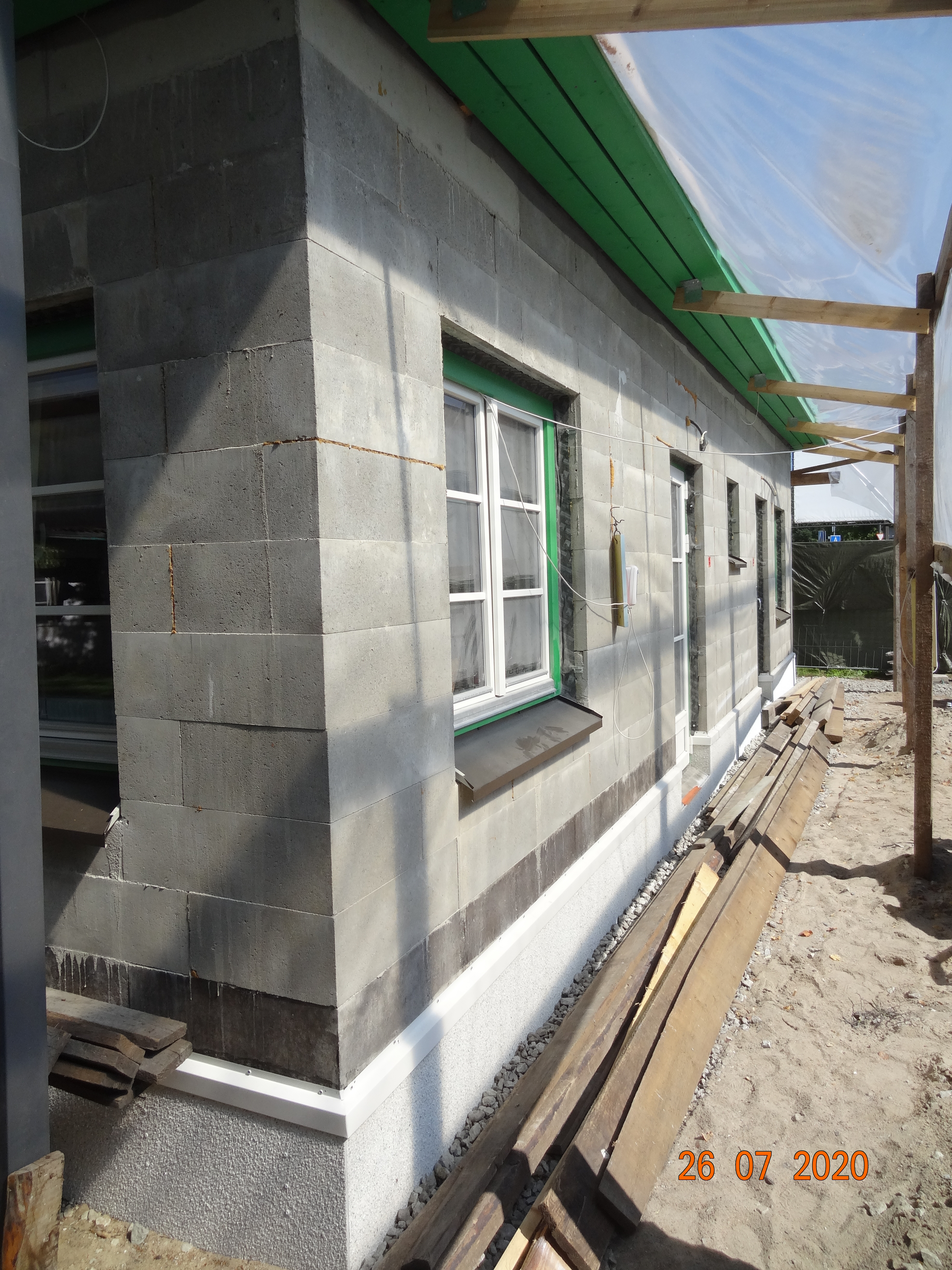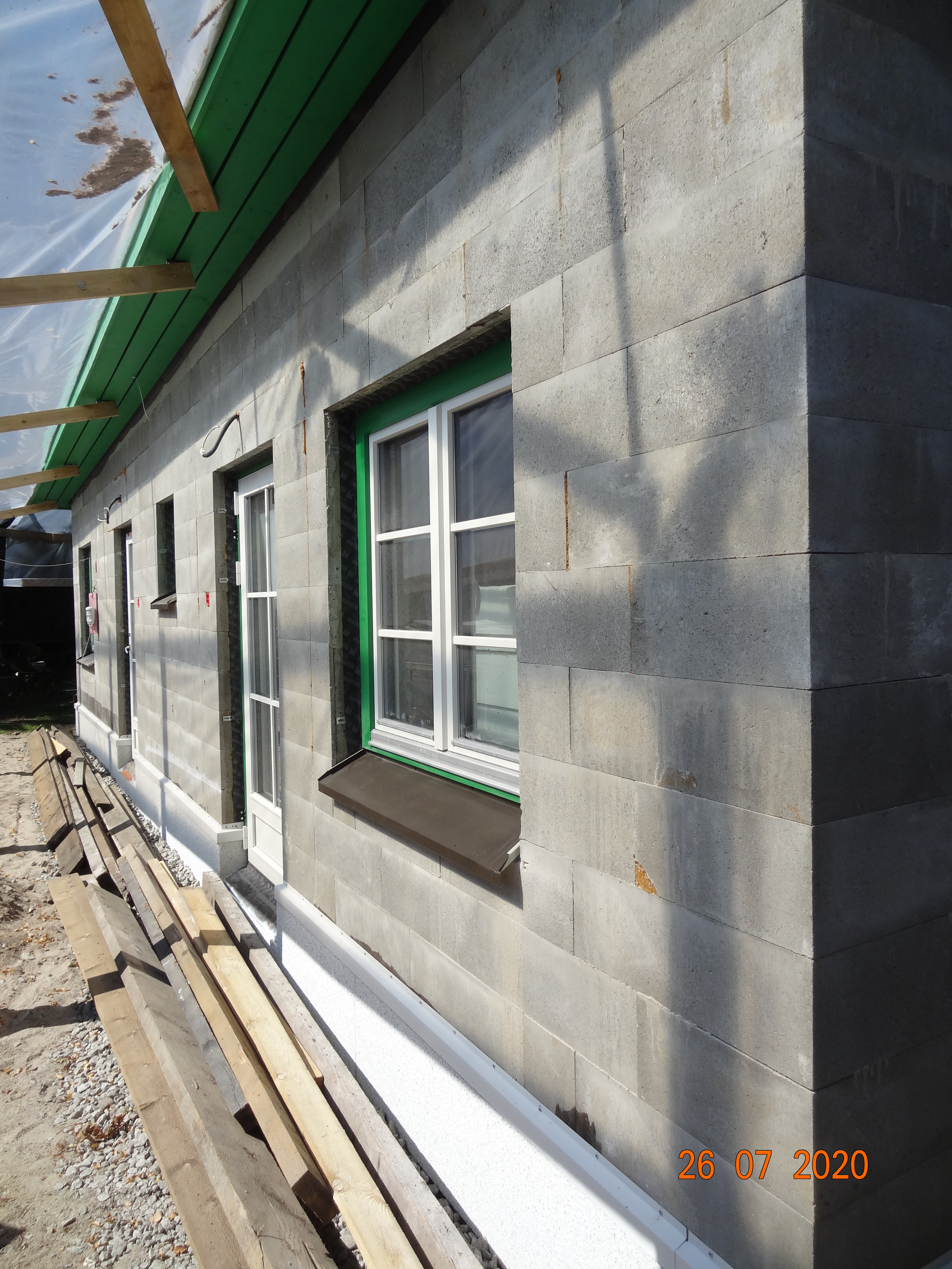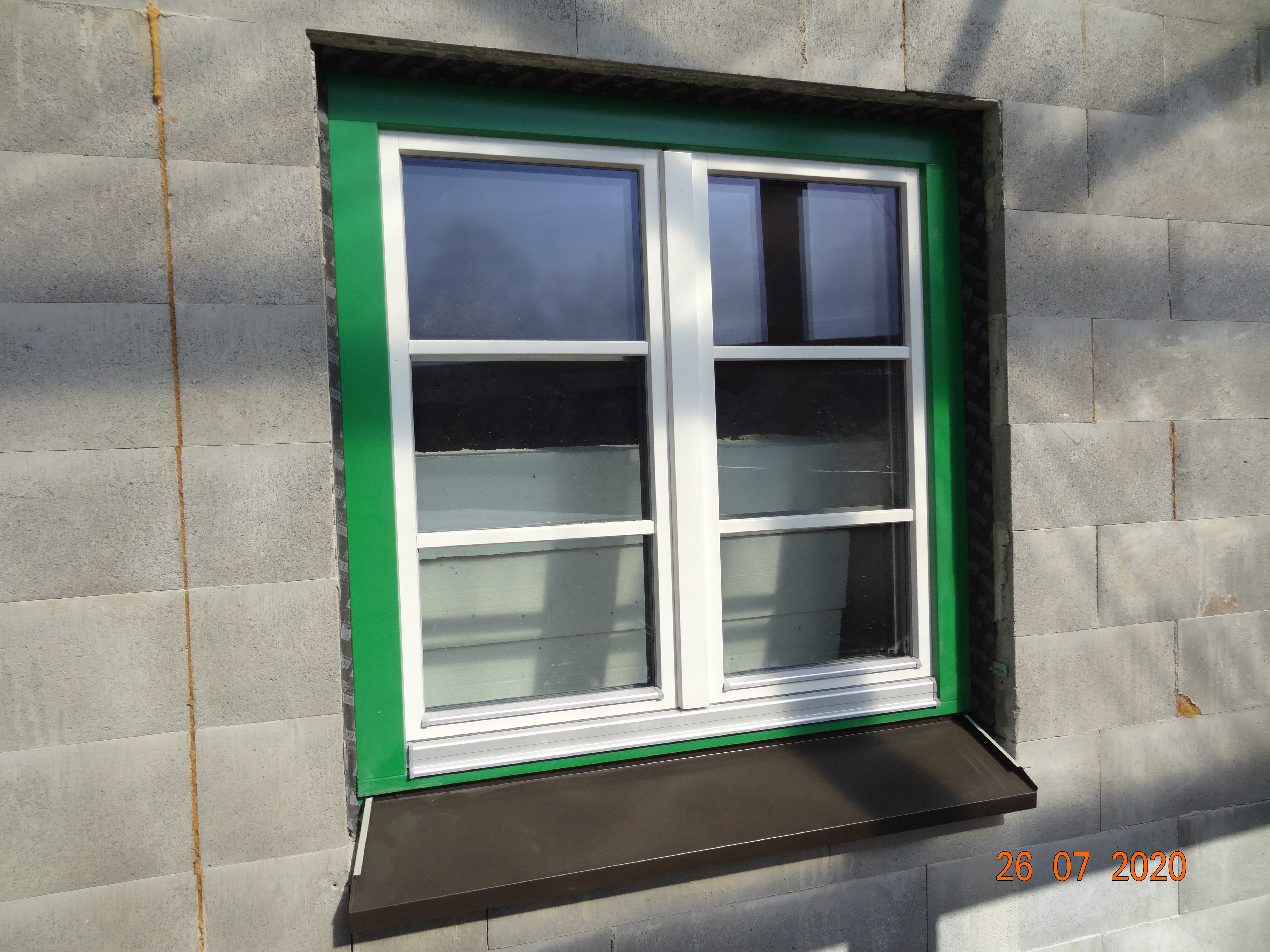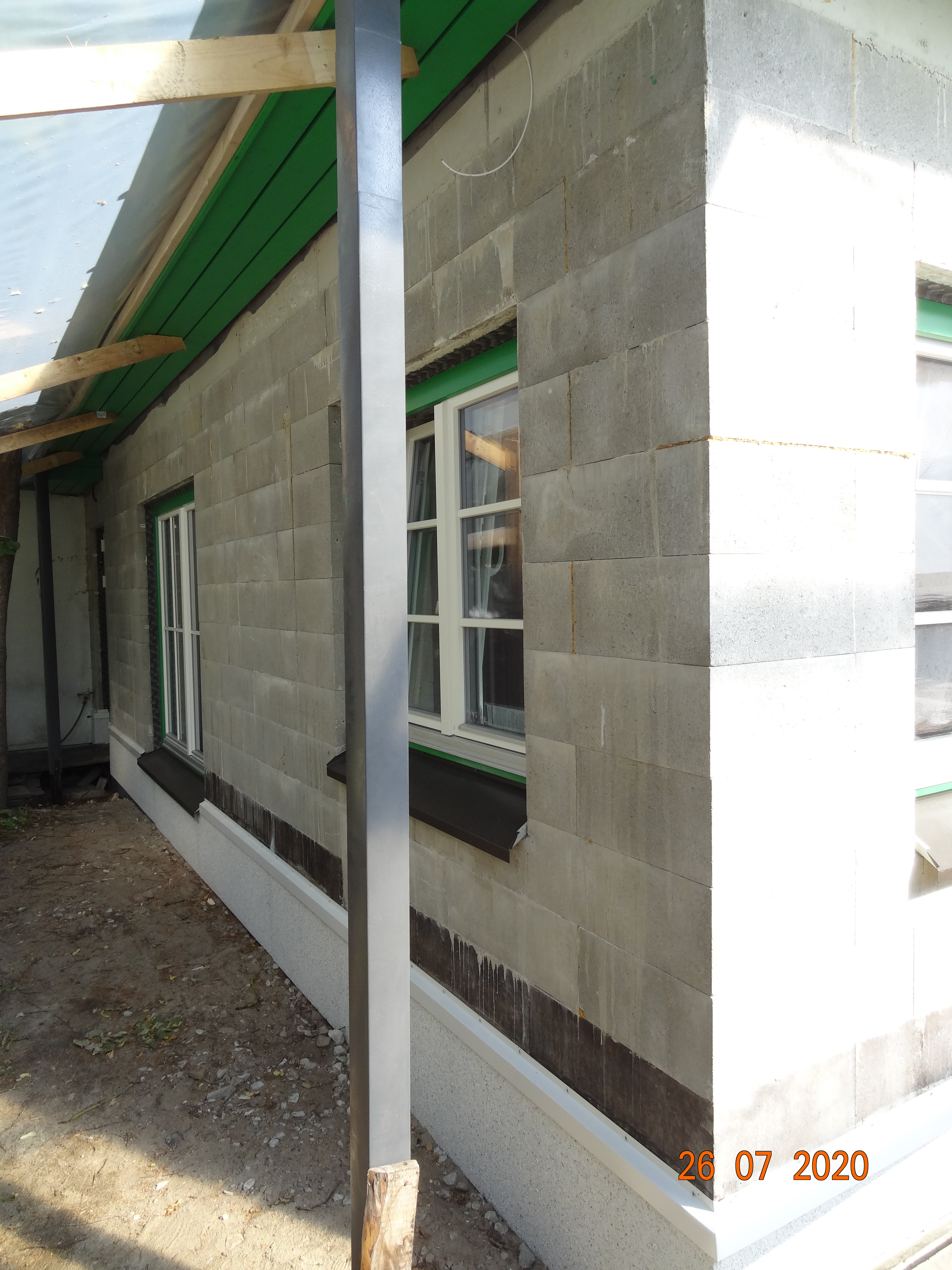Akna, uksepaled krohvitakse kaldu, sokli osas krohvi pind tasa soklipleki välisäärega. Paigaldatakse ka krohvivõrk kogu pinnas.