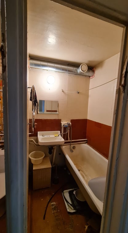 Sõle tänaval korteri vannituba. Tehtavad tööd: Vaheseina(plaat), uste, wc-poti, vanni, käteräti radiaatori eemaldamine. Uute seinte ehitamine( väiksed seinajupid)Seinte ja põrandate aluspindade ettevalmistamine plaatimiseks, Seinte ja põranda plaatimine, lakke kipsplaat ja selle viimistlemine, sinna koht-valgustite paigaldamine, elektri kaablite vedamine(lülitite ja pistikute paigaldamine) Vajadusel ventilatsiooni ümber tegemine. Ukse, dushinurga, wc-poti, segistise paigaldamine. Kõik torutööd mis kaasnevad vannitoa renoveerimisega.Vannitoa mõõdud on 2300x2400 , H- 2350