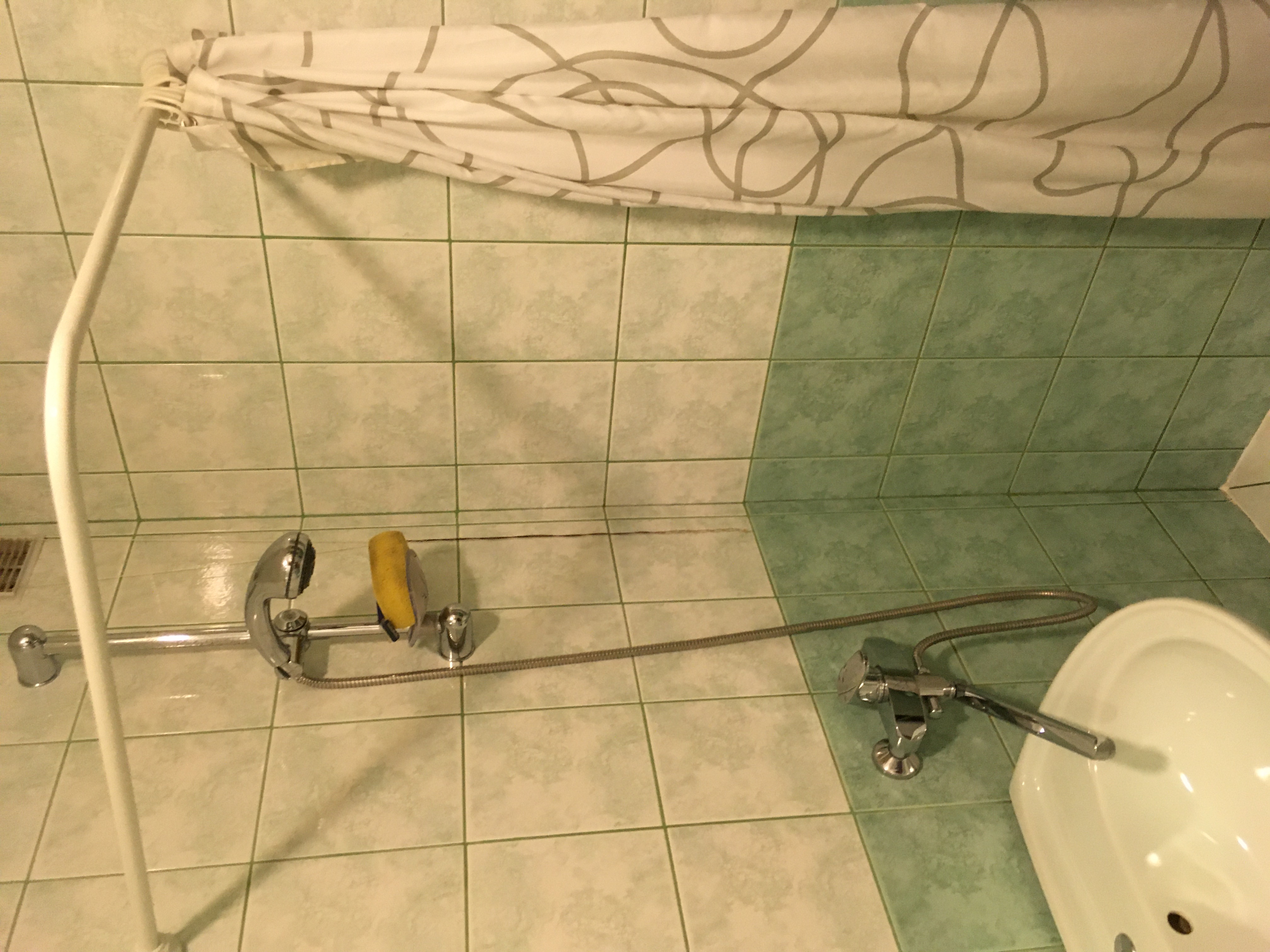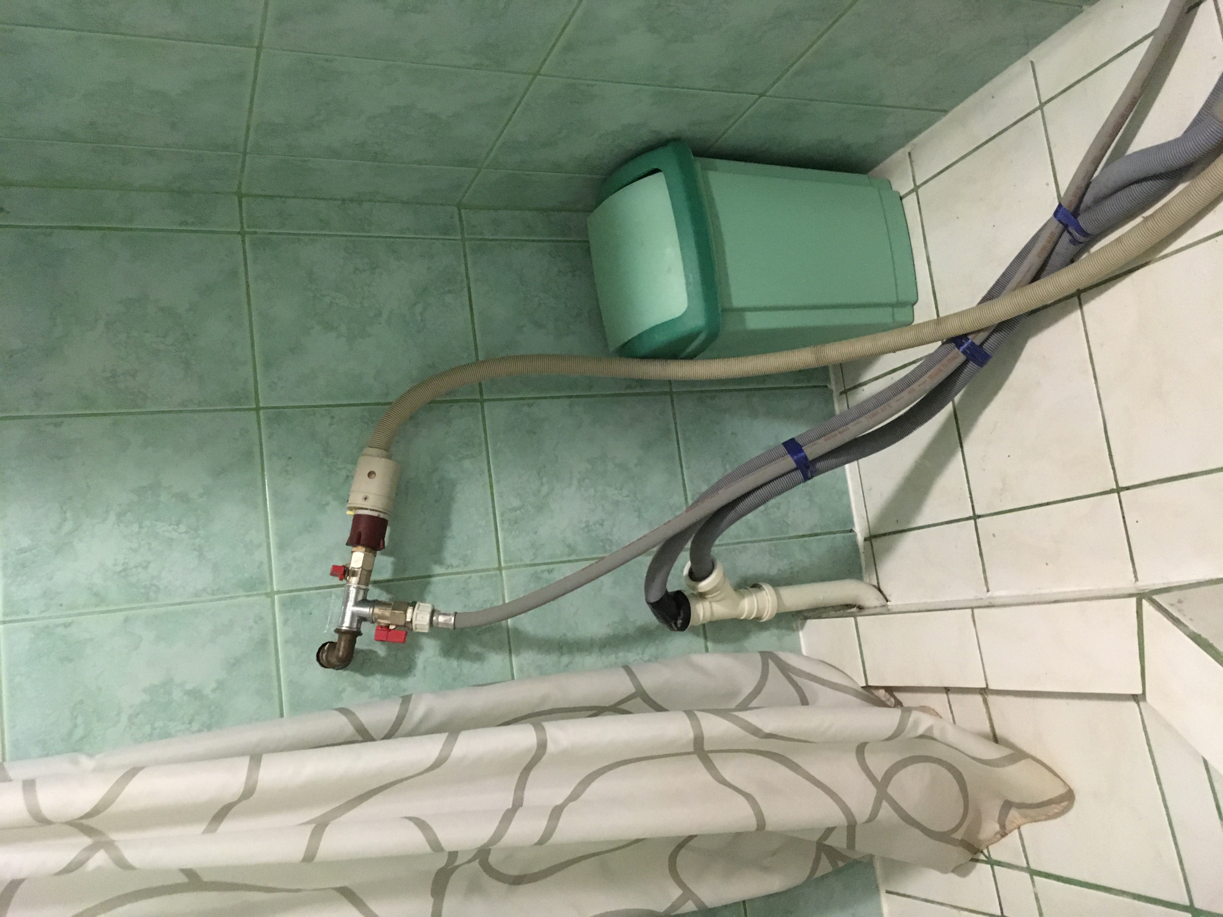 Vannitoa remont paneelmajas Sauel. WC ja vannituba on kokku ehitatud, seintel ja põrandal on keraamilised plaadid, sisseehitatud dušinurk, plastist ripplagi. Vuukide vahed kipuvad hallitama. Vannitoas on üksteise peal pesumasin ja kuivati, mille juhtmed jooksevad hetkel üle vannitoa. Samuti jooksevad lahtiselt ka pesumasina ja kuivati veetorud. Kuna pesumasin ja kuivati jäävad samasse kohta, siis oleks vaja võimalusel muuta elektripistikute ja vee äravoolu paigutust nii, et need oleks masinatele lähemal.