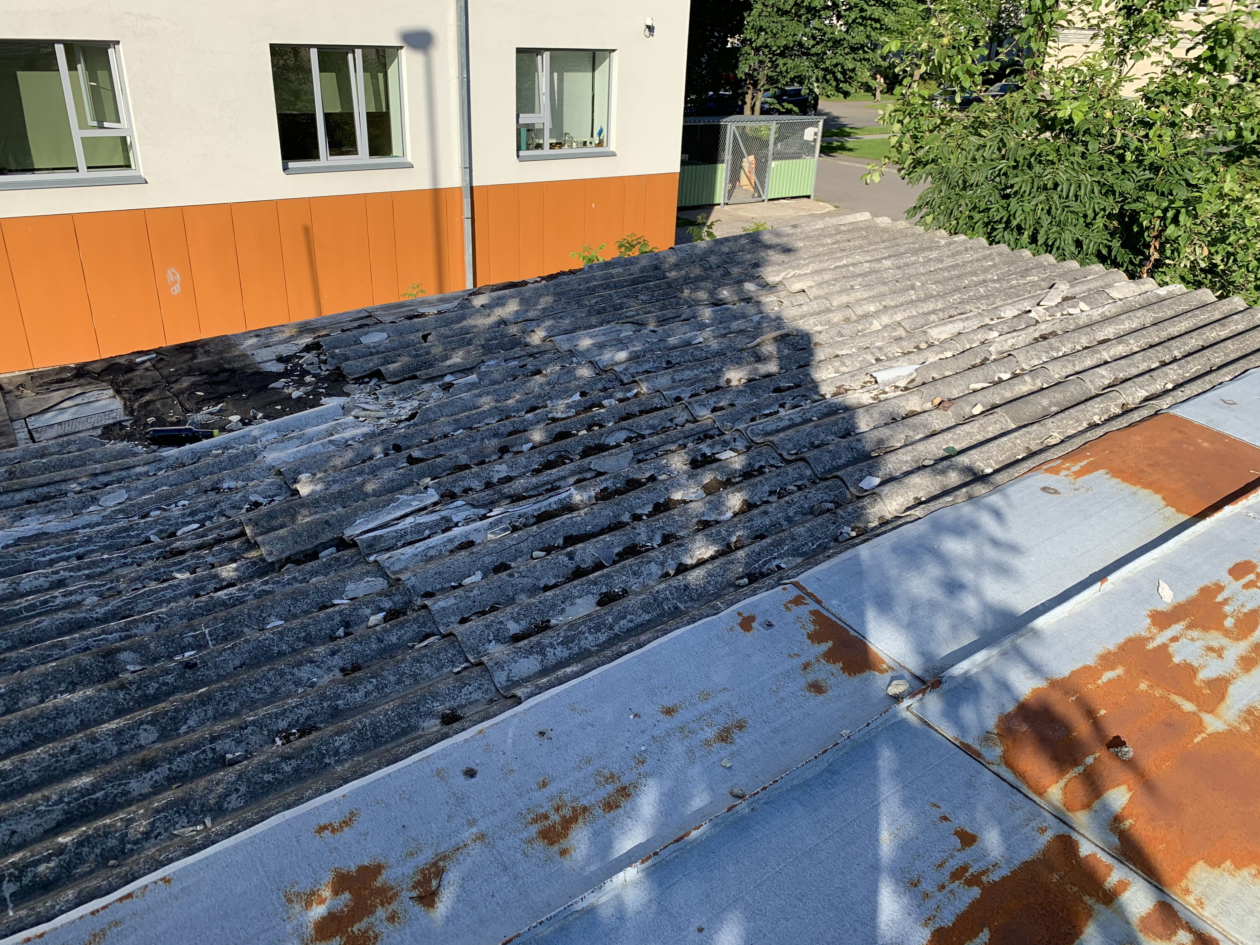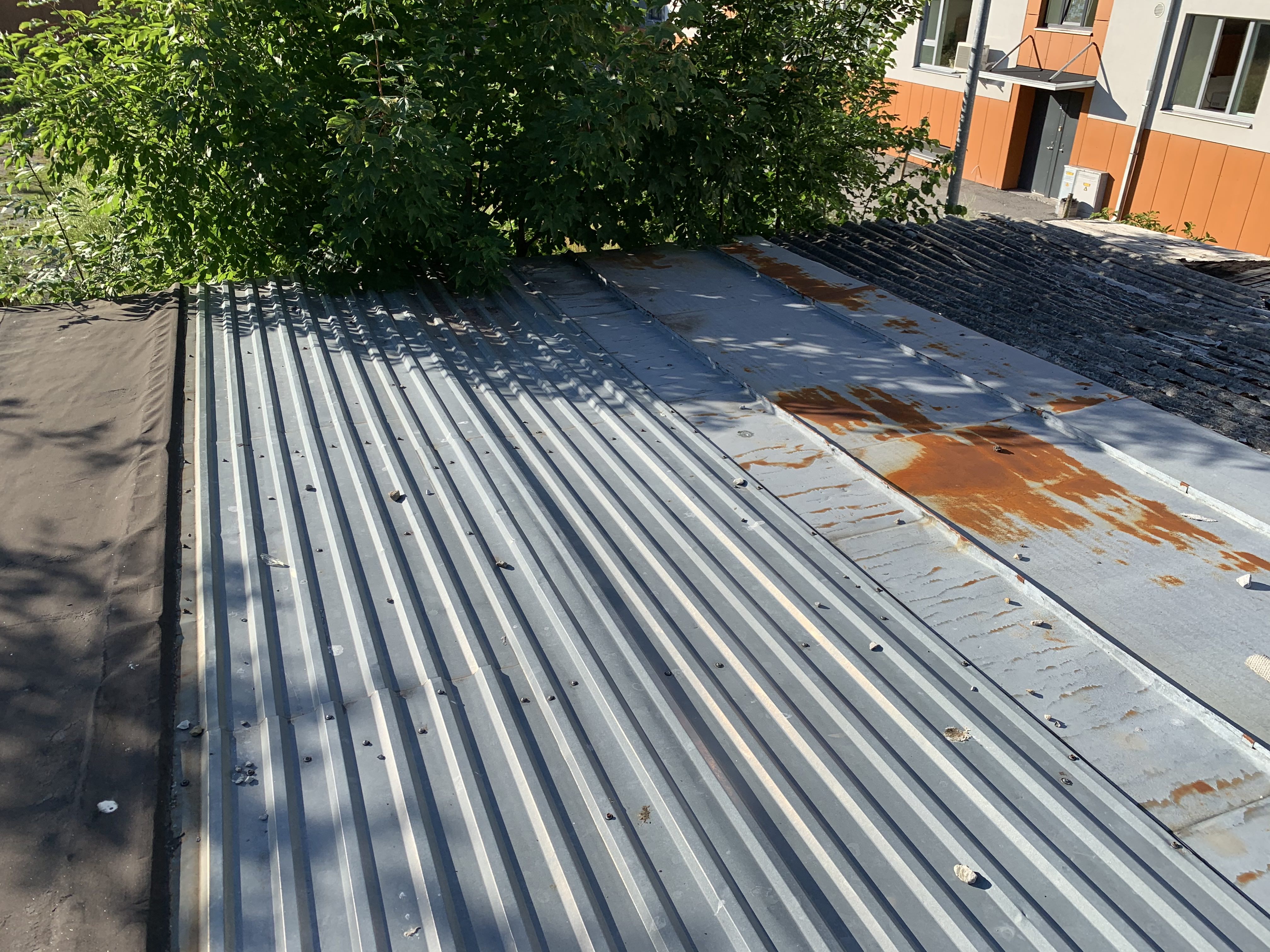 Kahe kõrvuti asuva garaažiboksi ühise katuse remont Tallinnas. 1) Parempoolse garaaži katuse puitkonstruktsioon tuleb osaliselt välja vahetada ning vana eterniitkatus eemaldada. Sinna tuleks paigaldada samasugune katuseplekk nagu on vasakpoolsel katusel. 2) Vasakpoolse katuse juures tuleks leida koht suurema sajuga mis vett läbi laseb ning see sulgeda.