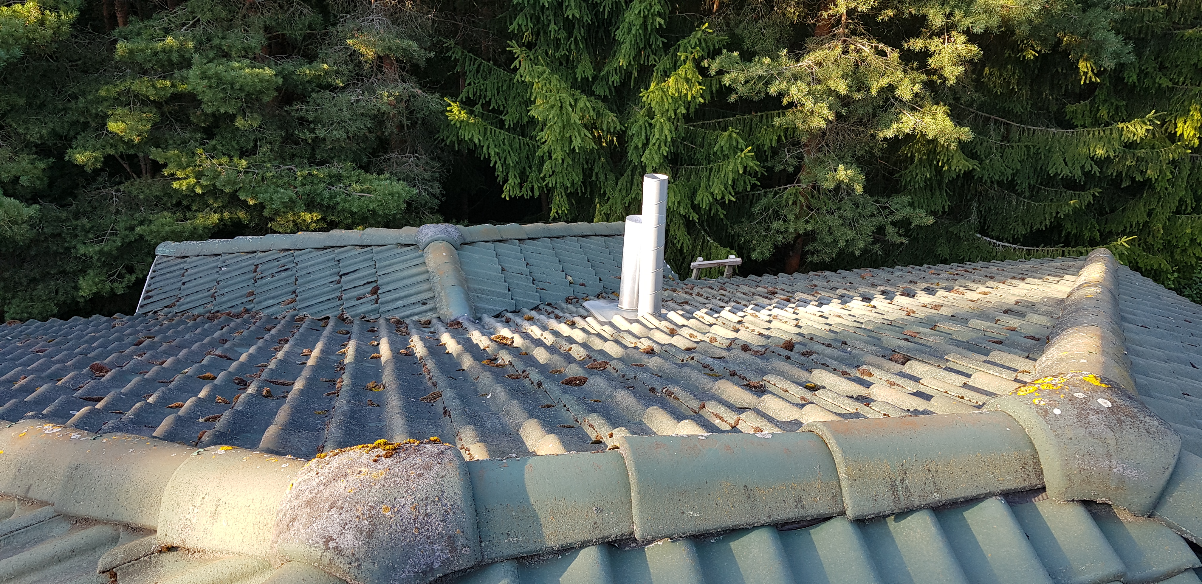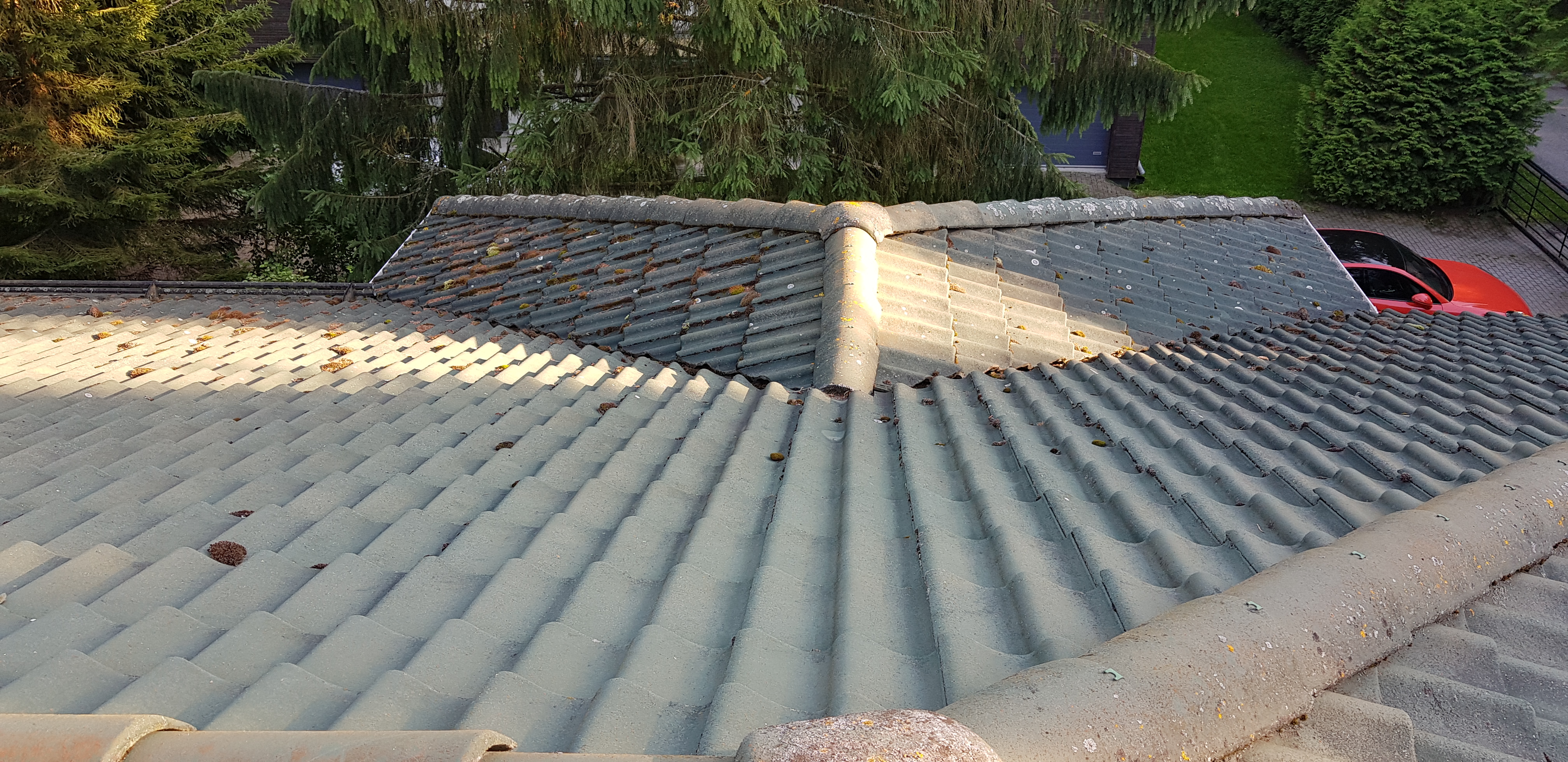 Katuse pindala on 306 m2, kivid on rohelised Nelskamp betoonkatusekivid.
