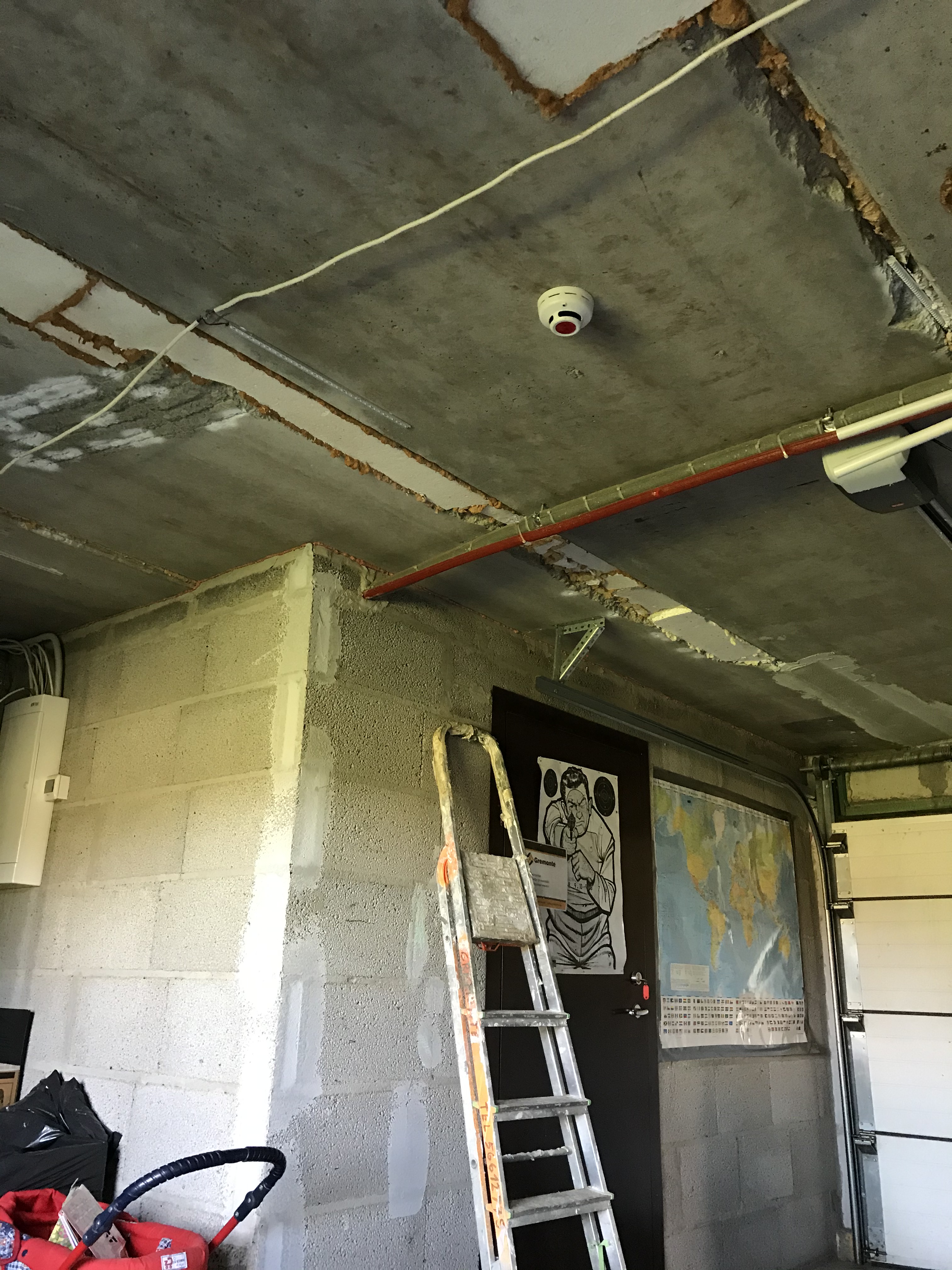 Suured augud kipsiga kinni+armeering, pahtliga siledamaks ning värvimine.